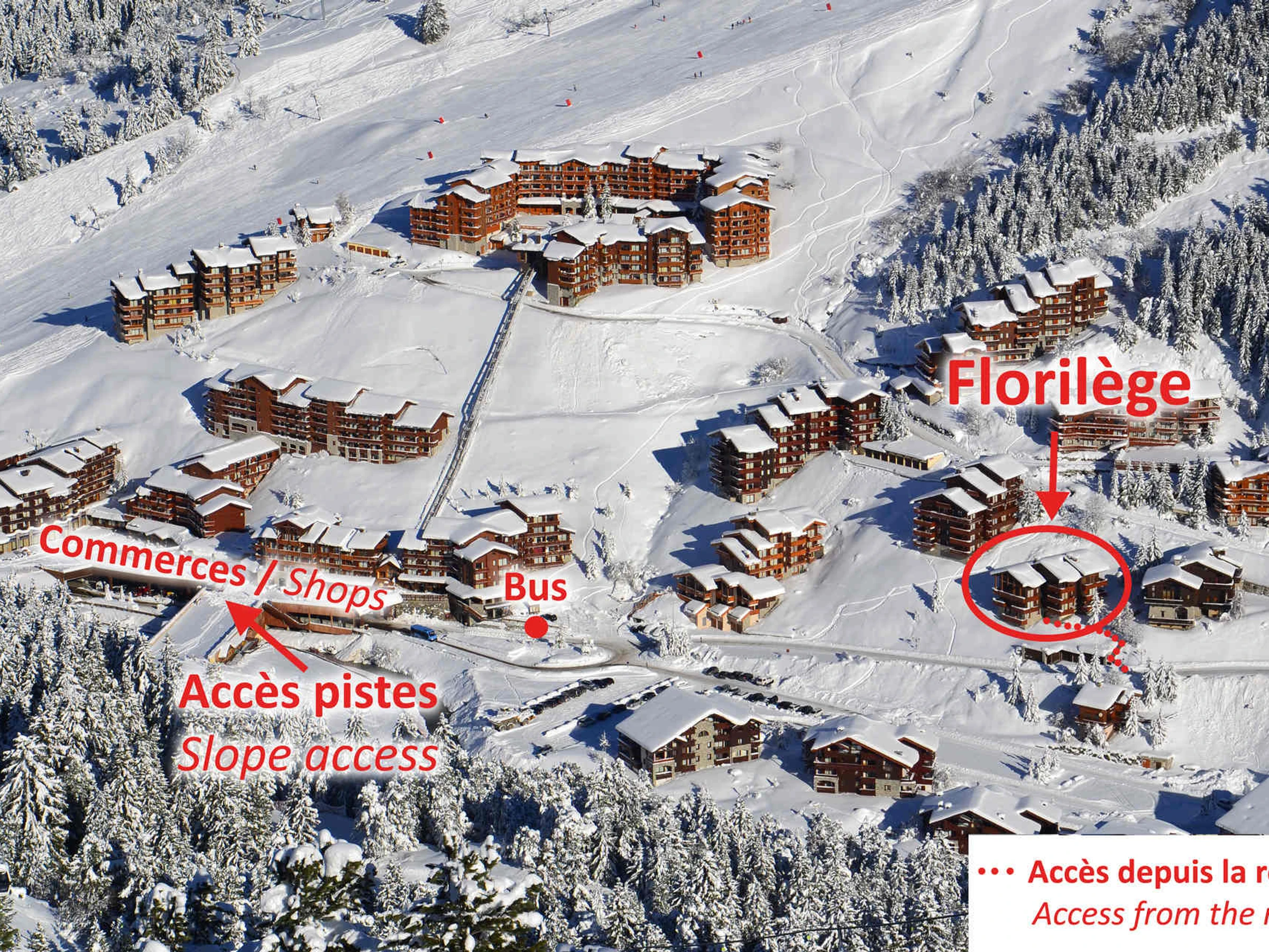 Die Residence Florilège liegt 300 m von den Pisten und 150 m vom Einkaufszentrum Chatelet entfernt. Sie erreichen die Residence über eine Außentreppe aus Metall. Die Gegend ist ruhig.