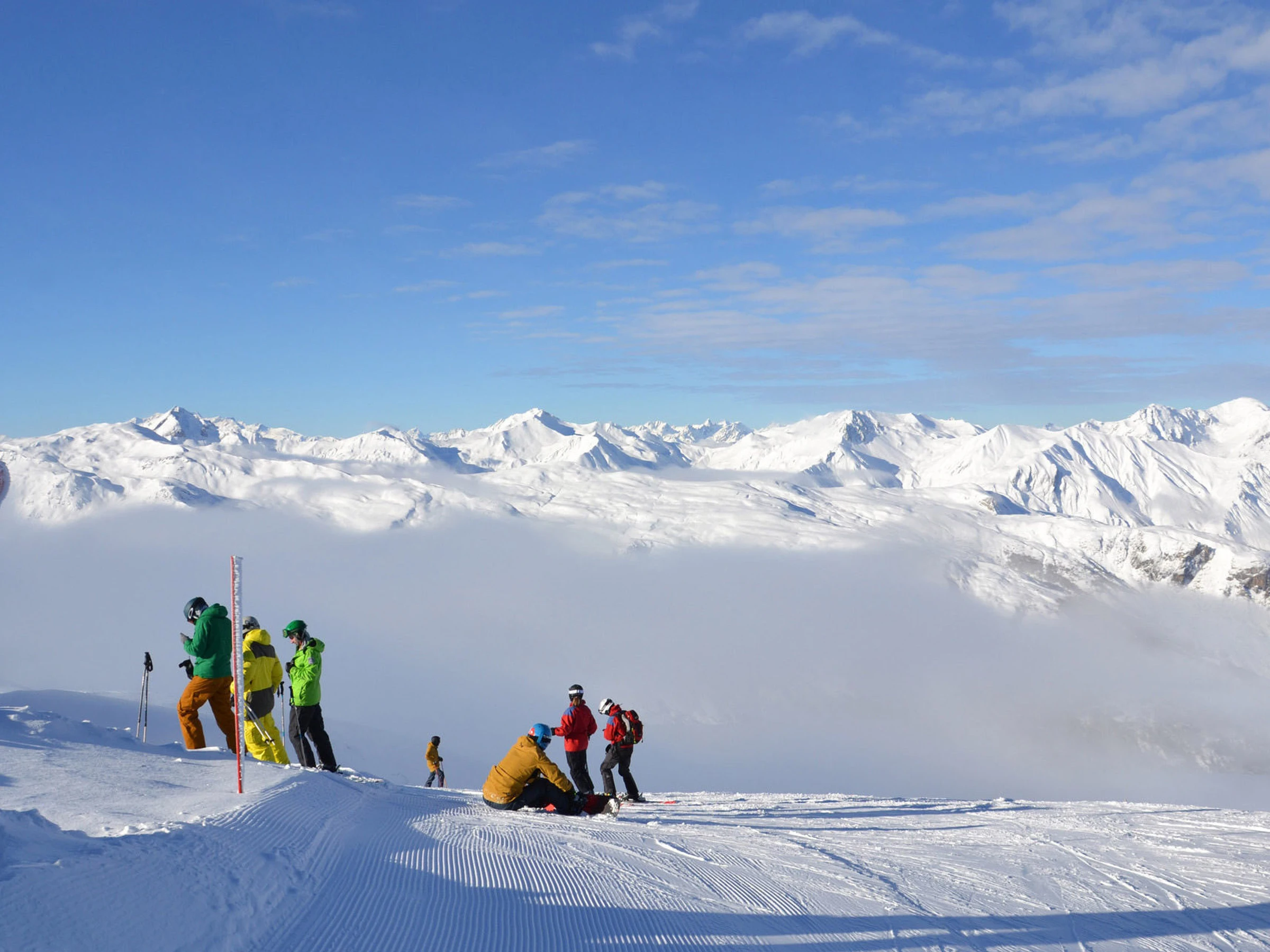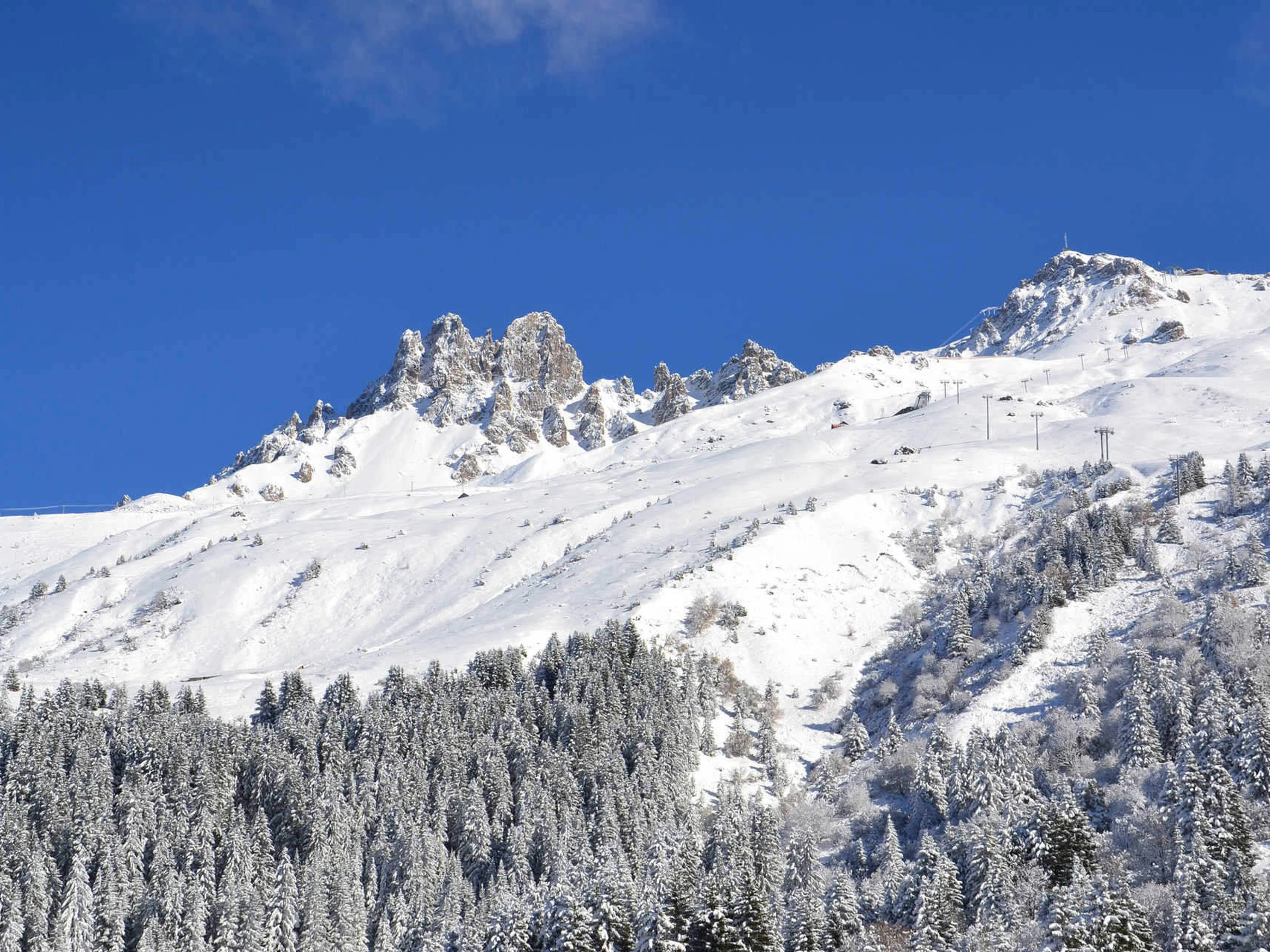 Um auf die Pisten zu gelangen, ziehen Sie Ihre Skier direkt aus den Skischränken an und fahren Sie den Schneeweg entlang. Sie erreichen die grüne Piste „Perdrix“, die Sie hinunter zu den Liften führt.