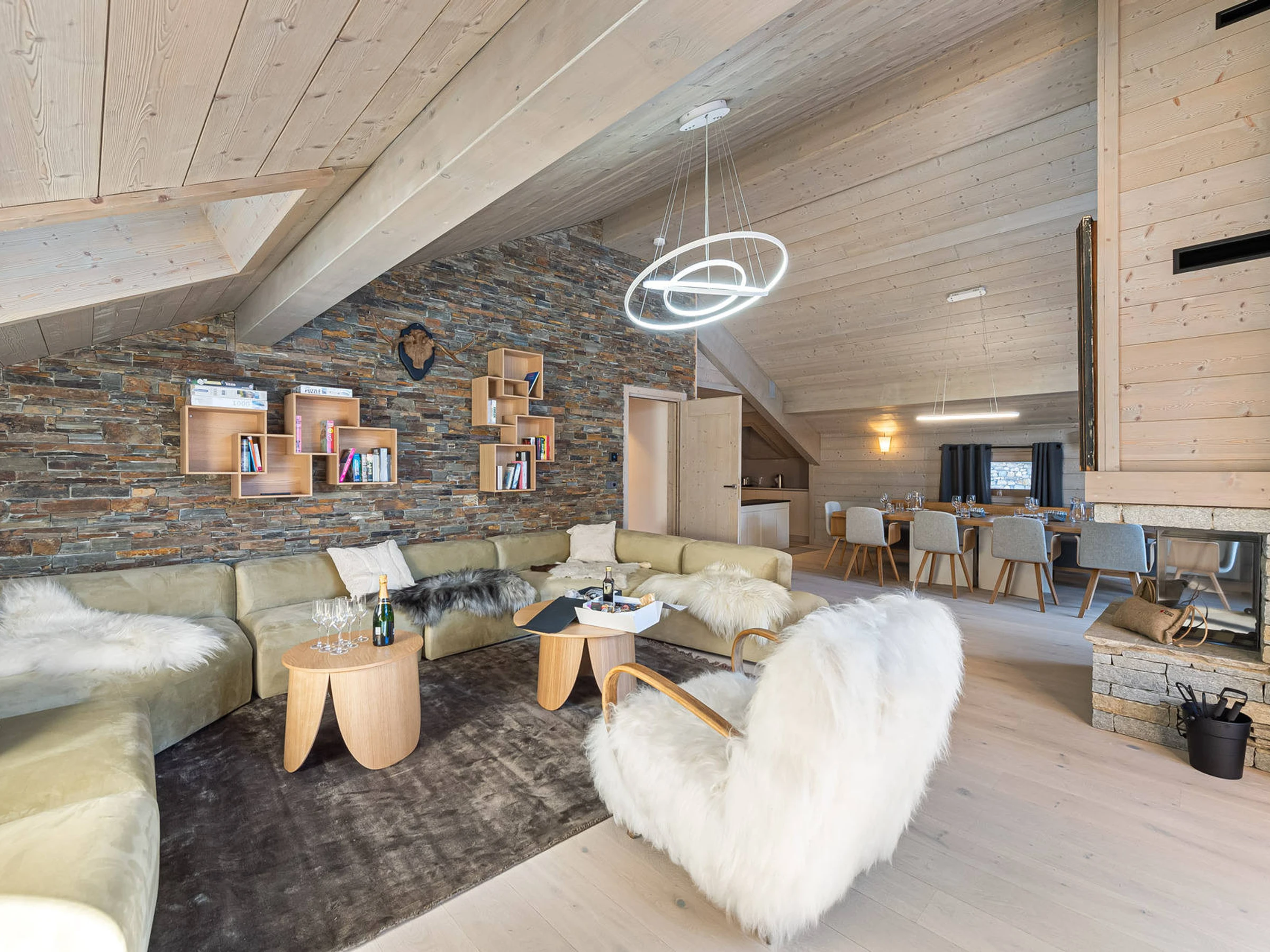 - Wohn- und Essbereich mit Kamin, TV und Westbalkon