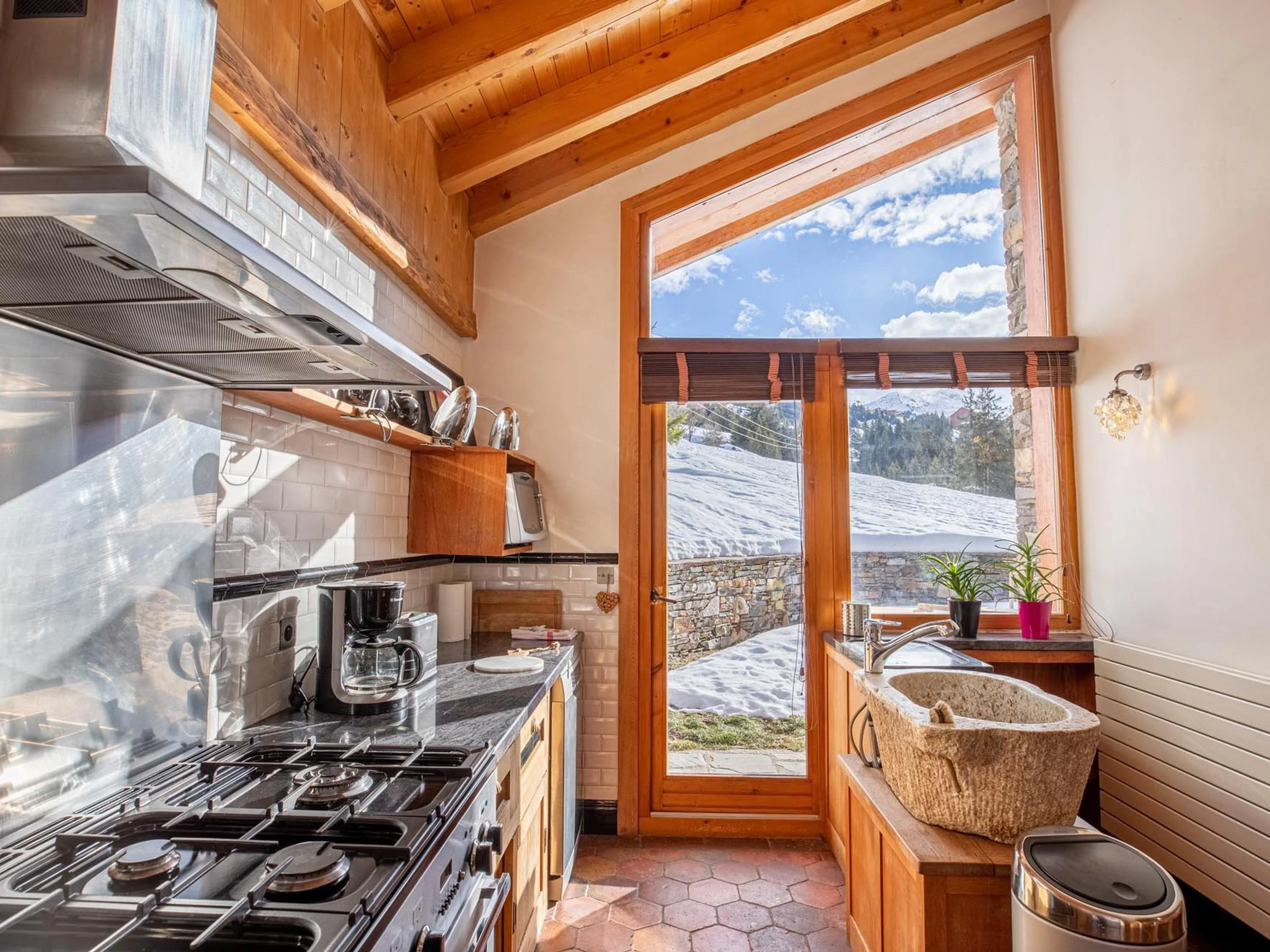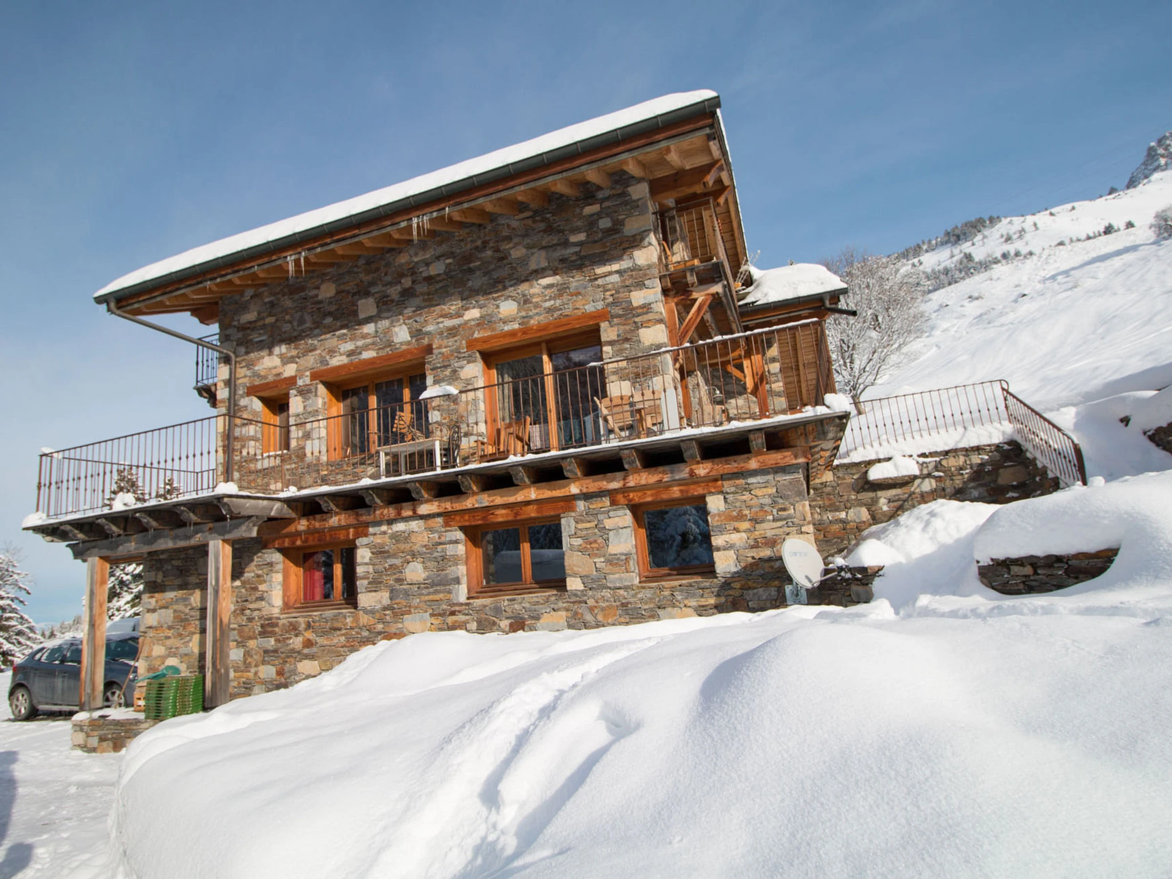 Prächtiges Steinchalet, Abfahrt und Rückfahrt mit den Skiern, außergewöhnliche Umgebung