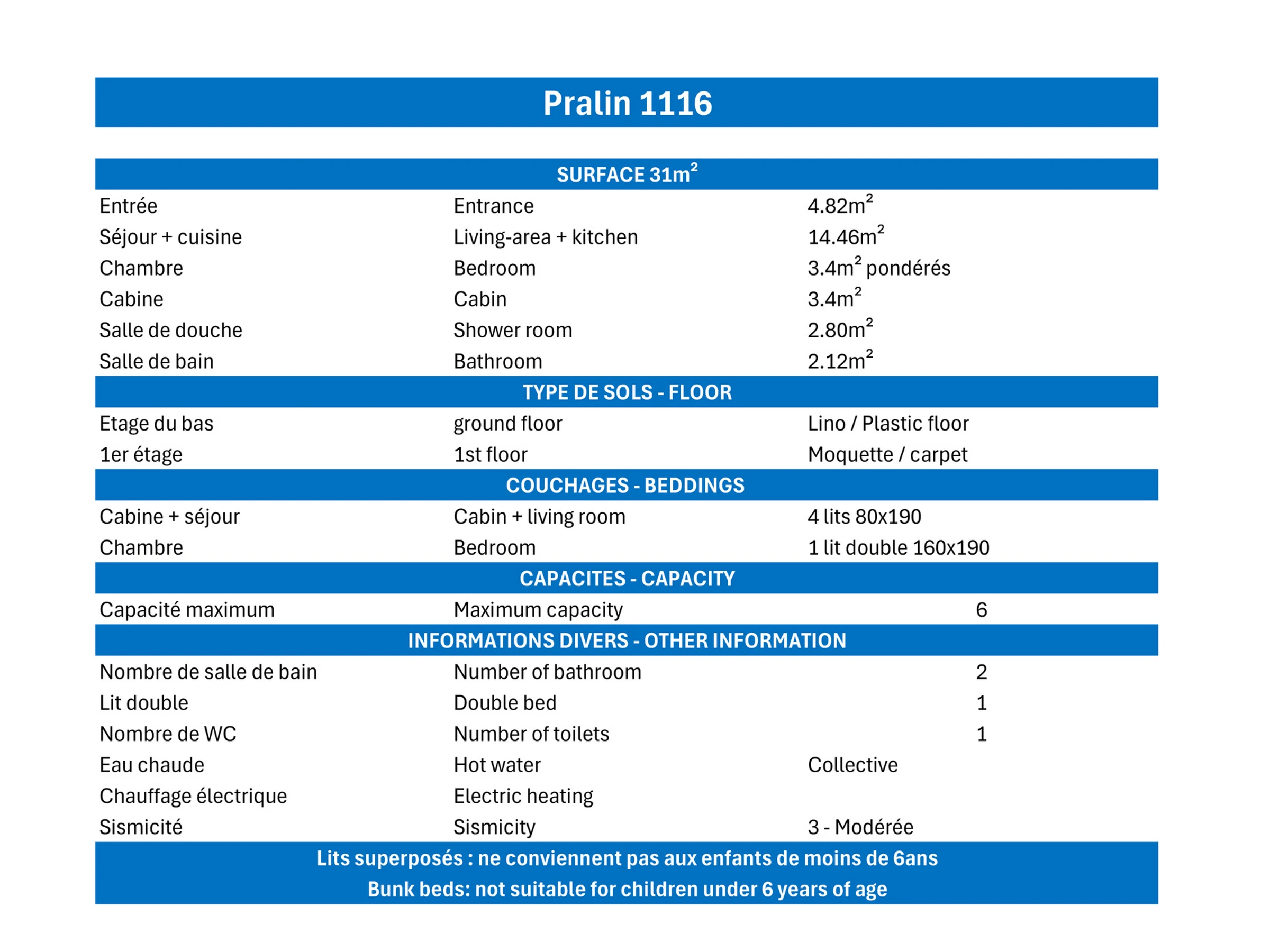 . Kinderstuhl : 20.0 € pro Aufenthalt