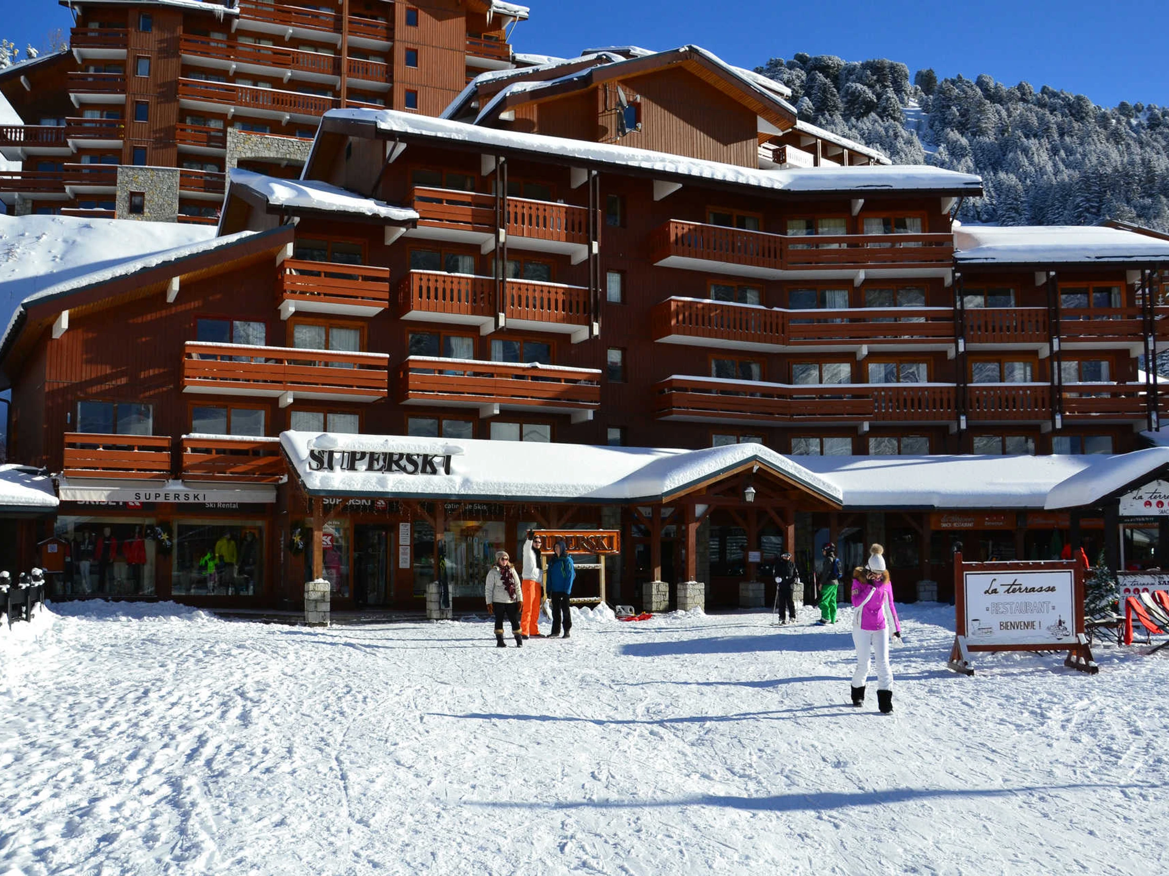 Die Pisten sind 100 m weiter. Die nächste Bushaltestelle ist „Châtelet“, direkt neben dem Supermarkt, 100 m von der Residence entfernt.