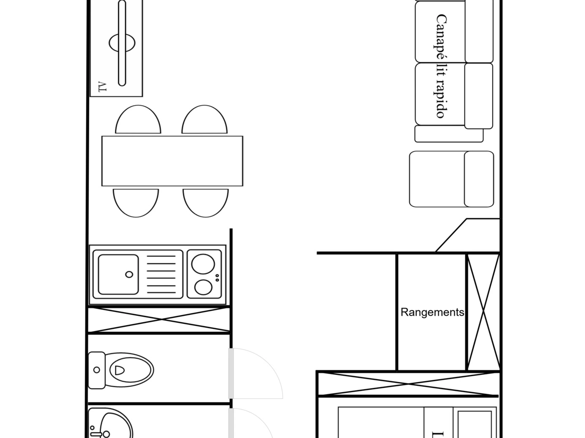 2 Zimmer, 4 Personen, 26 m², Balkon Süd/Osten, 3. Etage