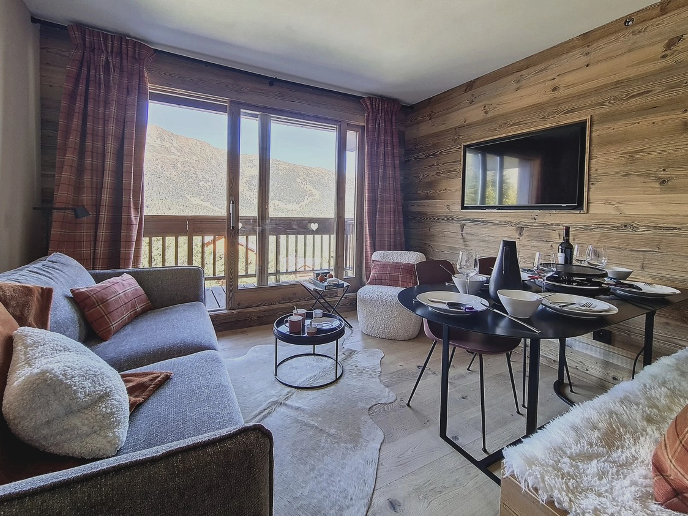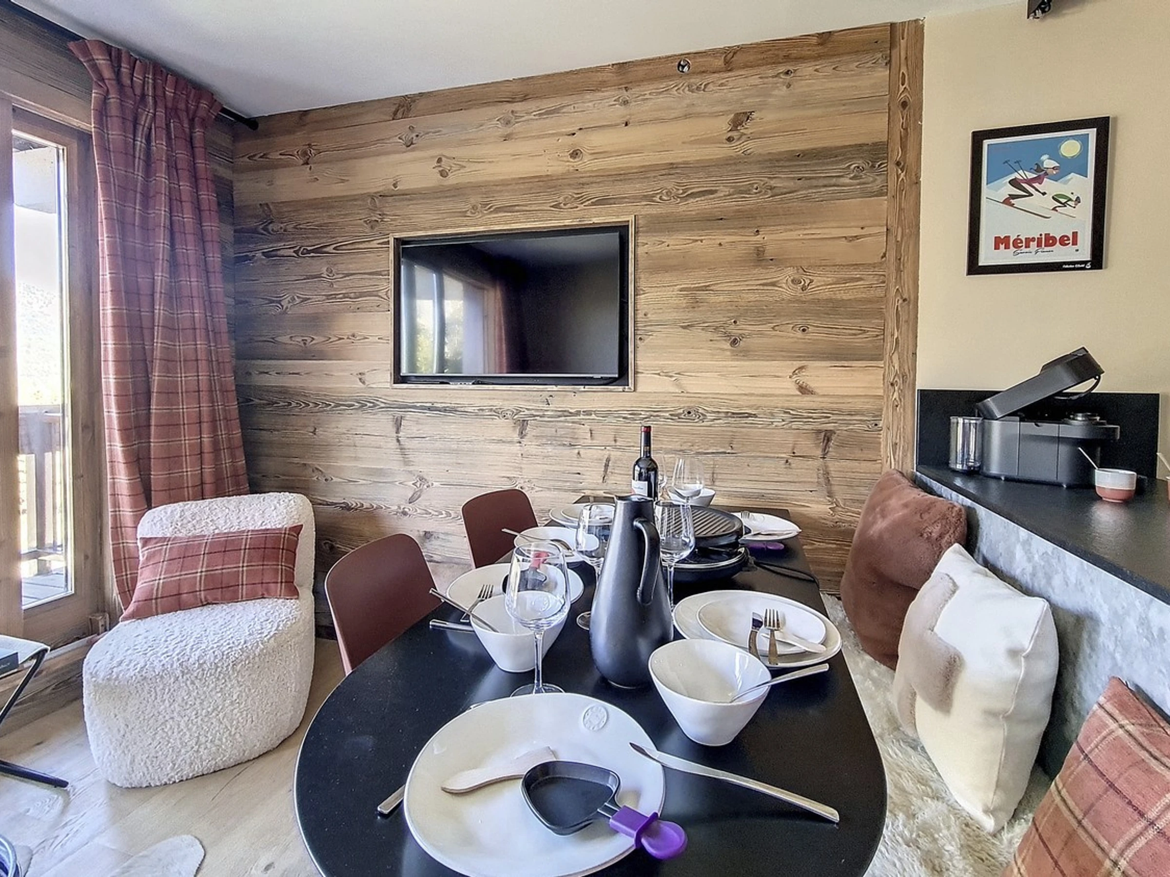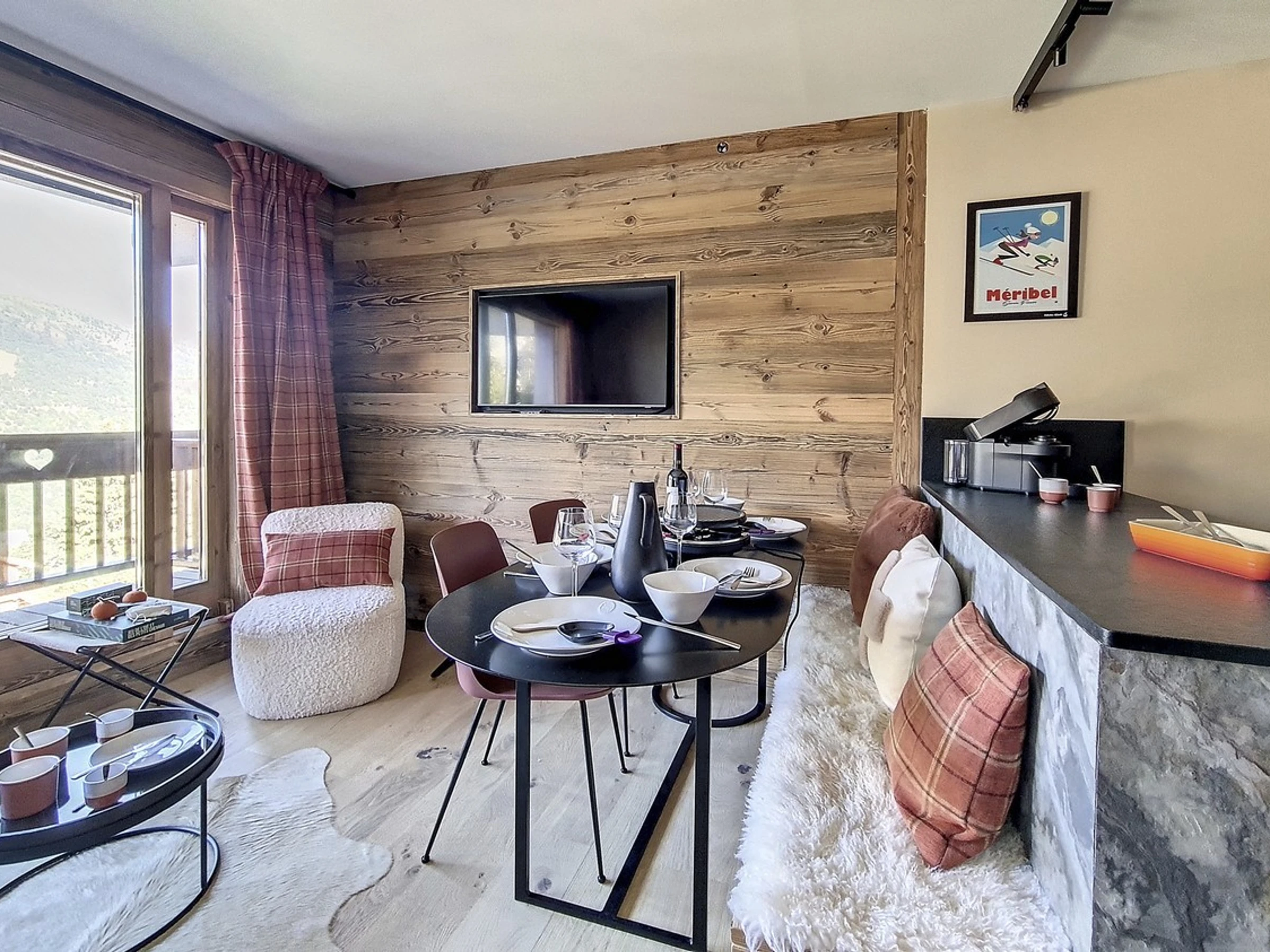 Atemberaubender Blick auf die Skipisten von Méribel. Es verfügt über einen nach Westen ausgerichteten Balkon.