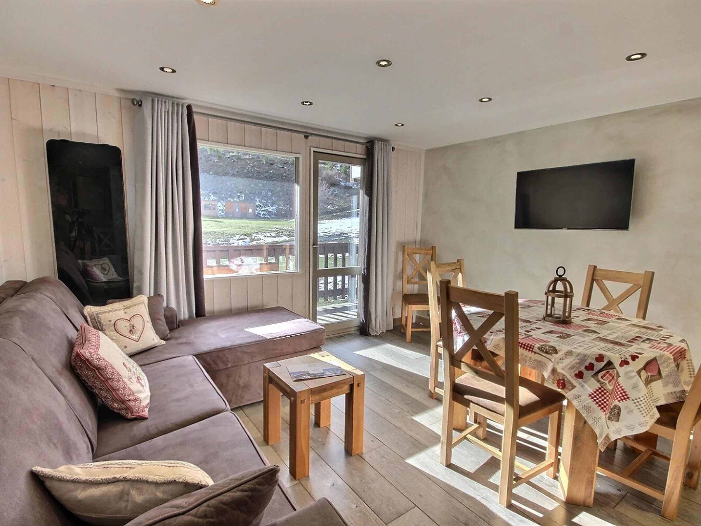 Buchen Sie diese schöne 3-Zimmer-Wohnung Ski in - Ski out in Méribel Mottaret mit einer nach Süden und Westen ausgerichteten Terrasse und einer wunderschönen Aussicht auf die Berge und die Pisten.