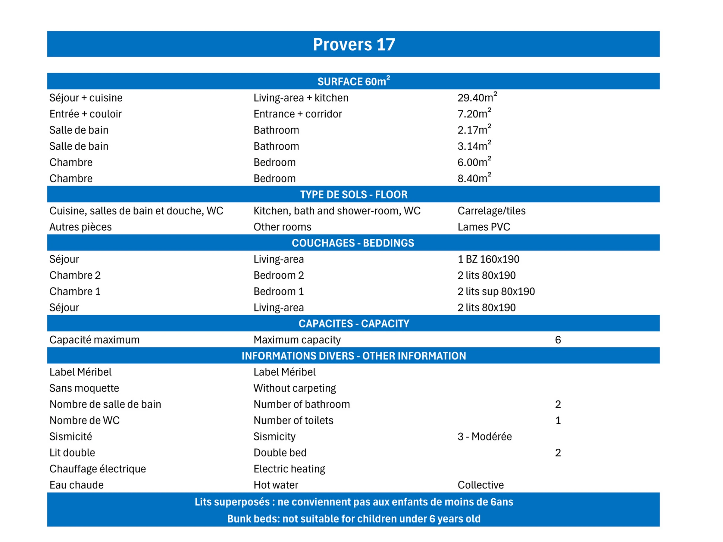 . Kinderstuhl : 20.0 € pro Aufenthalt