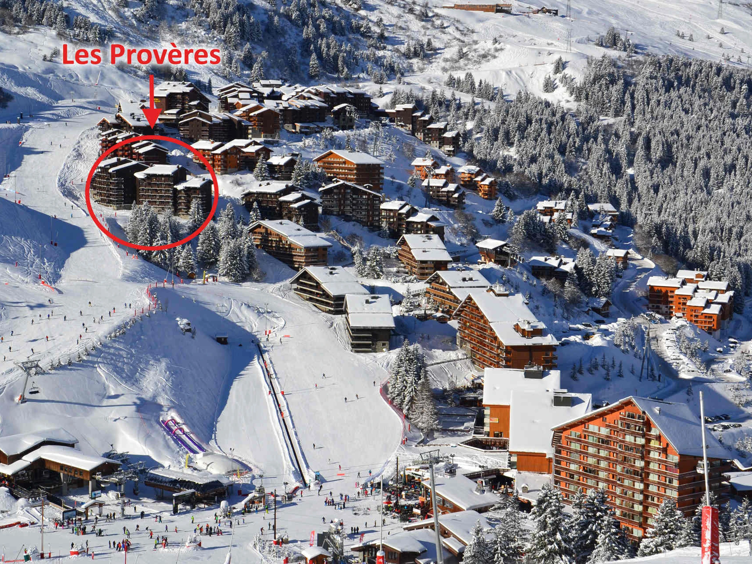 Die Residenz „Proveres“ liegt an den Pisten, auf halbem Weg zu den beiden Einkaufsvierteln (Hameau und Centre), die Sie über eine Treppe in 5 Minuten erreichen können. Um auf die Pisten zu gelangen, ziehen Sie einfach Ihre Skier an der Tür des Skischranks an.