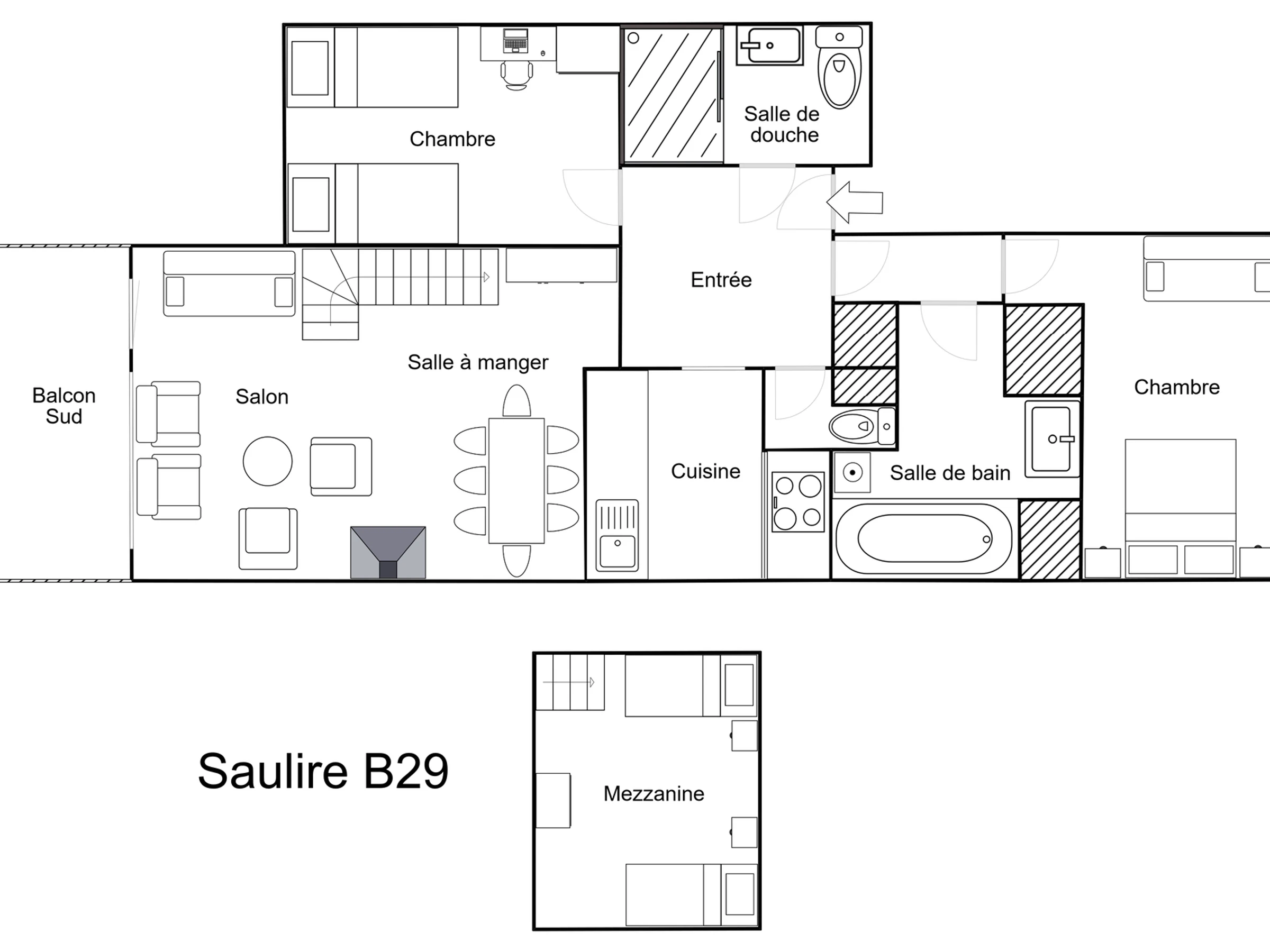 Die Residenz „Saulire“ liegt an den Pisten, 250 m vom Gewerbegebiet Hameau entfernt, in Laitelet.