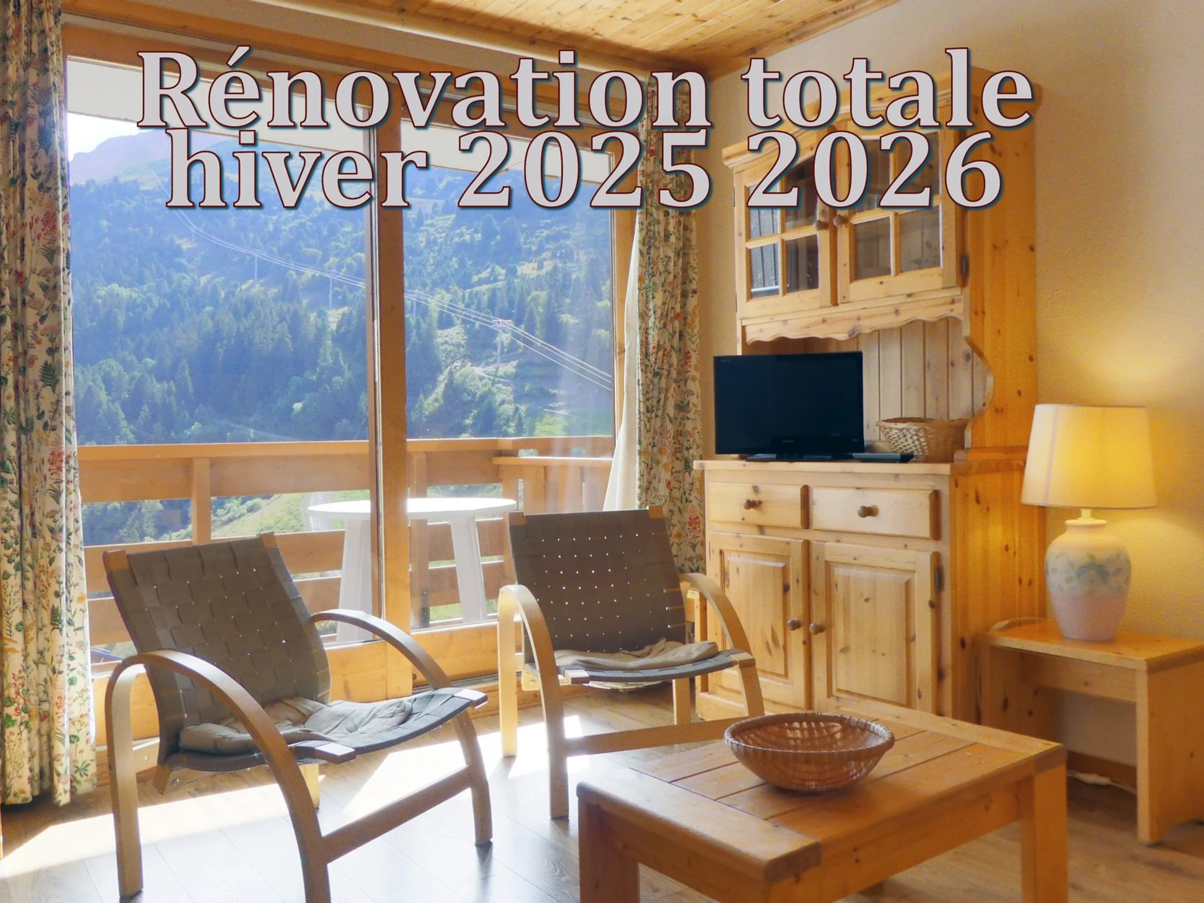 Hervorragender Blick auf den Mont Vallon, Zugang zu einem möblierten Balkon mit Tisch und Stühlen