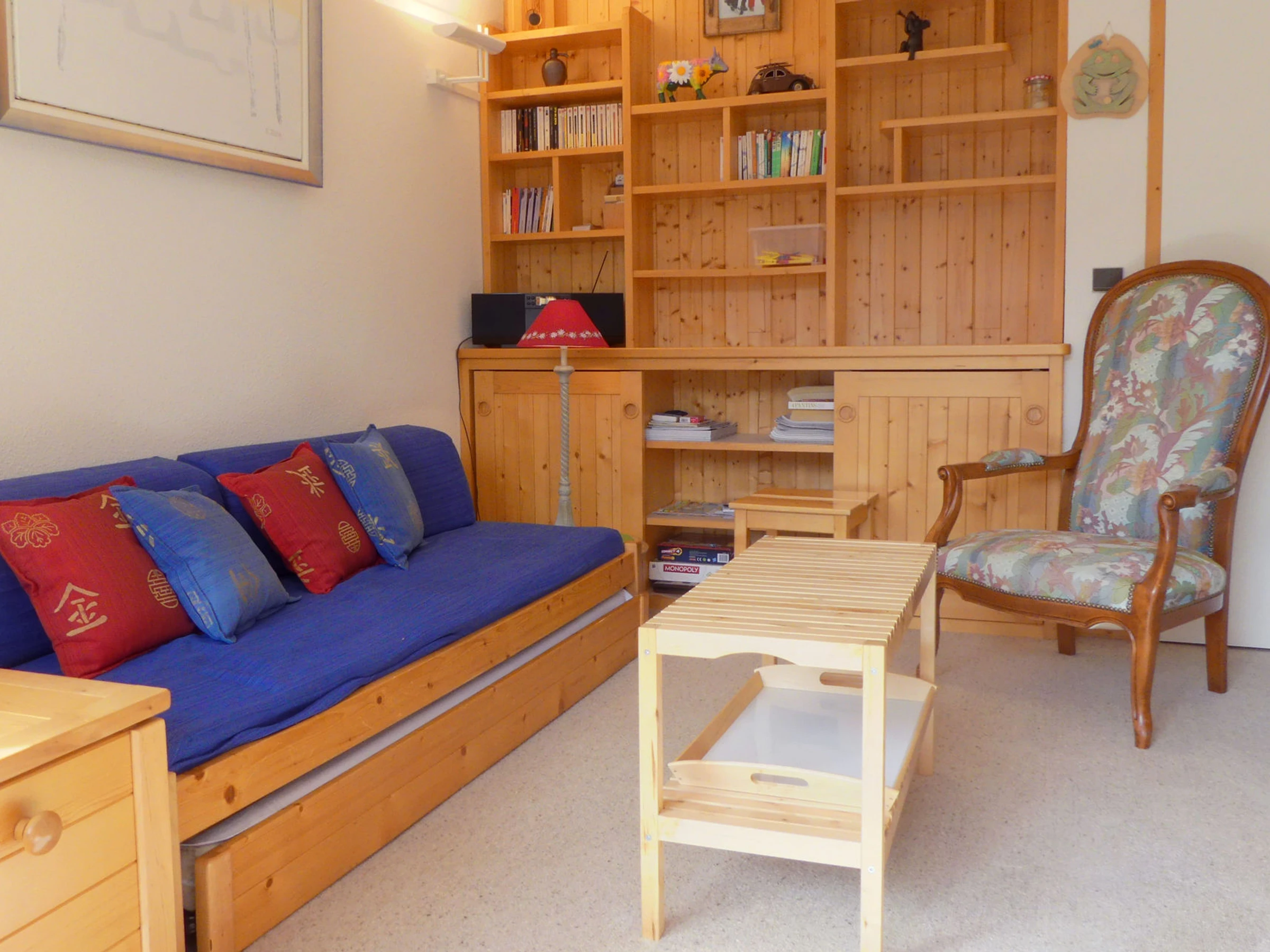 Wohnzimmer: 1 Schlafcouch (80 x 190 cm) und 1 Ausziehbett (80 x 190 cm)