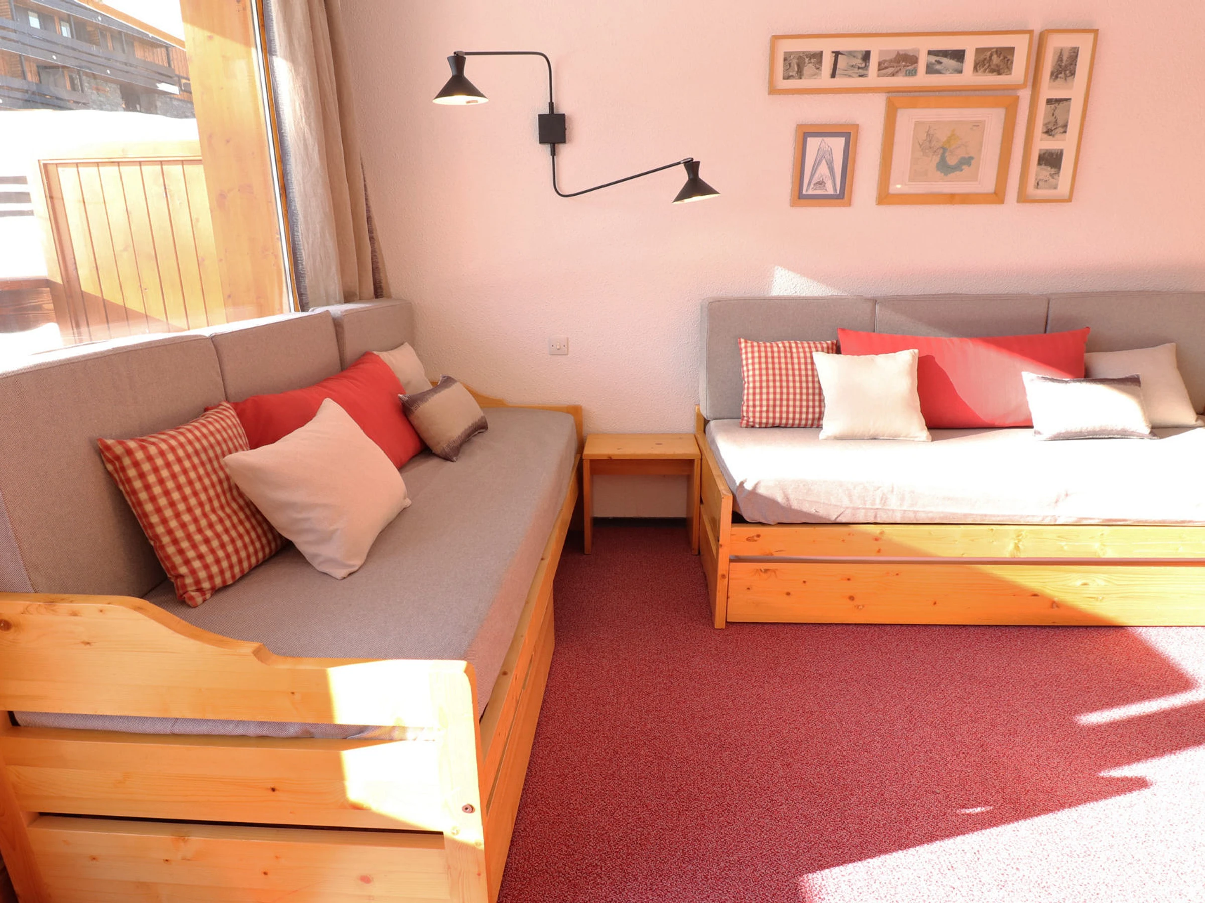 Wohnzimmer: 2 Schlafbänke, 1 Ausziehbett (80 x 190 cm)