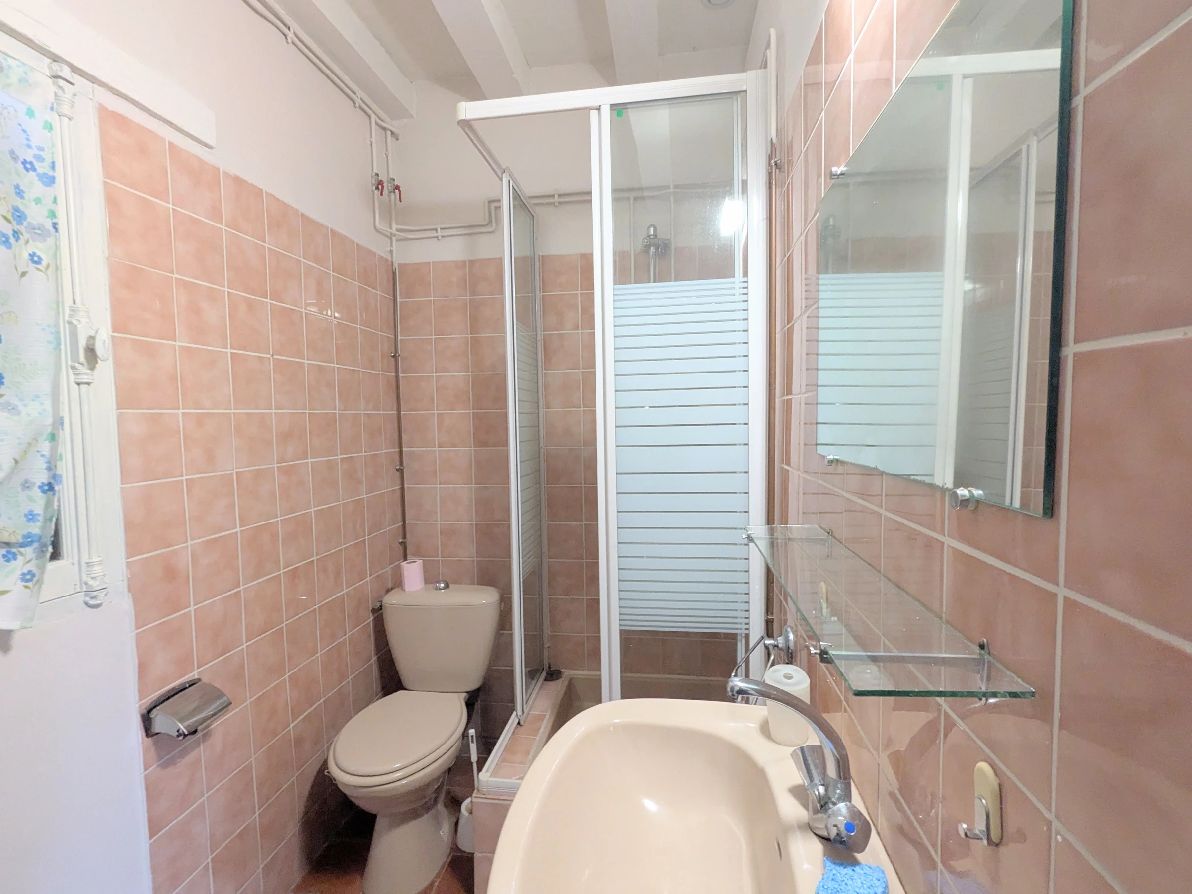 Ein Waschraum mit Zugang zum Innenhof.