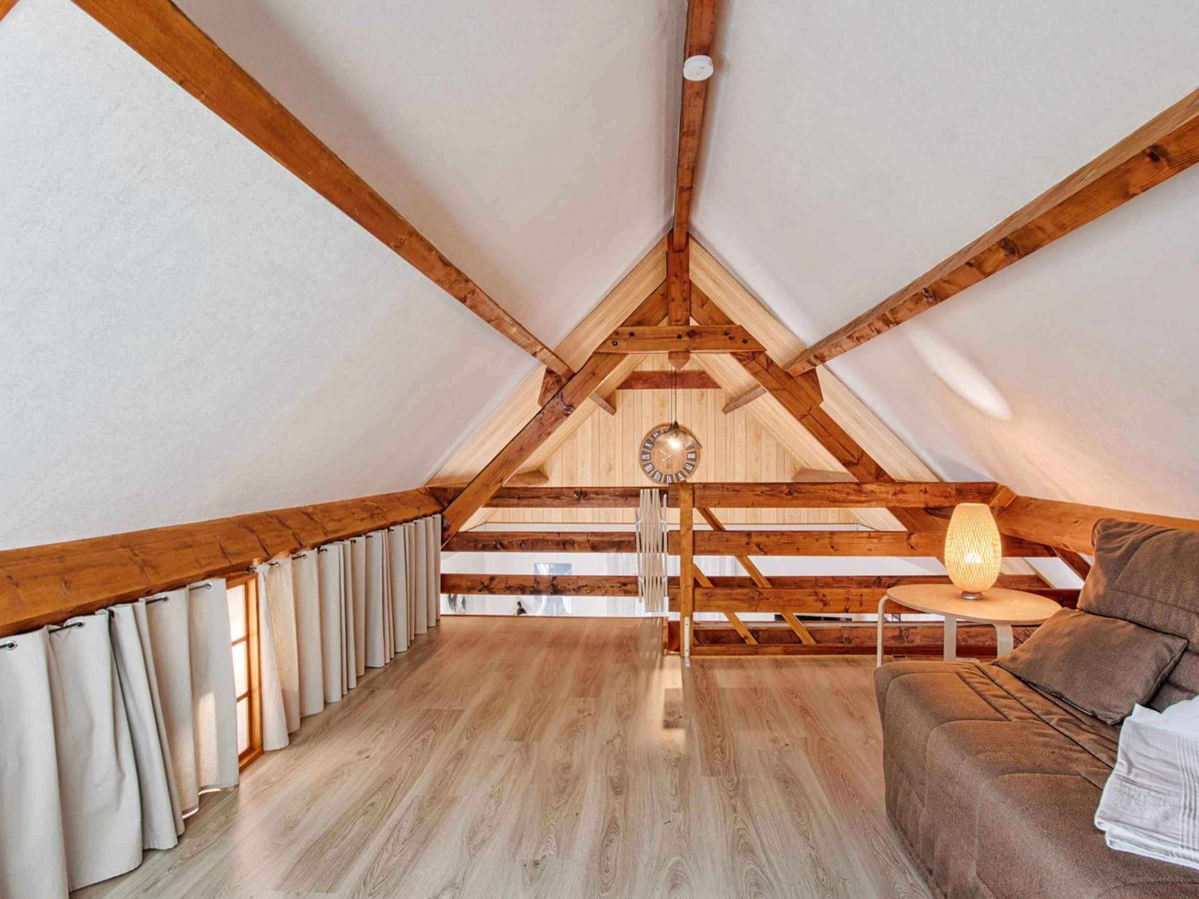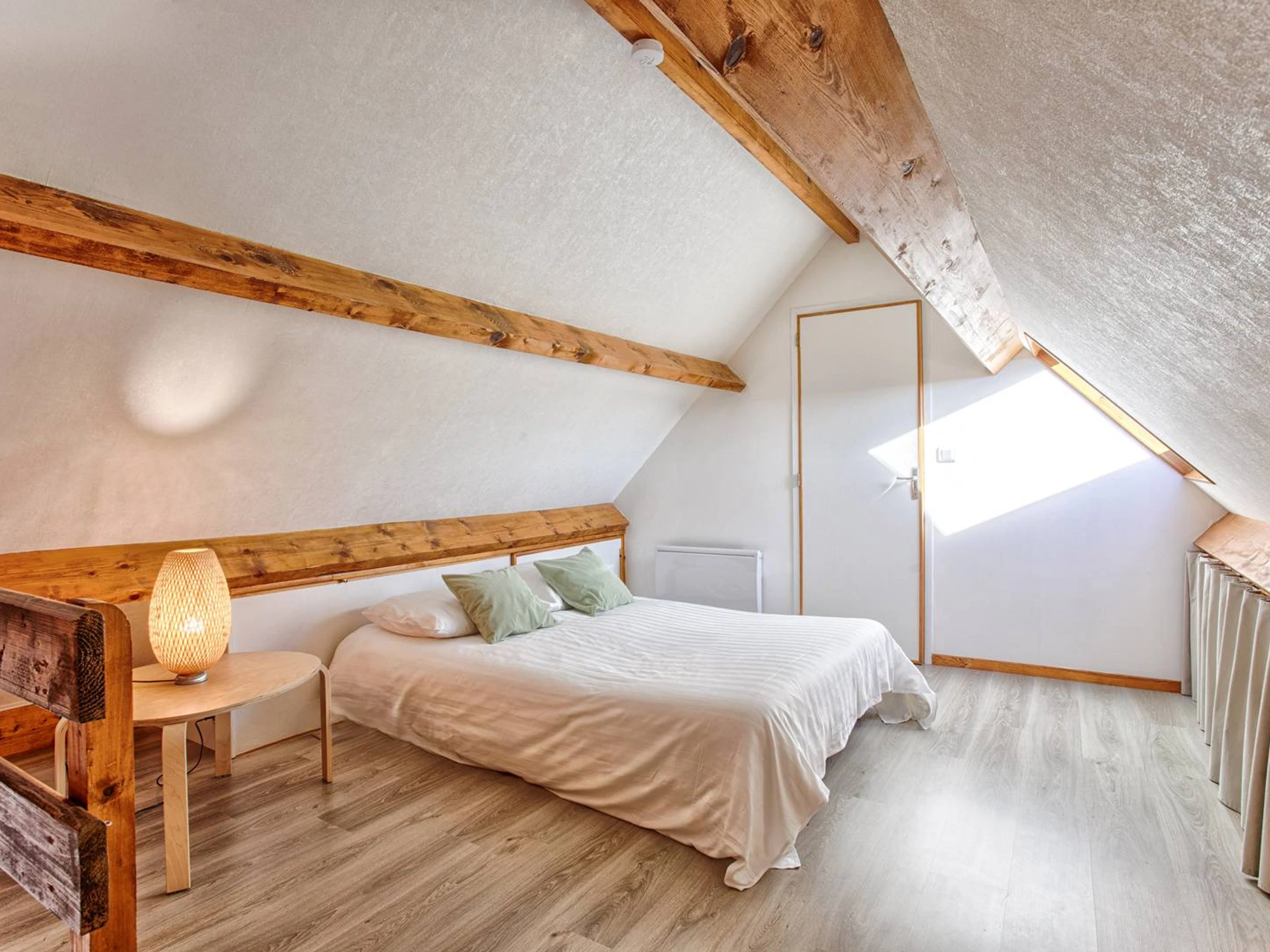 Im Obergeschoss ist das Zwischengeschoss mit seinem BZ ein idealer Kokon für eine Lesepause oder einen Moment der Entspannung. Darüber hinaus verfügt ein Schlafzimmer im Dachgeschoss über zwei Einzelbetten, perfekt für erholsame Nächte in der sanften Meeresluft.