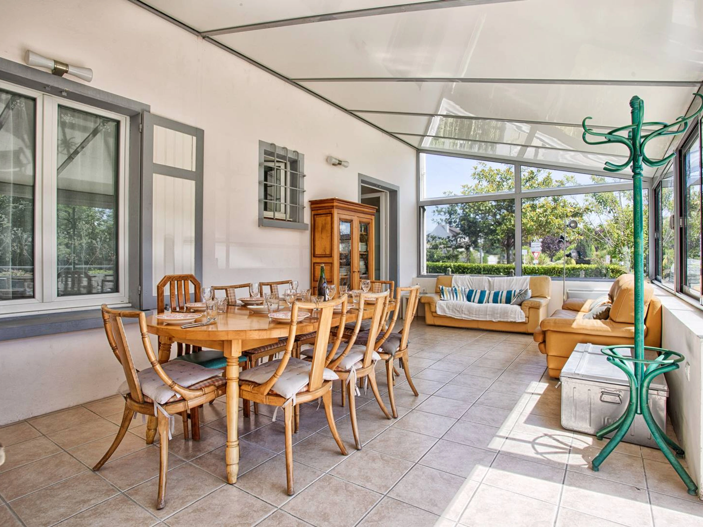 Von der Veranda aus gelangt man auf eine möblierte Terrasse mit Gartenmöbeln, ideal für einen Kaffee in der Sonne oder einen Aperitif am Abend. Ein paar Schritte führen zum umzäunten Garten, einem sicheren Ort, an dem Kinder ungestört spielen können, während die Erwachsenen entspannen.