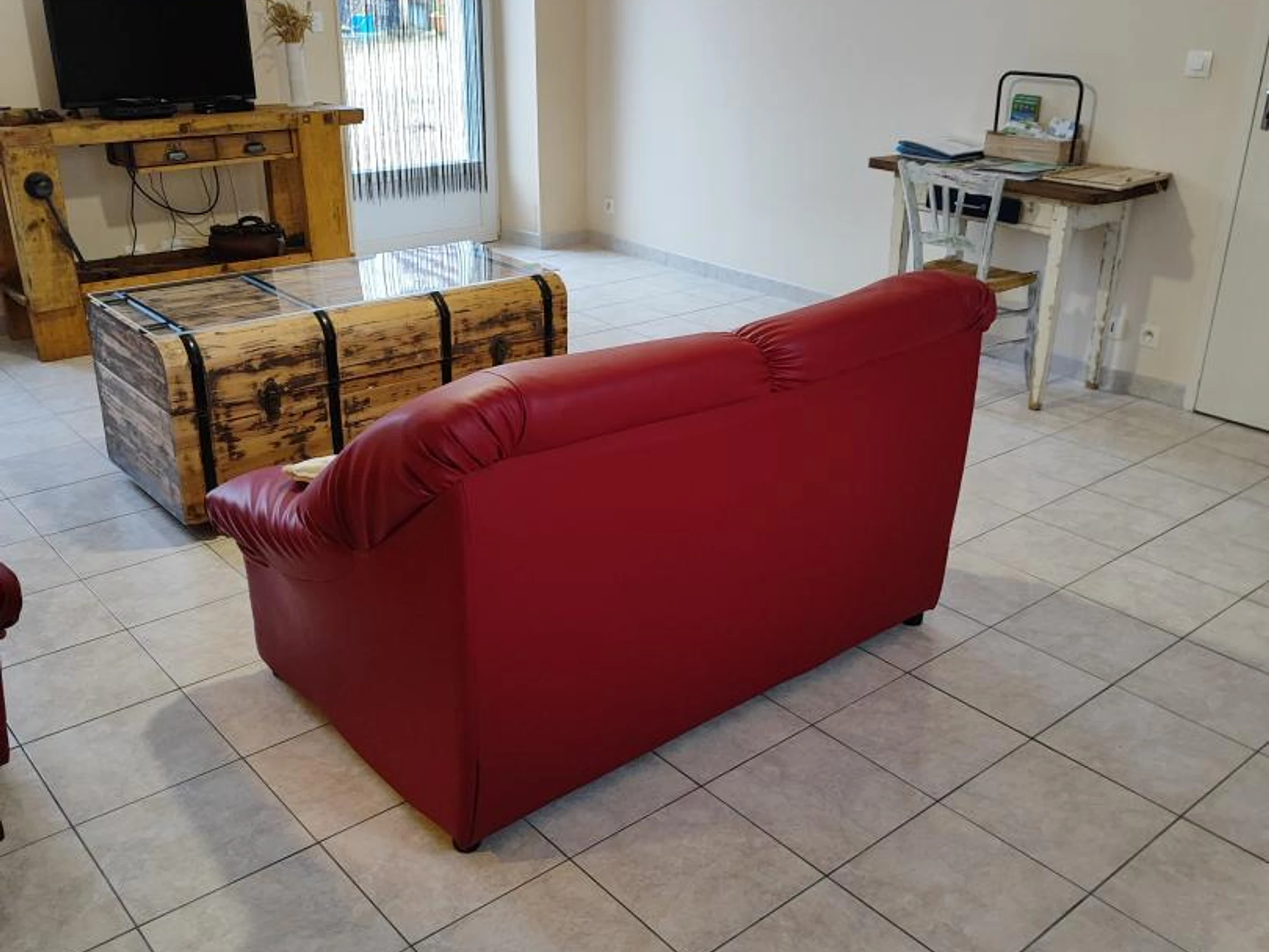 Außenbereich: private Terrasse (ca. 35 m²). Gemeinsam mit der anderen Gîte genutzte Außenbereiche: Innenhof, überdachter Bereich mit Sitzecke, Tischtennisplatte, Darts, Geschicklichkeitsspiele, Schläger usw.