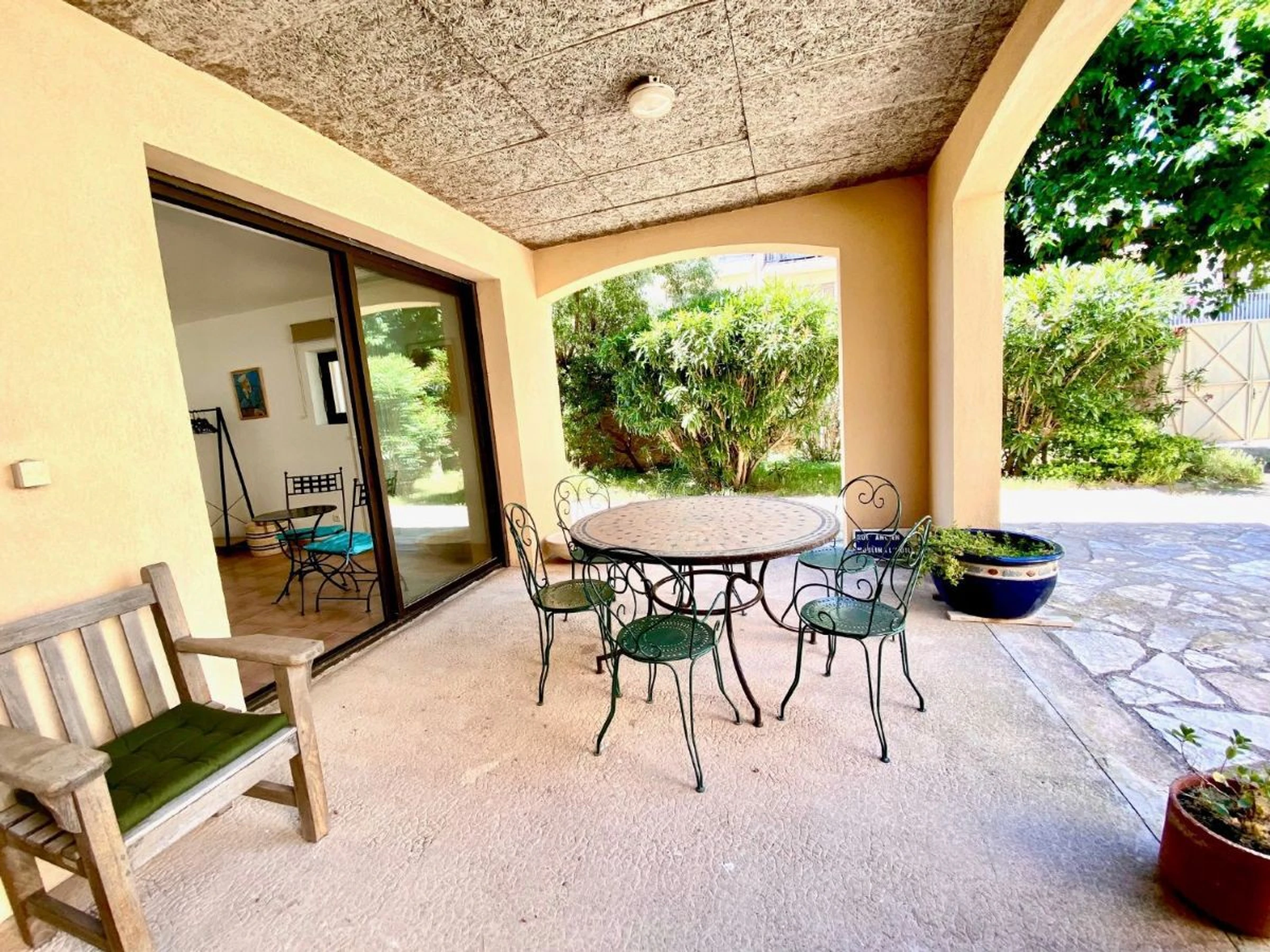 Draußen können Sie Ihre Mahlzeiten auf der überdachten Terrasse einnehmen. Das Haus ist komplett eingezäunt – Rundherum ein Garten – Möglichkeit, 2 Fahrzeuge auf dem Grundstück zu parken.