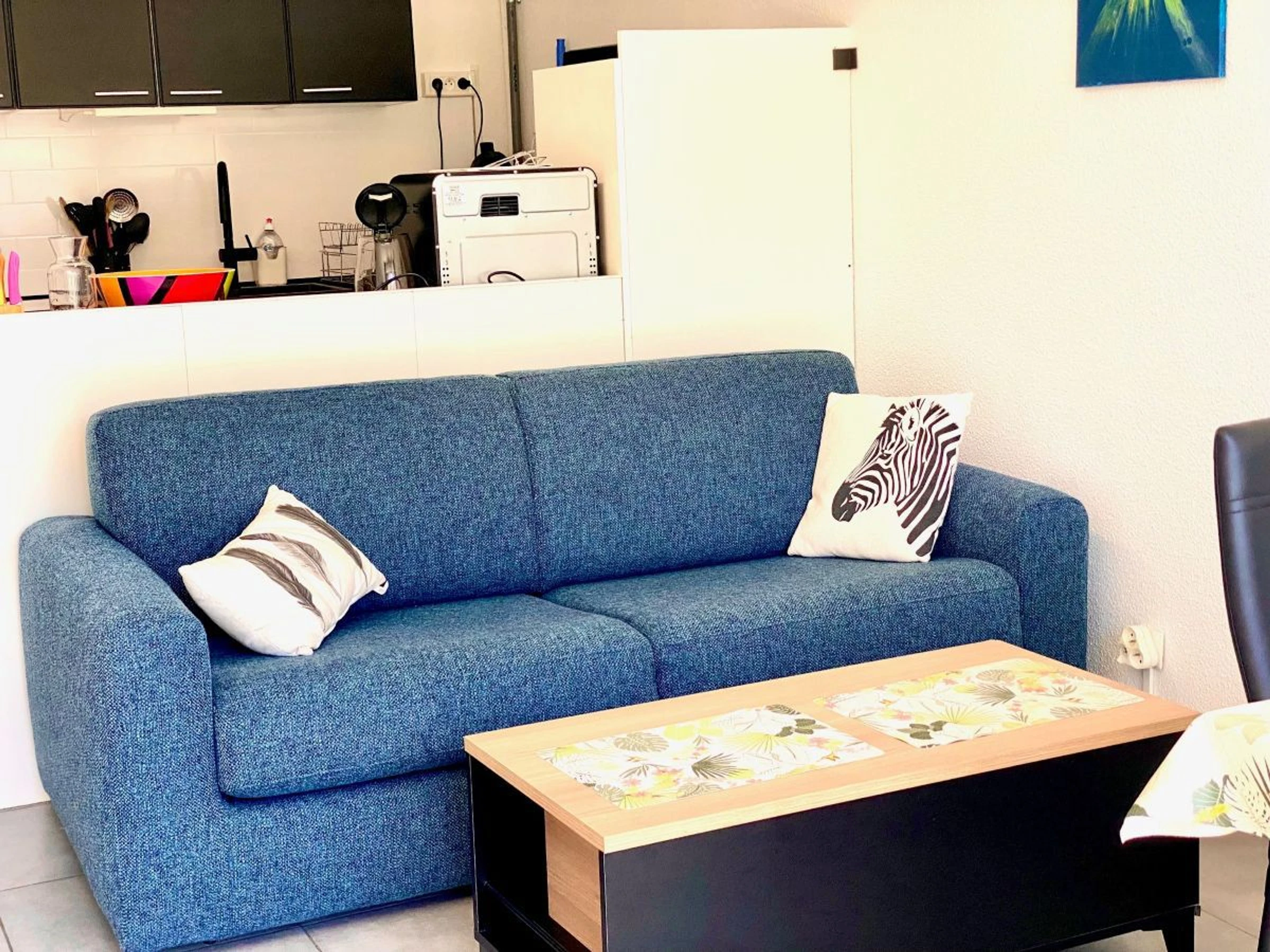 Nach Süden ausgerichtetes Studio-Apartment im Erdgeschoss eines Gebäudes, nur 100 Meter von der Lagune von Thau und dem Strand entfernt. Beinhaltet einen Küchenbereich (ausgestattet mit Kühlschrank, Geschirrspüler und Mikrowelle), einen Essbereich, ein Badezimmer mit Waschmaschine, einen Sitzbereich mit Fernseher und Schlafsofa (für 1 Person) und einen Schlafbereich mit einem Doppelbett. Das Studio öffnet sich zu einem kleinen, gepflasterten Garten mit Grill und Gartenmöbeln (einschließlich Sonnenliegen). Direkter Zugang zu den Stränden von Meze und privater Parkplatz in der Nähe des Apartments.