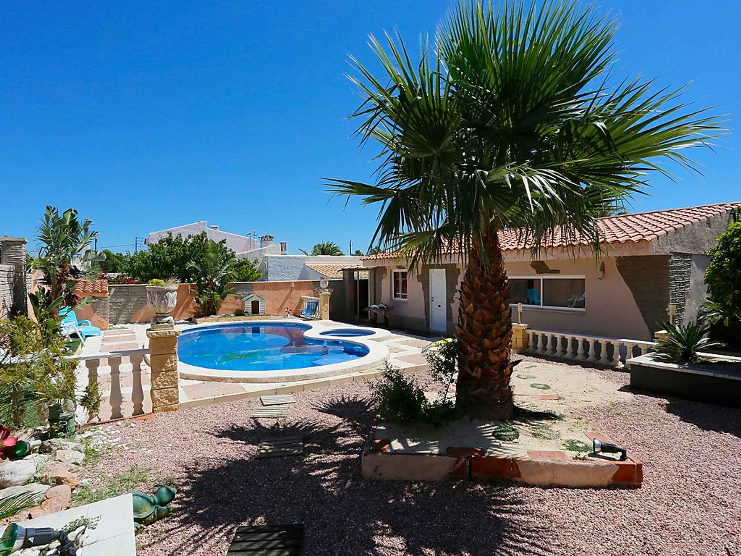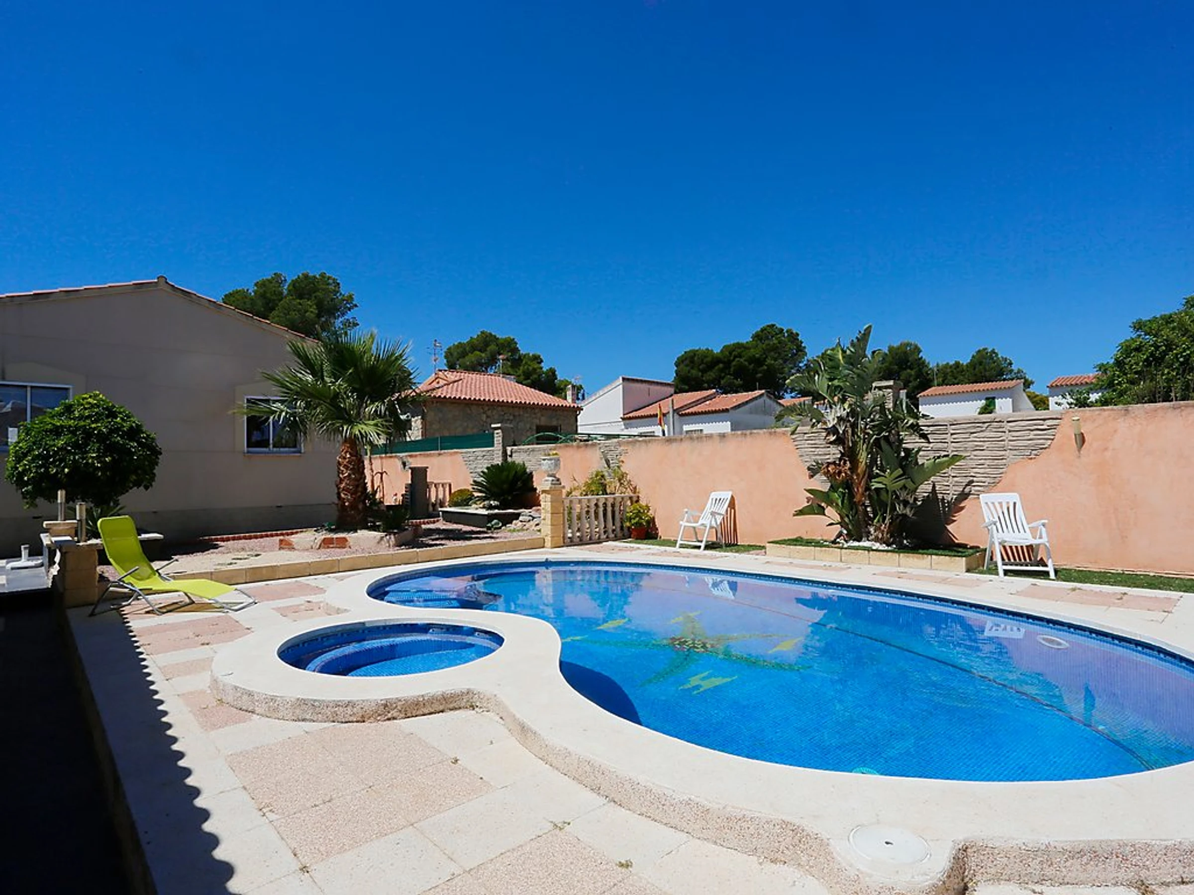 Urb. Casalot 3 km von Miami: Schönes, komfortables Haus "Casa Laetitia". Ausserhalb des Ortes, 7 km vom Zentrum von Hospitalet del Infant, 3.5 km vom Meer, 3.5 km vom Strand. Zur Alleinbenutzung: Grundstück 1'300 m2 (eingezäunt) mit Pflanzen, Schwimmbad eckig (4 x 9 m, 01.01.-31.12.). Gartenmöbel, Grill. Im Hause: Klimaanlage, Waschmaschine. Parkplatz beim Haus. Supermarkt 3 km, Restaurant 3 km, Bar 500 m, Bahnstation "L'Hospitalet de l'Infant" 7 km. Golfplatz 2.5 km. Nahe gelegene Sehenswürdigkeiten: Parque Portaventura 28 km, parque acuático Aquopolis 31 km, parque Natural del Delta del Ebro 53 km, Tarragona 37 km, Reus 30 km, Barcelona 132 km. Bitte beachten: Fahrzeug empfohlen.