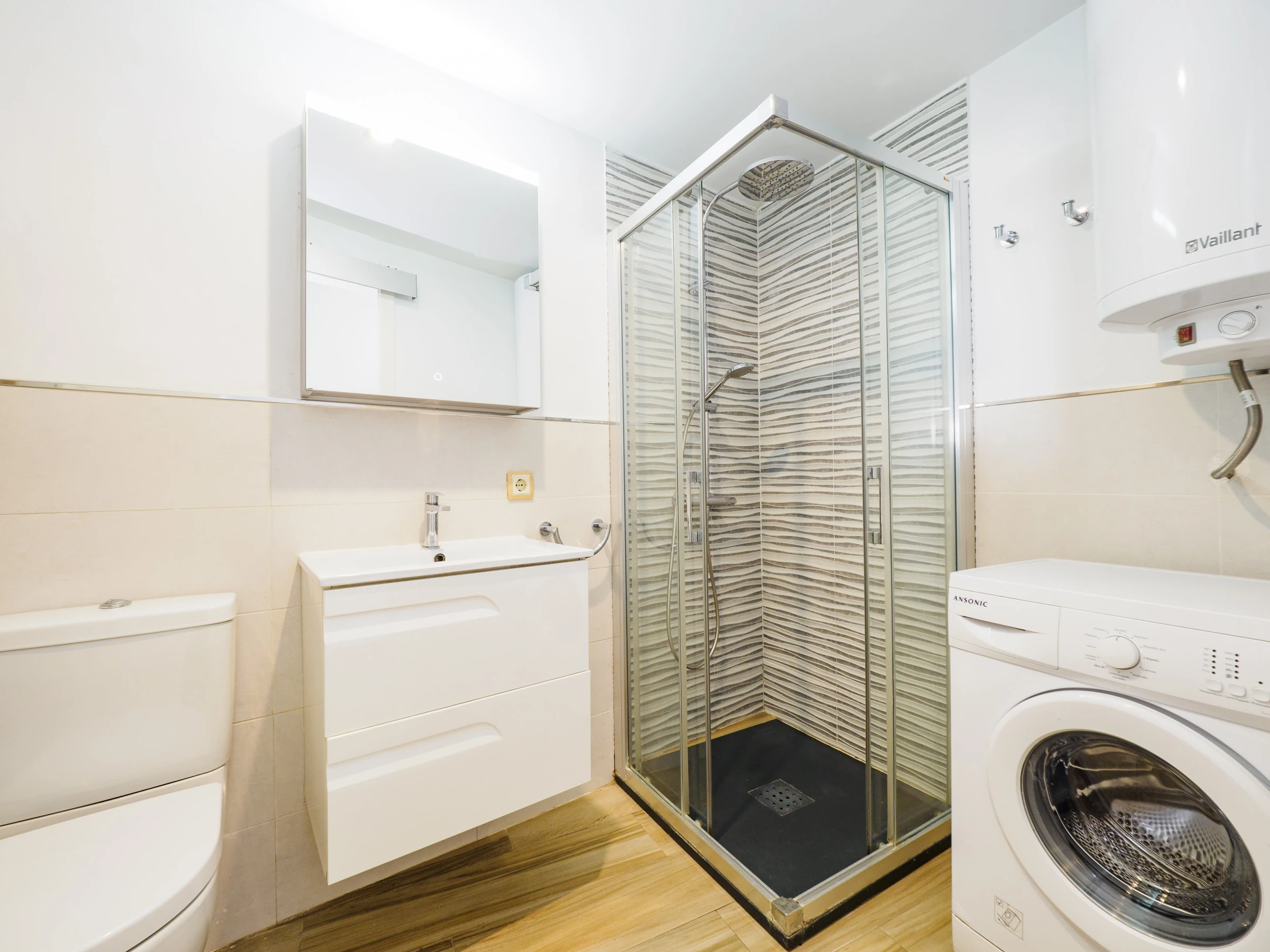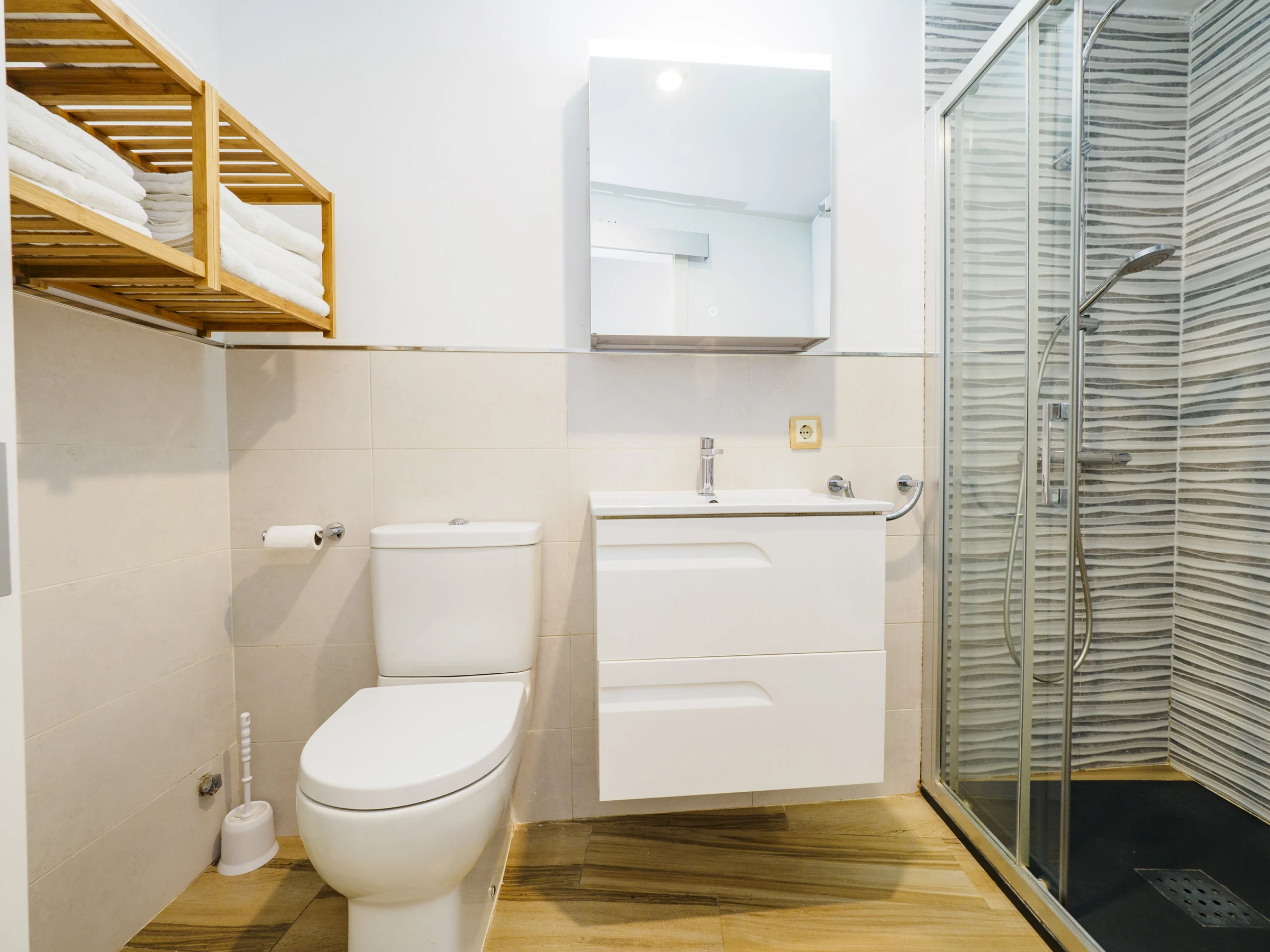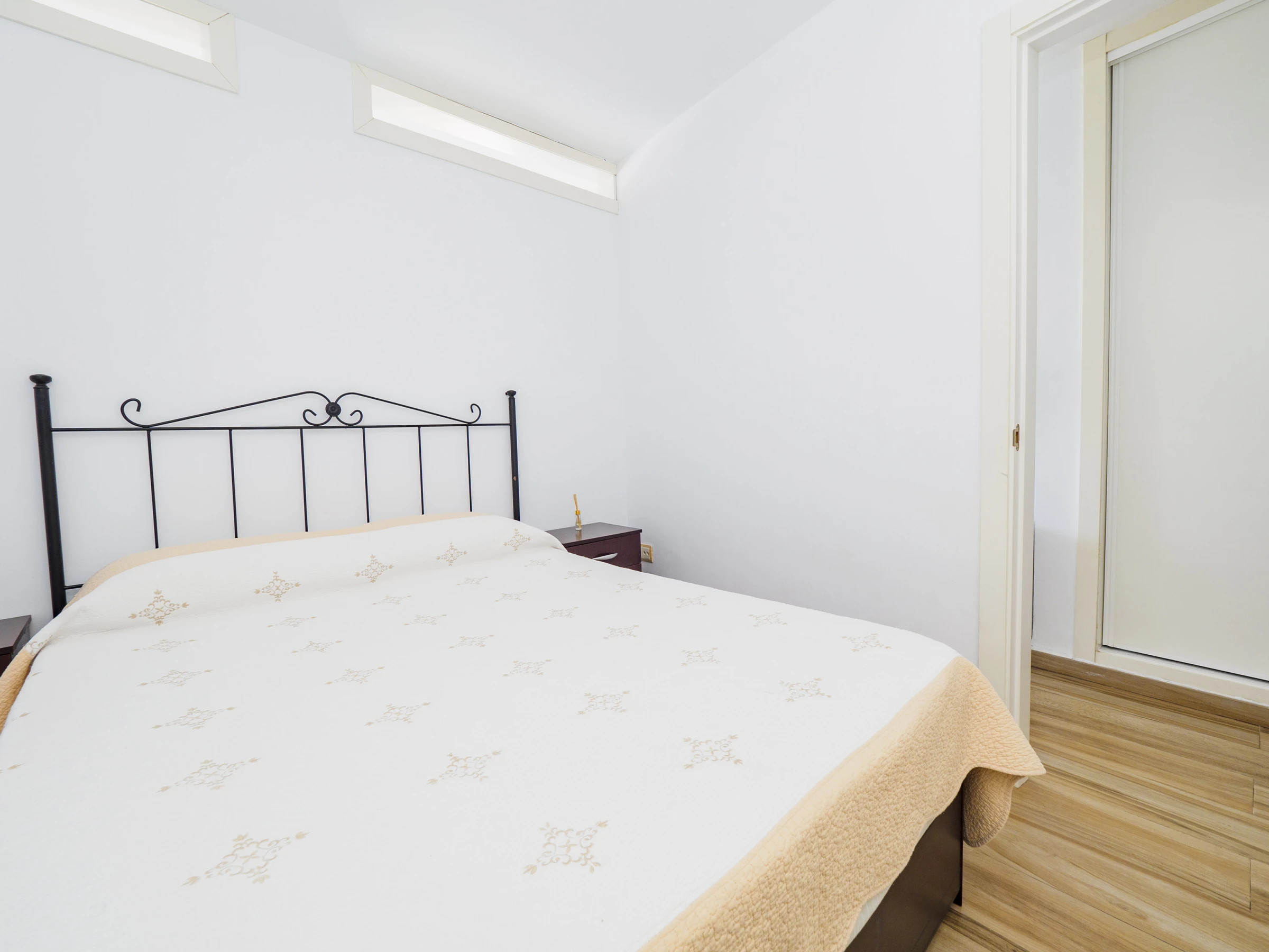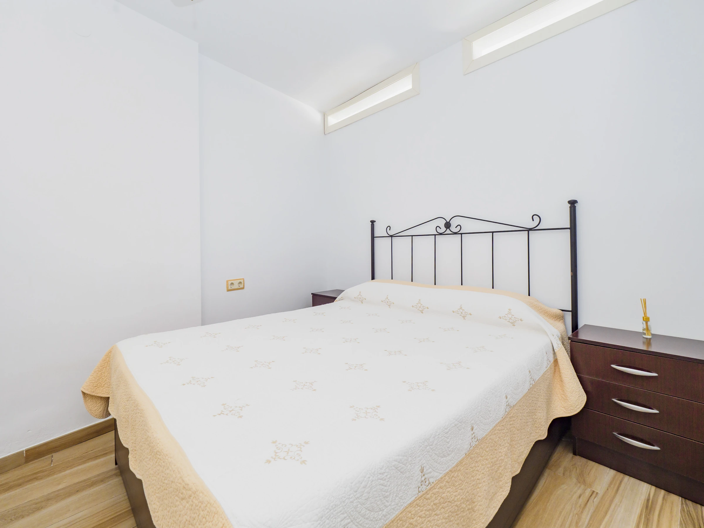 Das Hauptschlafzimmer verfügt über ein Doppelbett und einen geräumigen Kleiderschrank, während die Schlafcouch im Wohnzimmer die Kapazität erweitert. Das vollständige Badezimmer verfügt über eine Dusche.