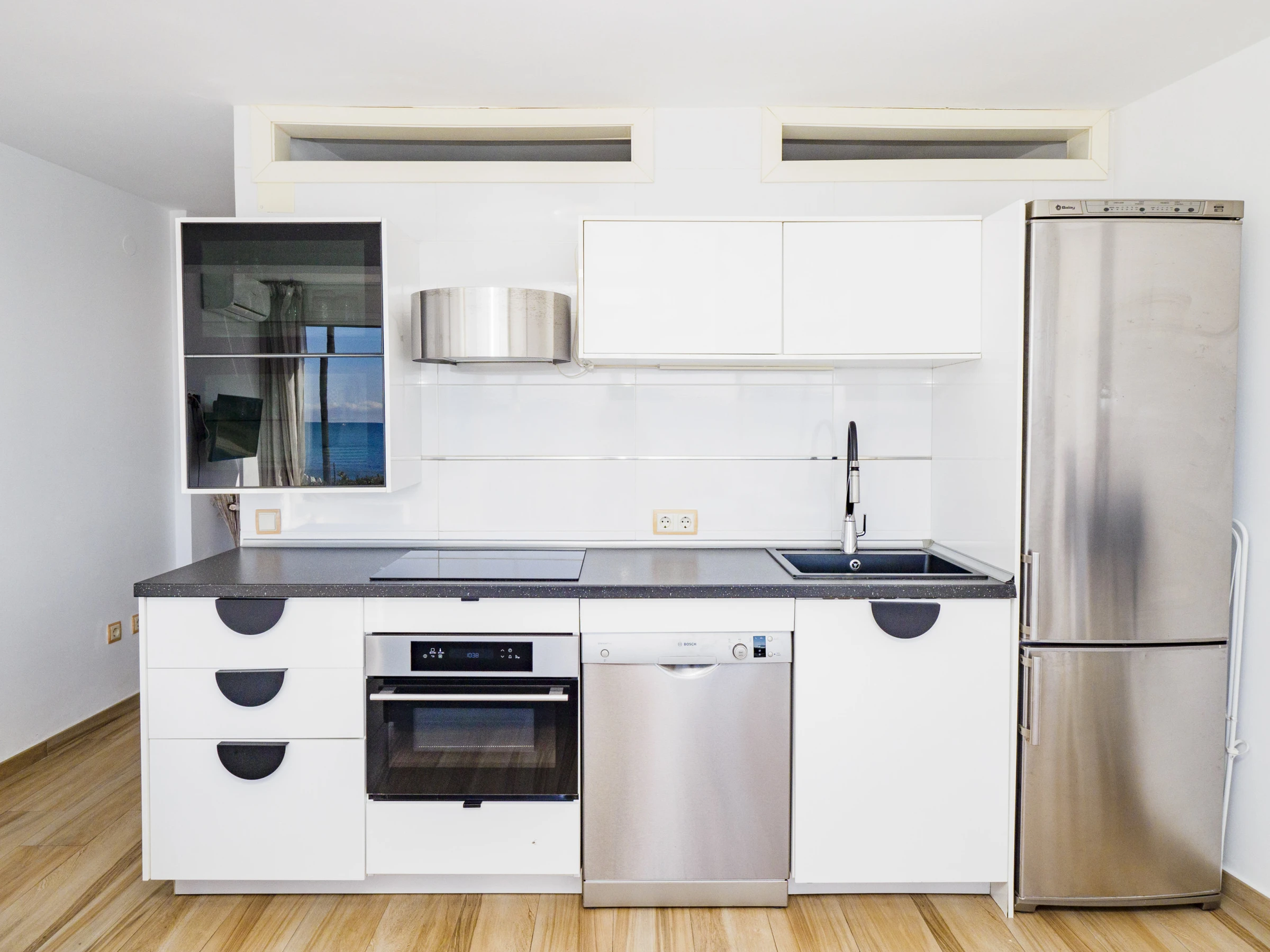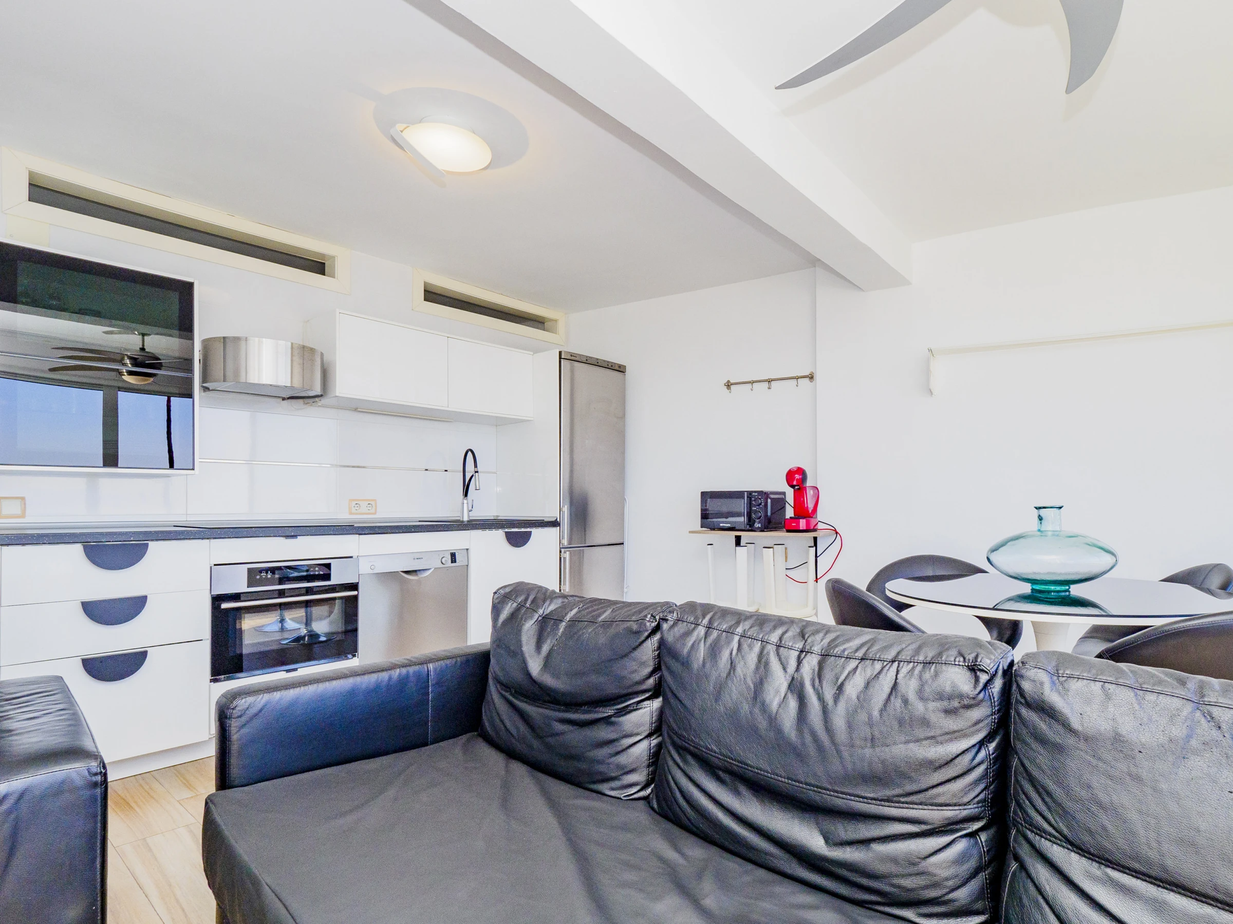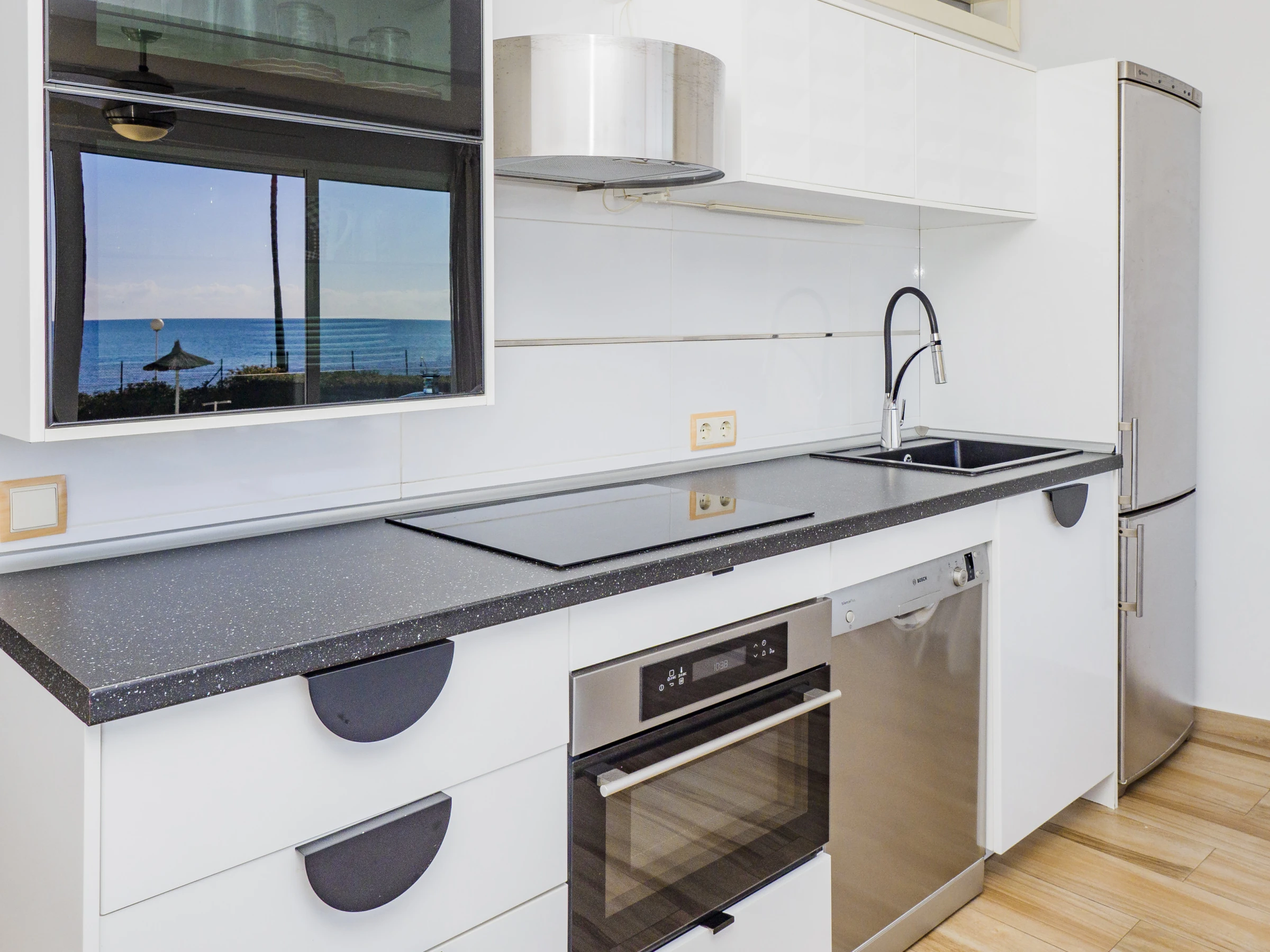 Genieße die perfekte Kombination aus Komfort und Lage in dieser Erdgeschosswohnung, ideal für Paare und Gruppen von bis zu 4 Personen nur für Erwachsene. Entspanne dich in einem lichtdurchfluteten Raum mit Wohn-Esszimmer, das Blicke auf den Pool und das Meer bietet, perfekt für mediterrane Frühstücke oder Homeoffice dank High-Speed-WLAN. Die praktische und gut ausgestattete offene Küche ermöglicht es dir, deine Mahlzeiten bequem zuzubereiten.