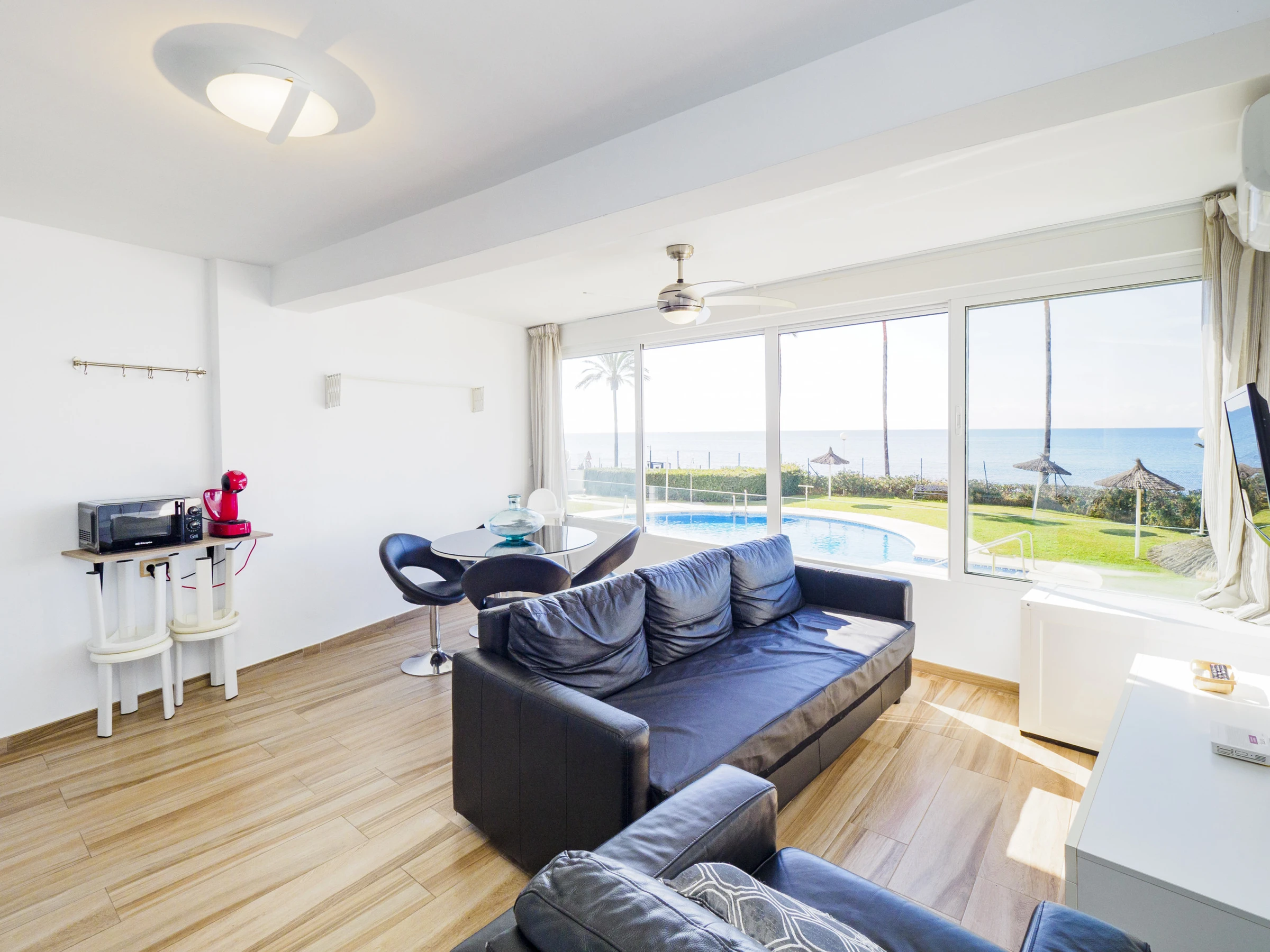 Gemütliche Wohnung in erster Meereslinie mit Meerblick und direktem Zugang zum Küstenpfad, perfekt für Paare und Ausflüge in Mijas Costa. 🌞🏖️