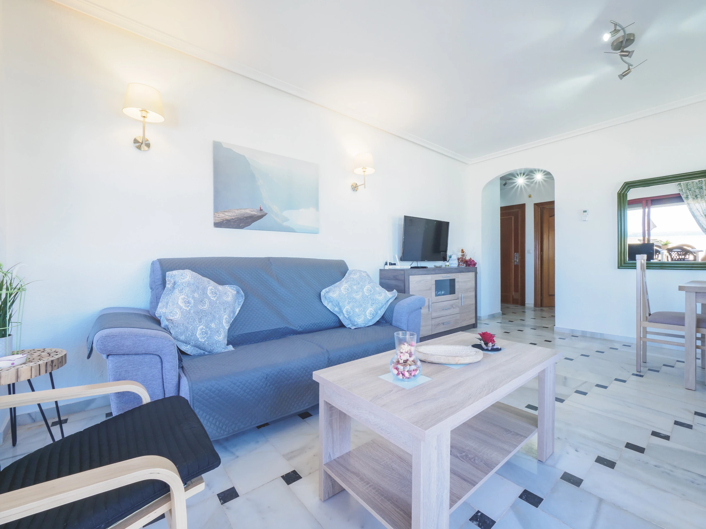 Diese gemütliche Wohnung in Cala de Mijas ist perfekt für Paare, die das Meer und die Ruhe der Costa del Sol genießen möchten. Direkt an der Strandfront gelegen, bietet die Unterkunft atemberaubende Meerblicke von der 60 m² großen Dachterrasse, die mit Sonnenliegen, Sonnenschirm und Gartenmöbeln ausgestattet ist, damit Sie sich entspannen und beim Mittagessen die Küste bewundern können. Darüber hinaus verfügt die Anlage über einen Gemeinschaftspool und direkten Zugang zum Küstenpfad und zum Strand, ideal für Spaziergänge, Laufen oder Radfahren entlang von Kilometern Küste bis La Cala de Mijas oder zum Hafen von Cabopino.
