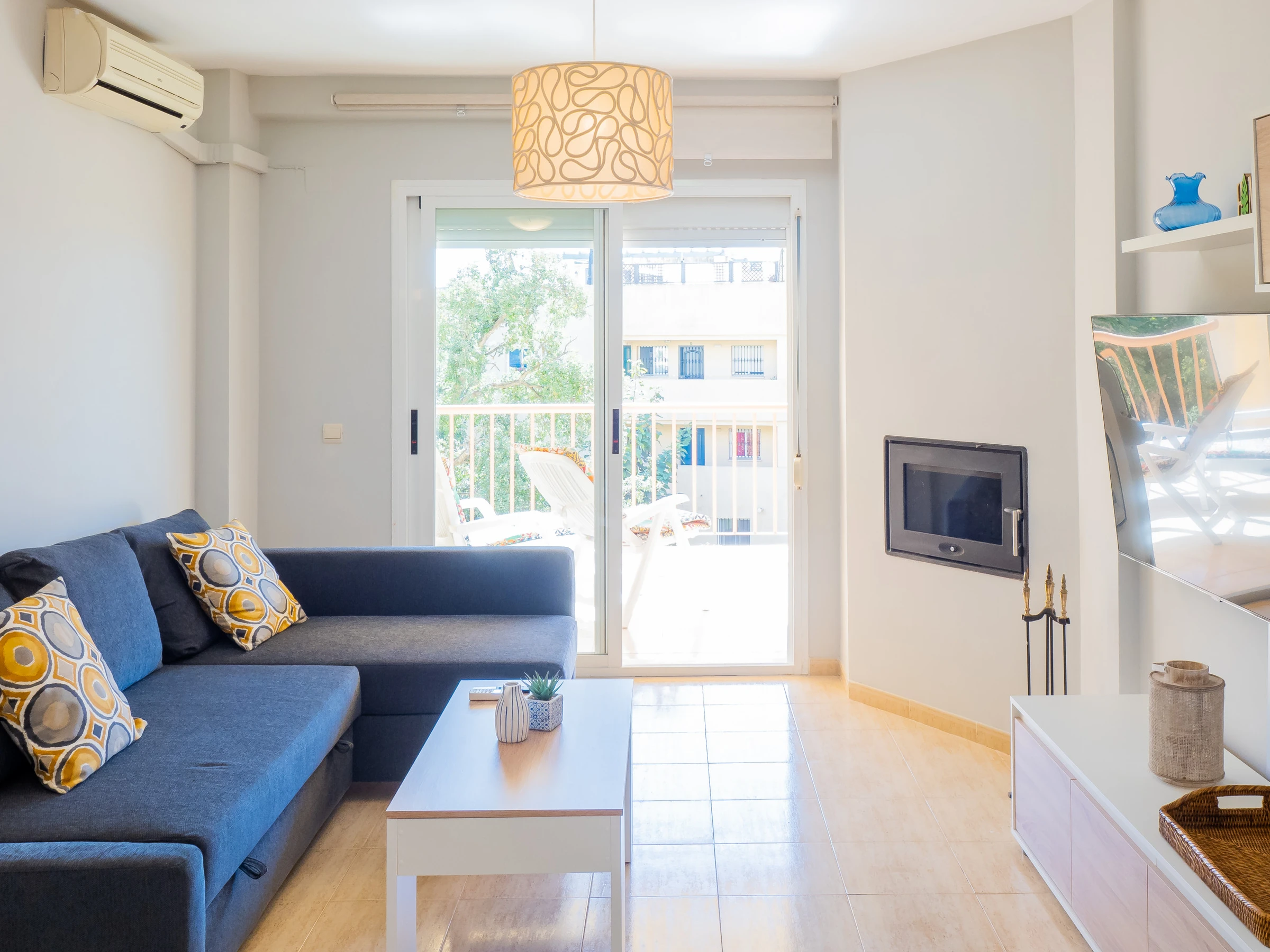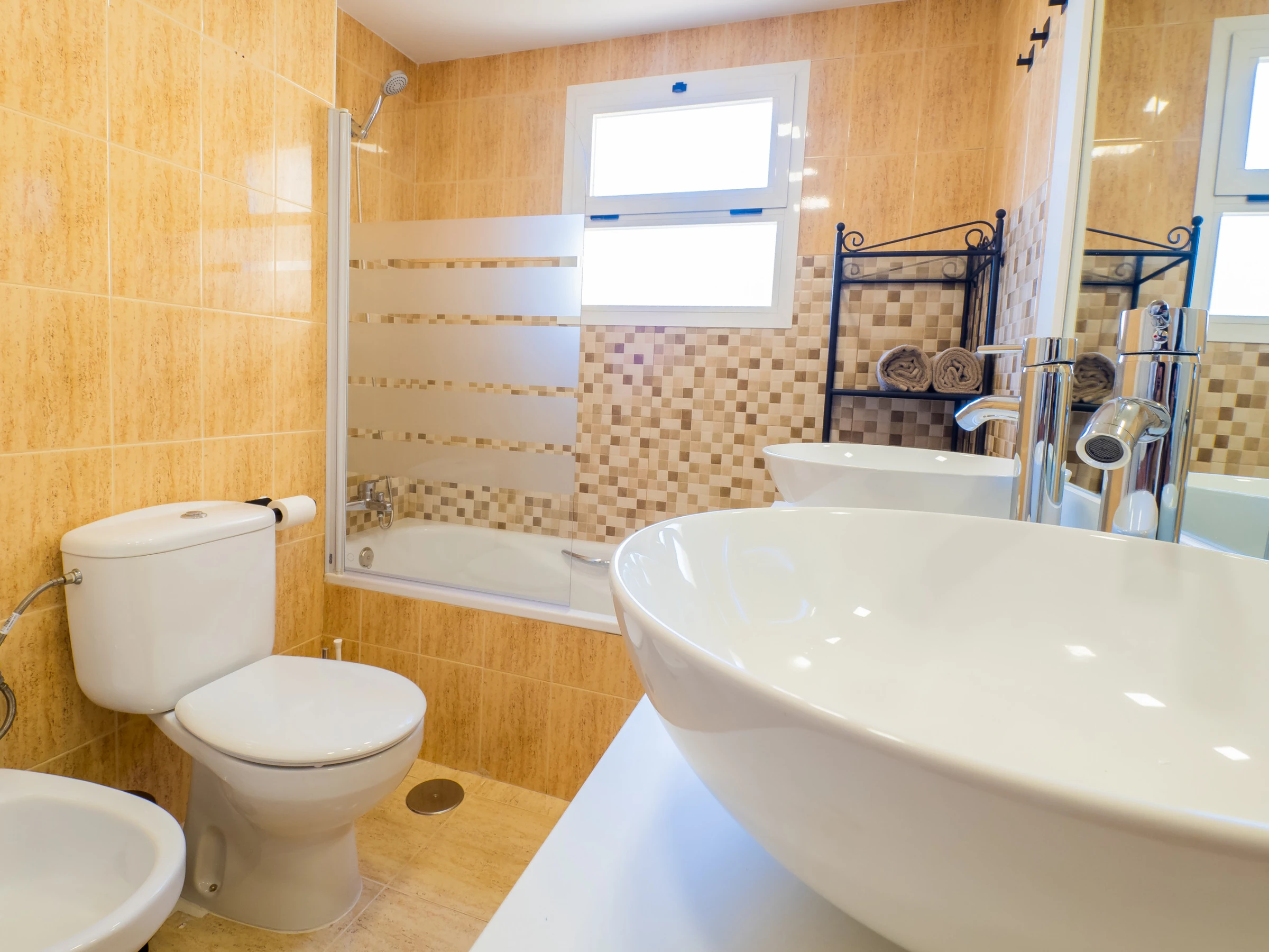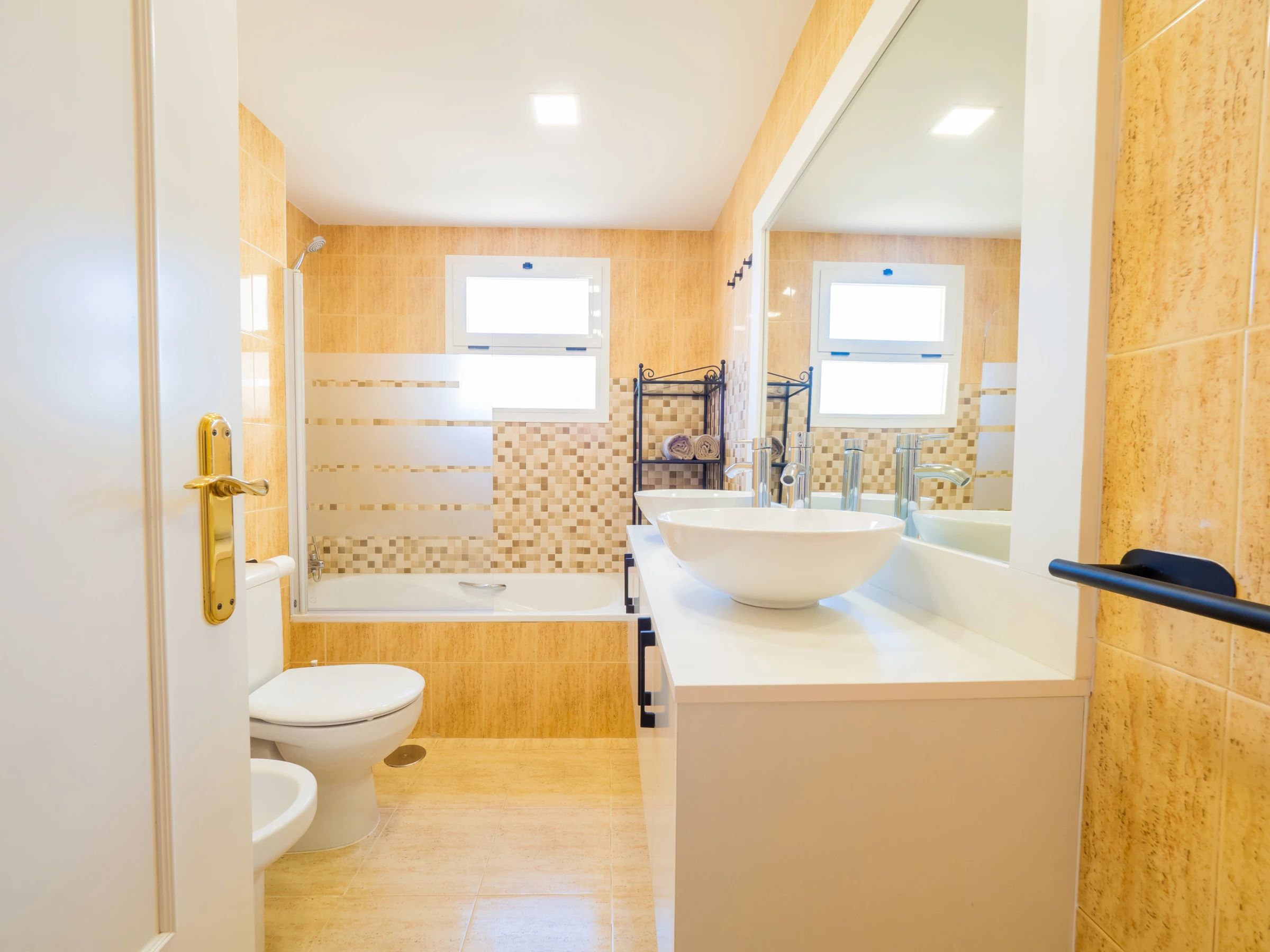 Das Badezimmer verfügt über eine Badewanne und alle notwendigen Elemente für Ihren Komfort. Darüber hinaus verfügt die Wohnung über Klimaanlage im Wohnzimmer, Heizung mit Wärmepumpe, Bügeleisen, Föhn und WLAN-Zugang, um Ihren Aufenthalt komplett zu machen.