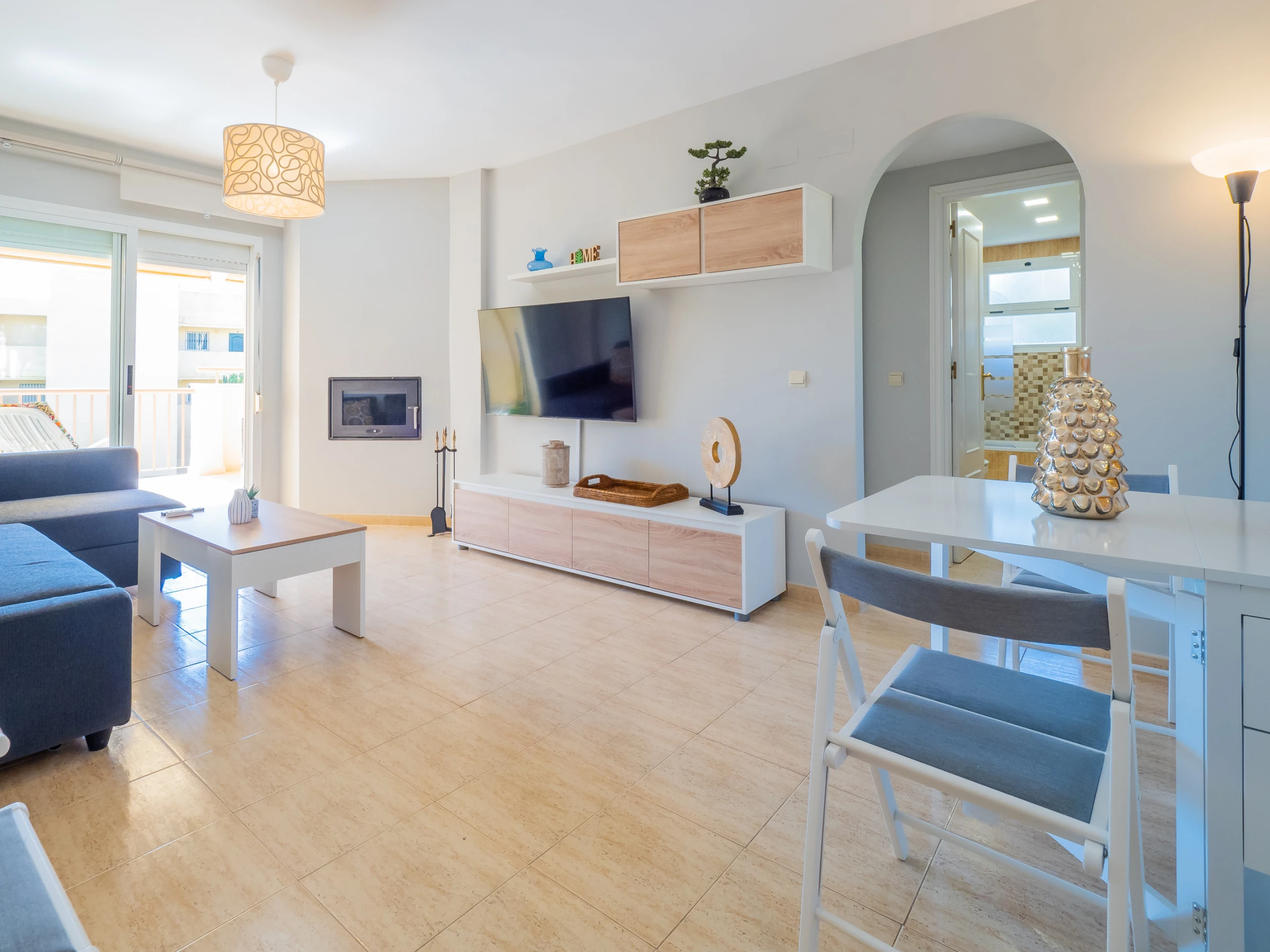 Das Innere ist hell und funktional: Ein geräumiges Wohn-Esszimmer mit Schlafsofa, um bis zu zwei zusätzliche Personen zu beherbergen, Kamin mit Sicherheitstür für kühlere Tage und Internetverbindung, damit Sie Ihre Lieblingsserie nicht verpassen 📺🔥. Die offene Küche ist komplett ausgestattet mit modernen Haushaltsgeräten, einschließlich Induktionsherd, Mikrowelle, Backofen, Geschirrspüler und allen Utensilien, um Ihre Mahlzeiten einfach zuzubereiten.