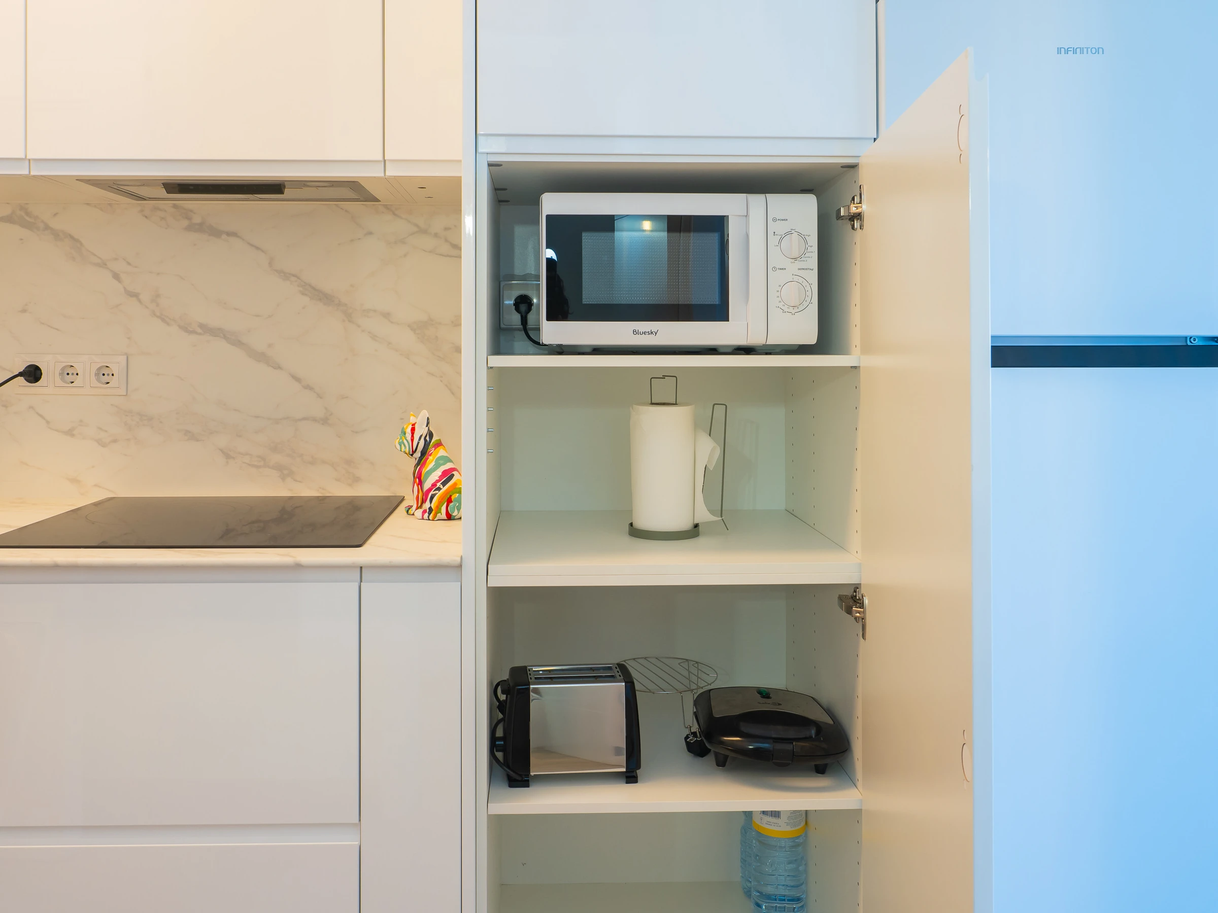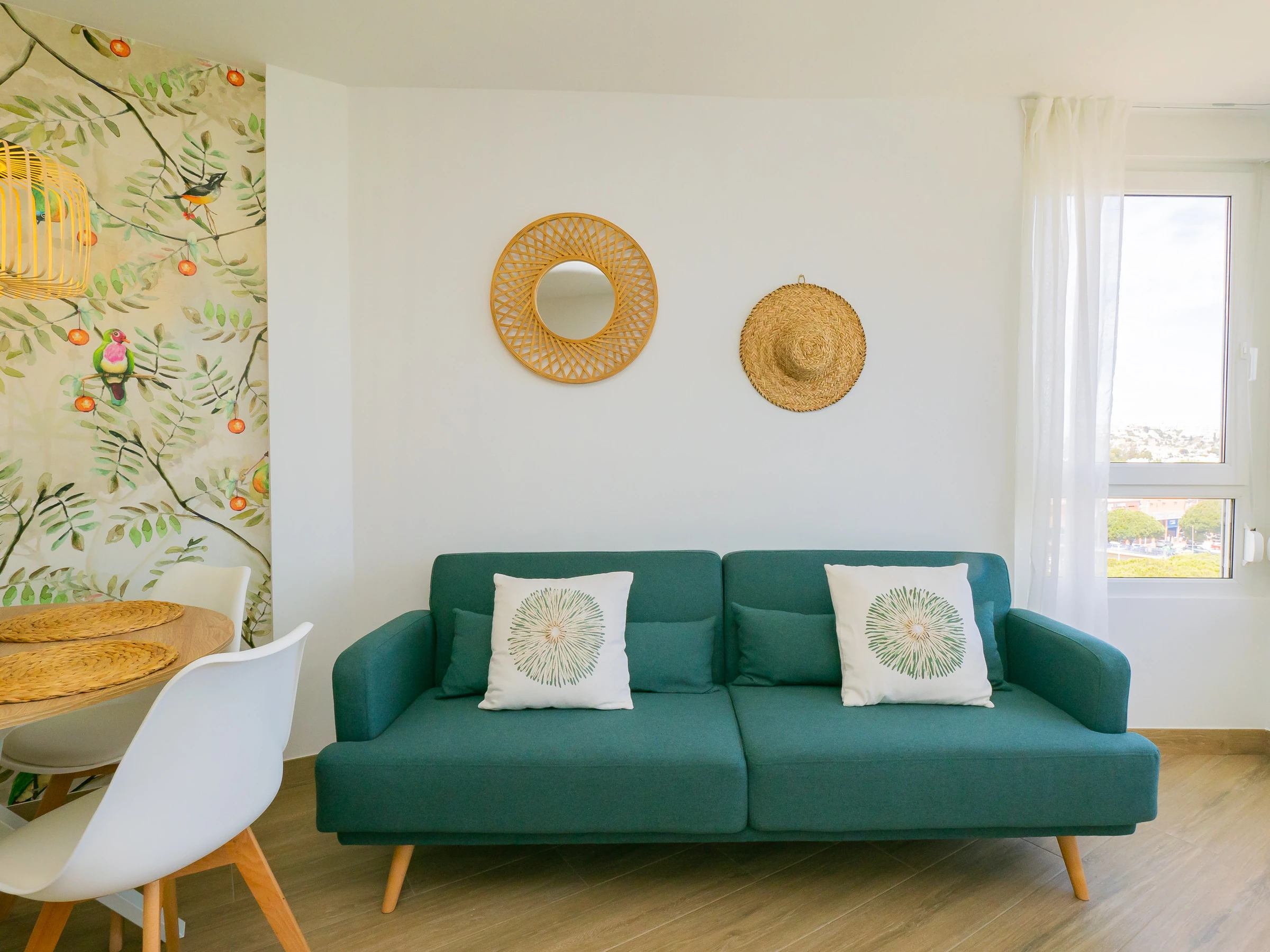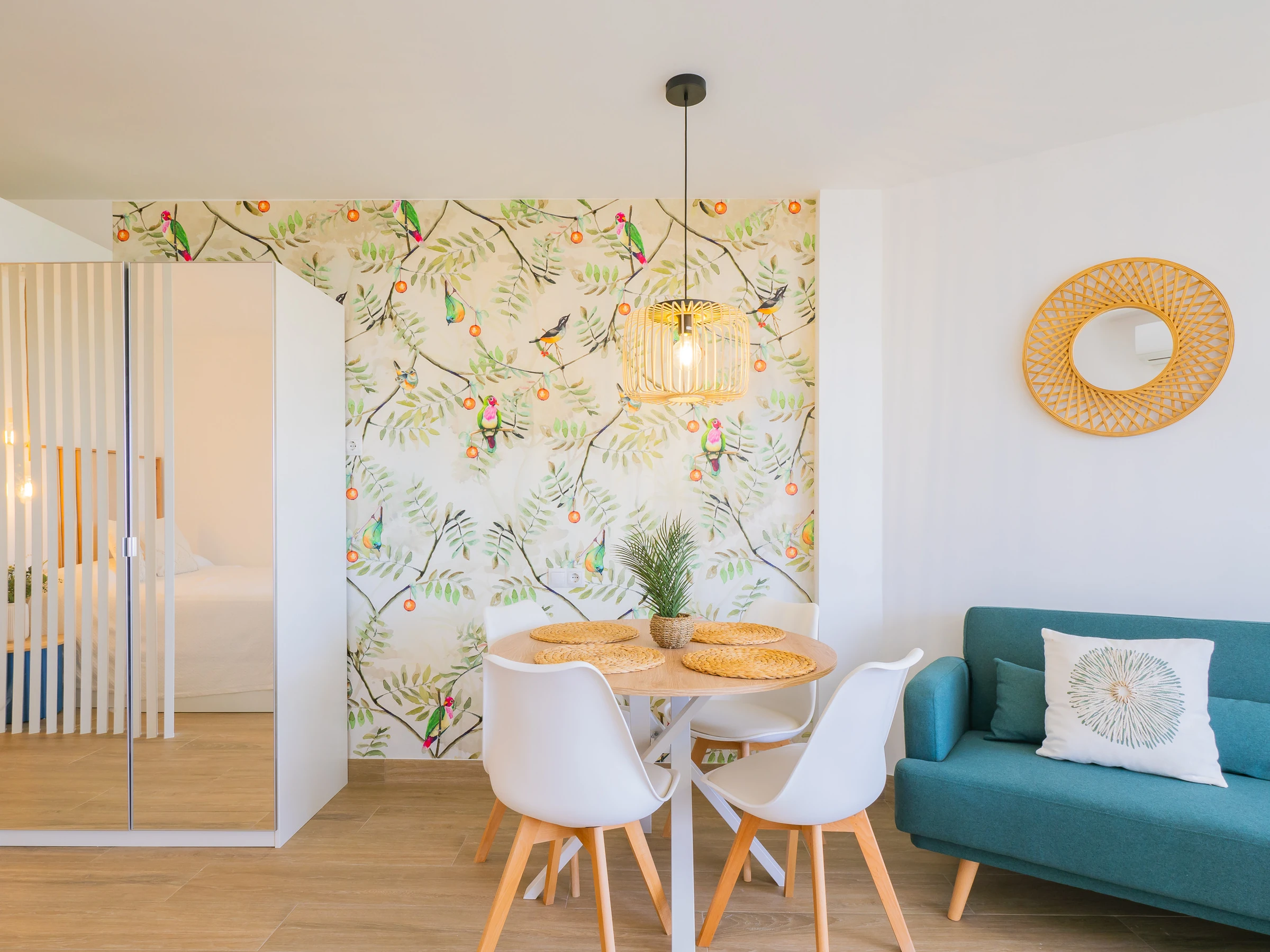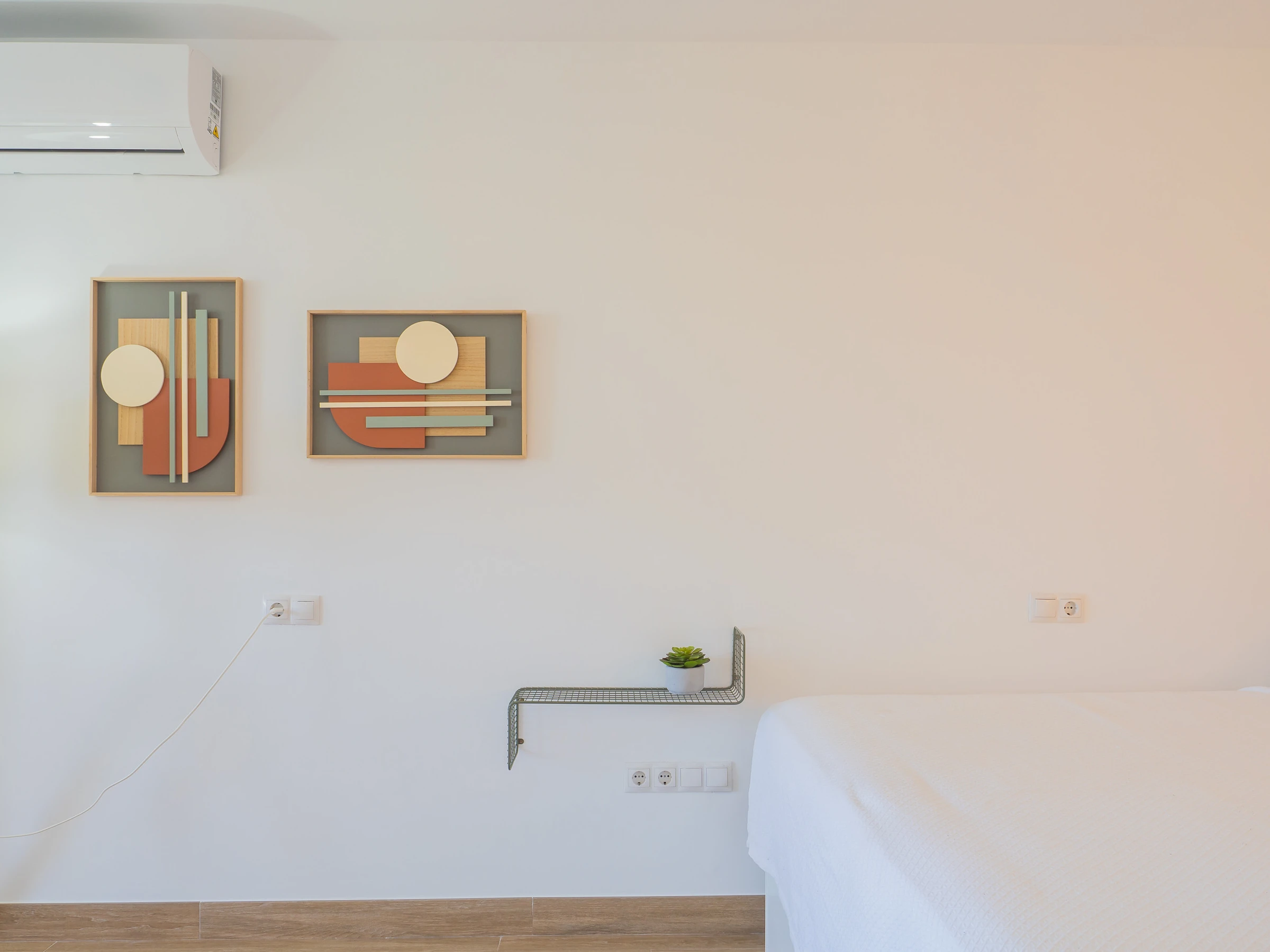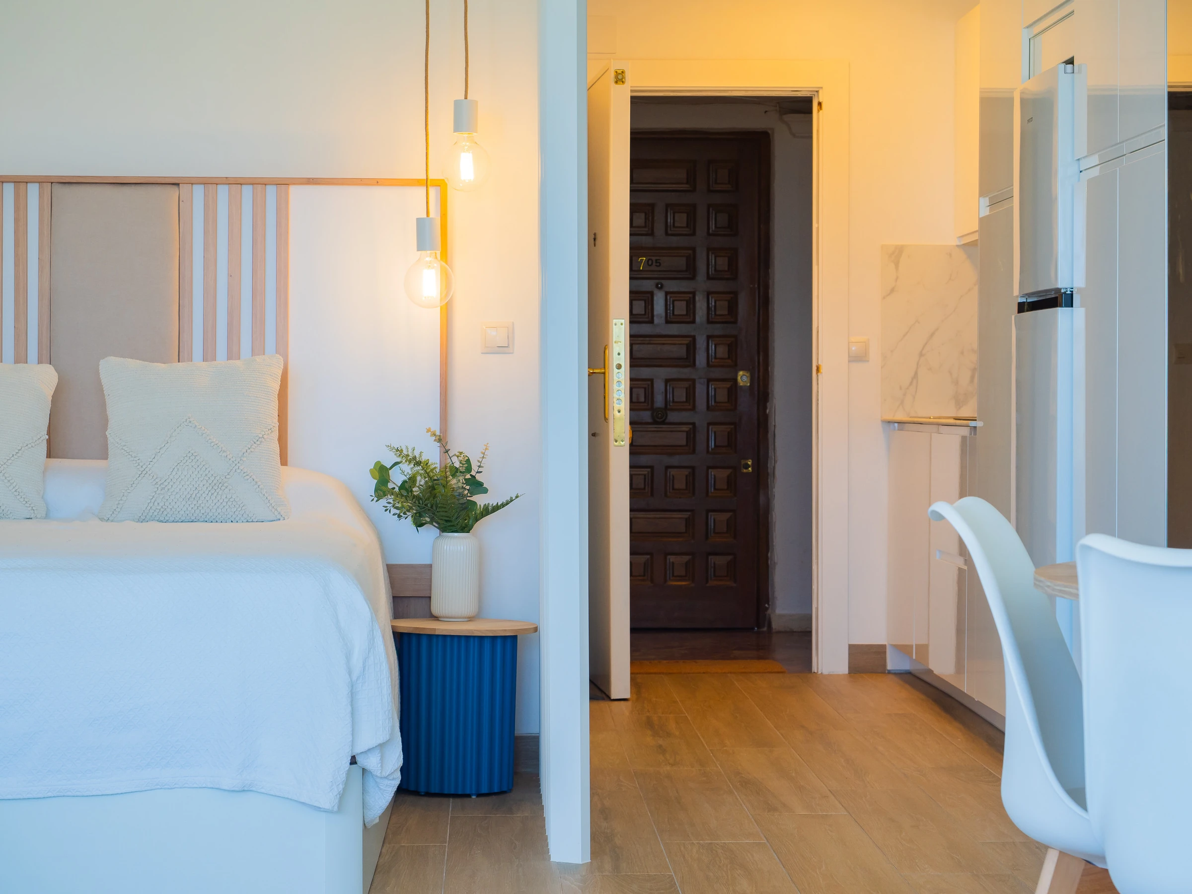 Mit 35 m² geschmackvoll und im modernen Stil eingerichtet, integriert der Raum Wohn-Esszimmer, offene Küche und Schlafbereich mit einem bequemen Doppelbett. Er verfügt über Klimaanlage, Heizung mit Wärmepumpe, WLAN, Smart-TV, Ventilator, Waschmaschine, Trockner und Bügeleisen, um einen komfortablen und funktionalen Aufenthalt zu gewährleisten. Die Küche ist ausgestattet mit Glaskeramikkochfeld, Kühlschrank, Mikrowelle, Gefrierschrank, Geschirrspüler, Küchenutensilien und Kaffeemaschine, damit Sie Ihre Mahlzeiten problemlos zubereiten können.