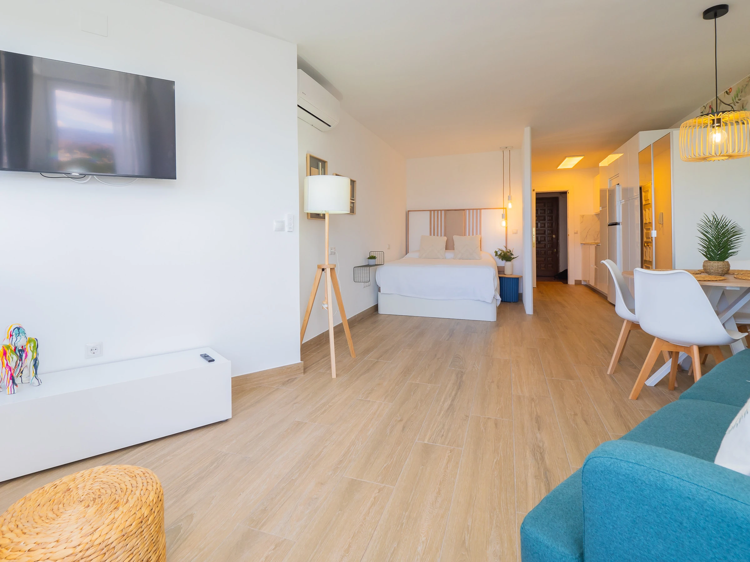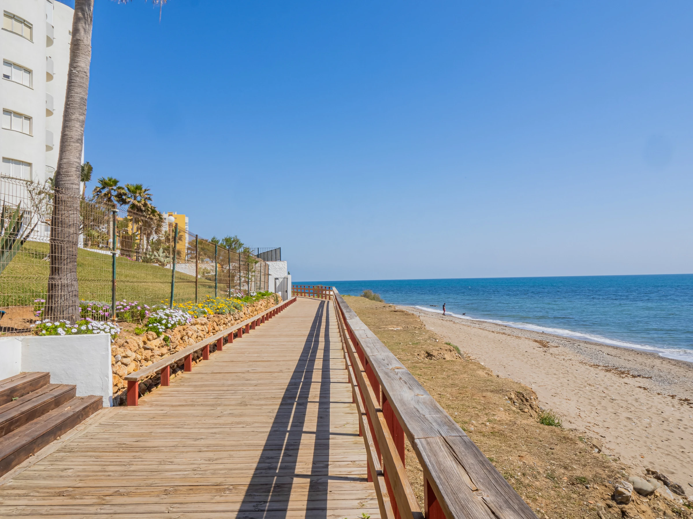 Urlaubsstudie in Mijas mit Meerblick, nur 50 Meter vom Strand entfernt und umgeben von weitläufigen Grünflächen und Schwimmbädern, ideal für Paare, die die Costa del Sol entdecken möchten. 🌞🌊