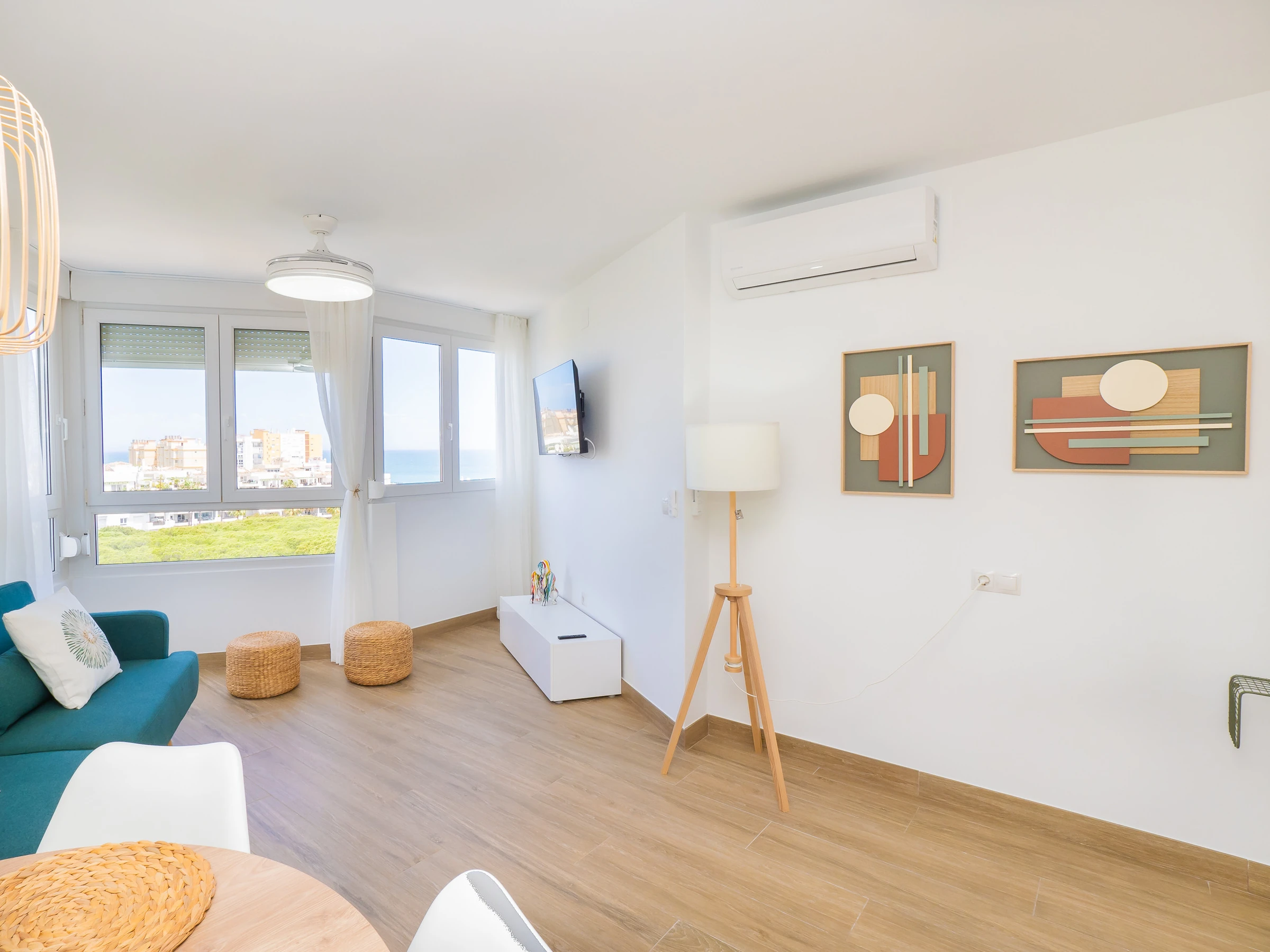 Dieses gemütliche Ferienstudio in Mijas ist perfekt für Paare, die den Strand und lange Spaziergänge entlang der Küstenpromenade genießen möchten und zudem hervorragende Straßenverbindungen haben, um den soziokulturellen Reichtum der Costa del Sol zu erkunden. Es befindet sich im siebten Stock mit Aufzug und bietet schöne Ausblicke auf den Gemeinschaftsgarten und das Meer, was eine ideale Atmosphäre zum entspannten Frühstücken oder Mittagessen schafft.