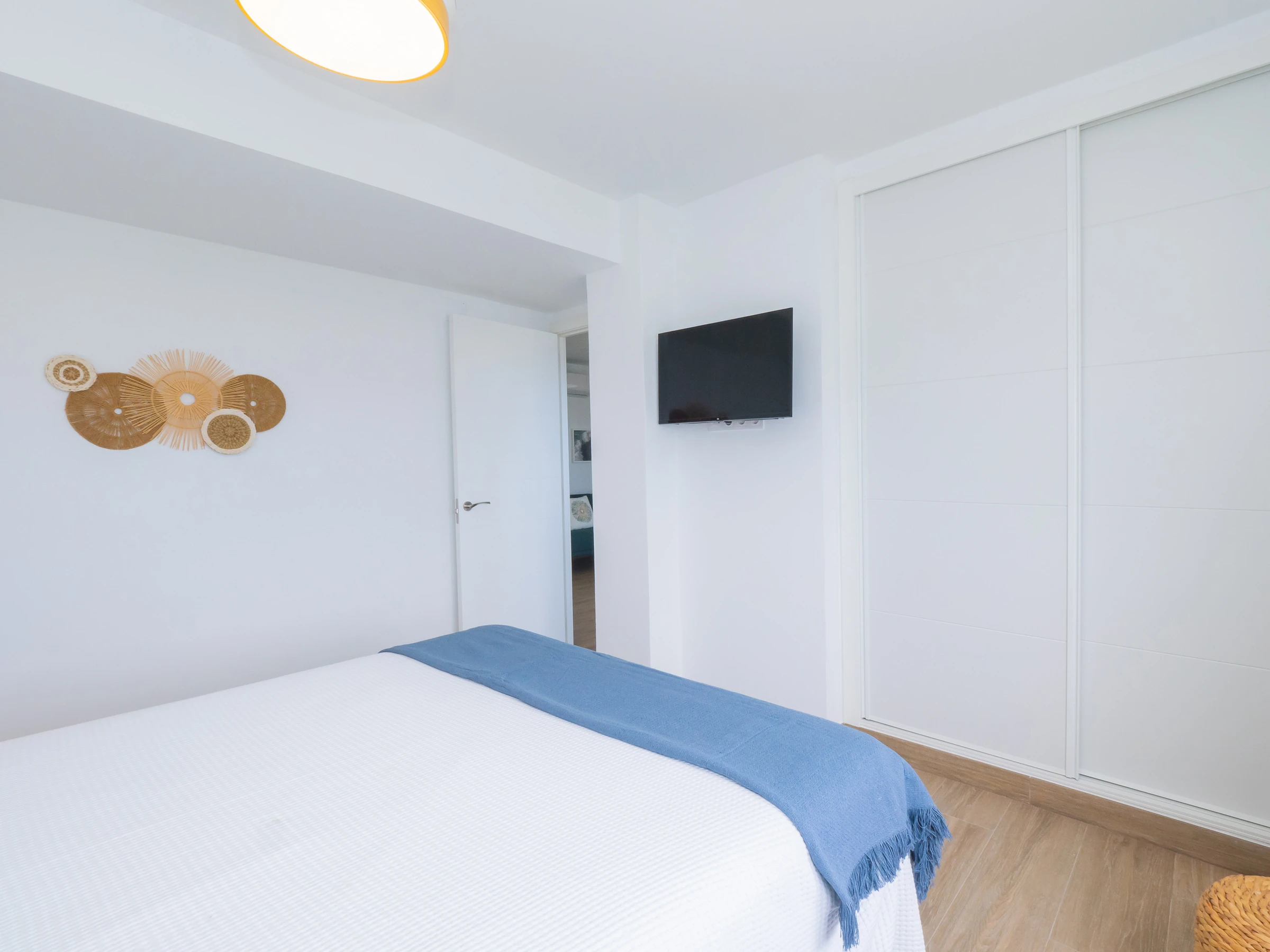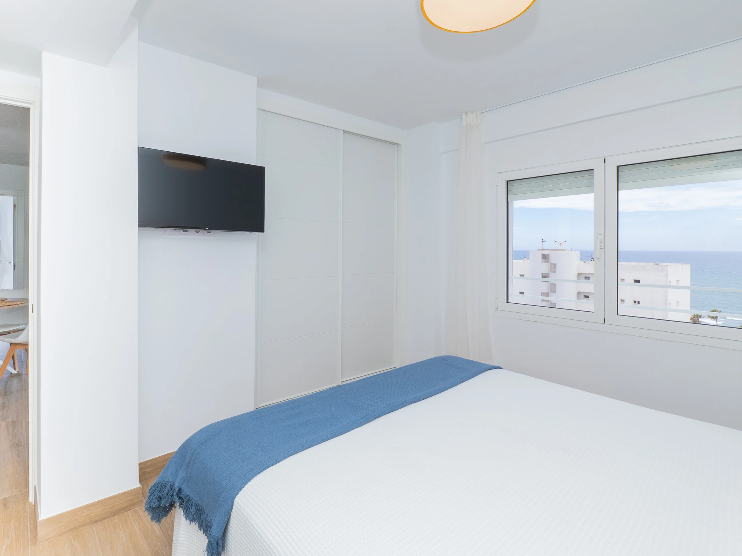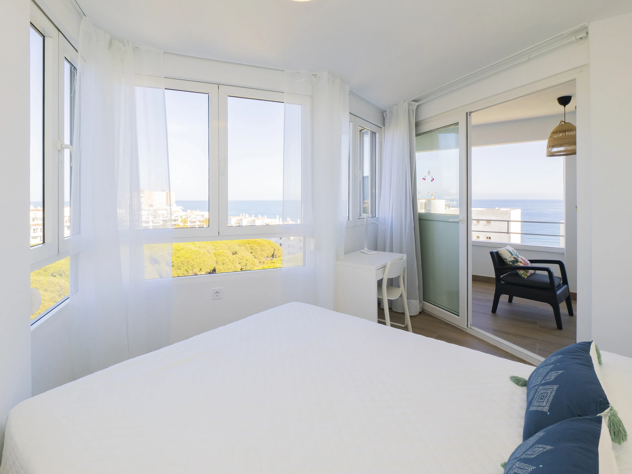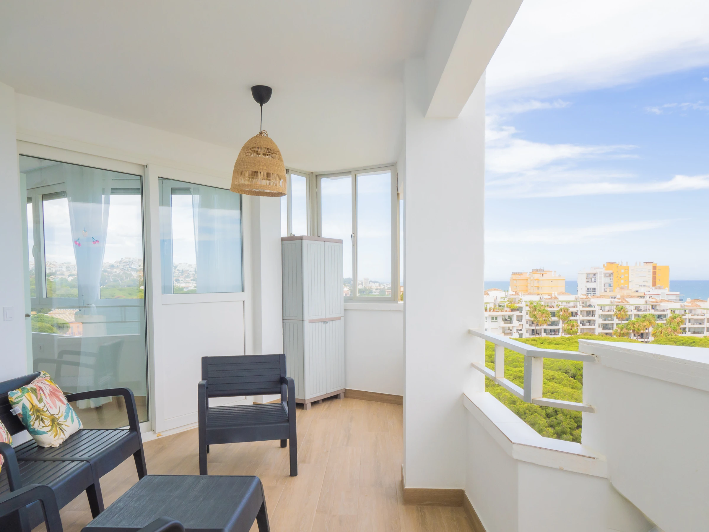 Die Wohnung befindet sich im siebten Stock eines Gebäudes mit Aufzug und verfügt über eine Terrasse von 25 m² mit Blick auf den Garten und das Meer, perfekt zum Frühstücken oder Mittagessen, während man die Landschaft genießt. Die Einrichtung ist modern und funktional, mit einem integrierten Raum, der Wohnzimmer, offene Küche und zwei lichtdurchflutete Schlafzimmer mit Doppelbetten kombiniert. Sie verfügt über Klimaanlage im Wohnzimmer, Heizung mit Wärmepumpe, zwei Smart-TVs und WLAN-Internetverbindung, damit es an nichts mangelt.