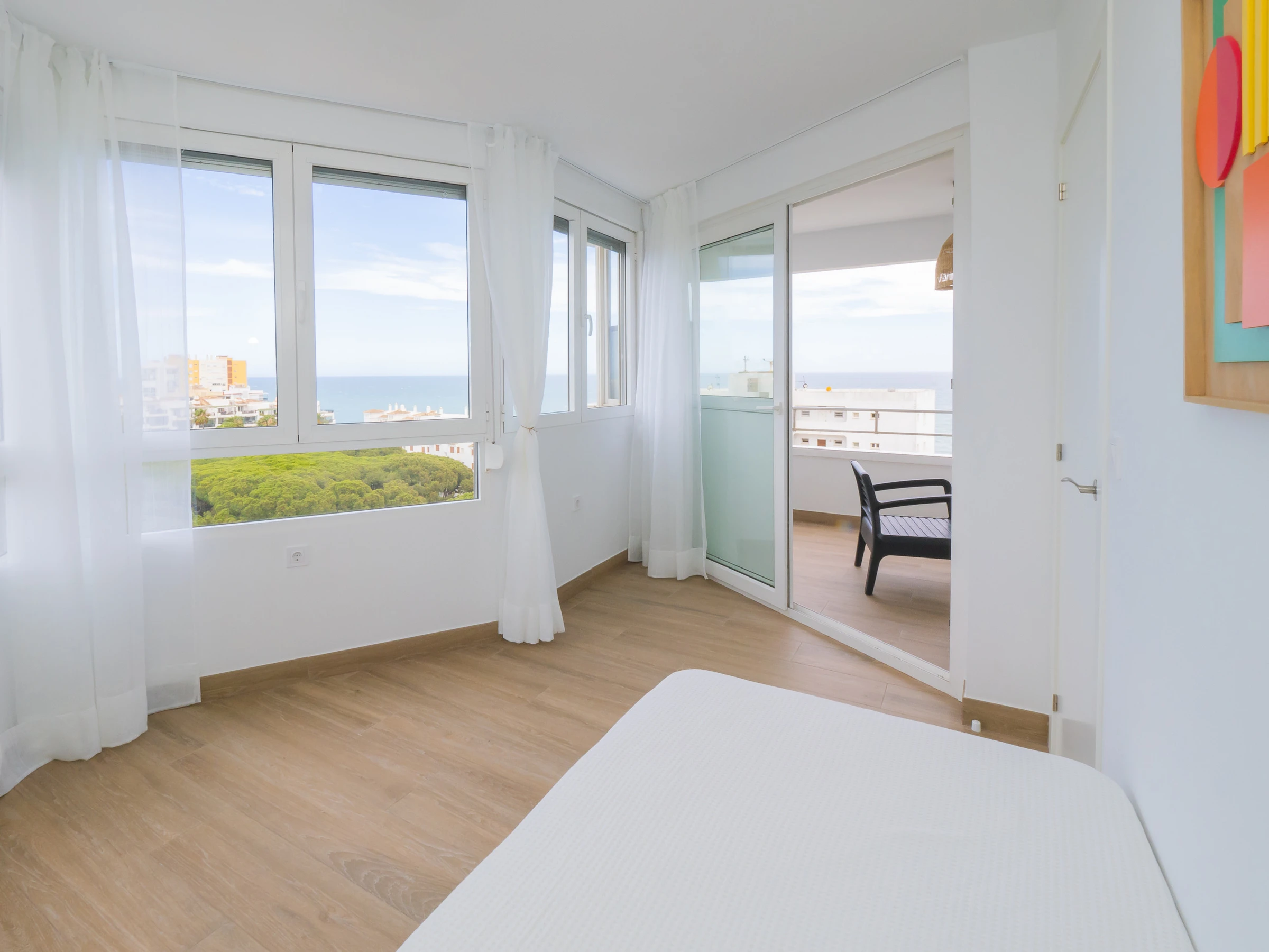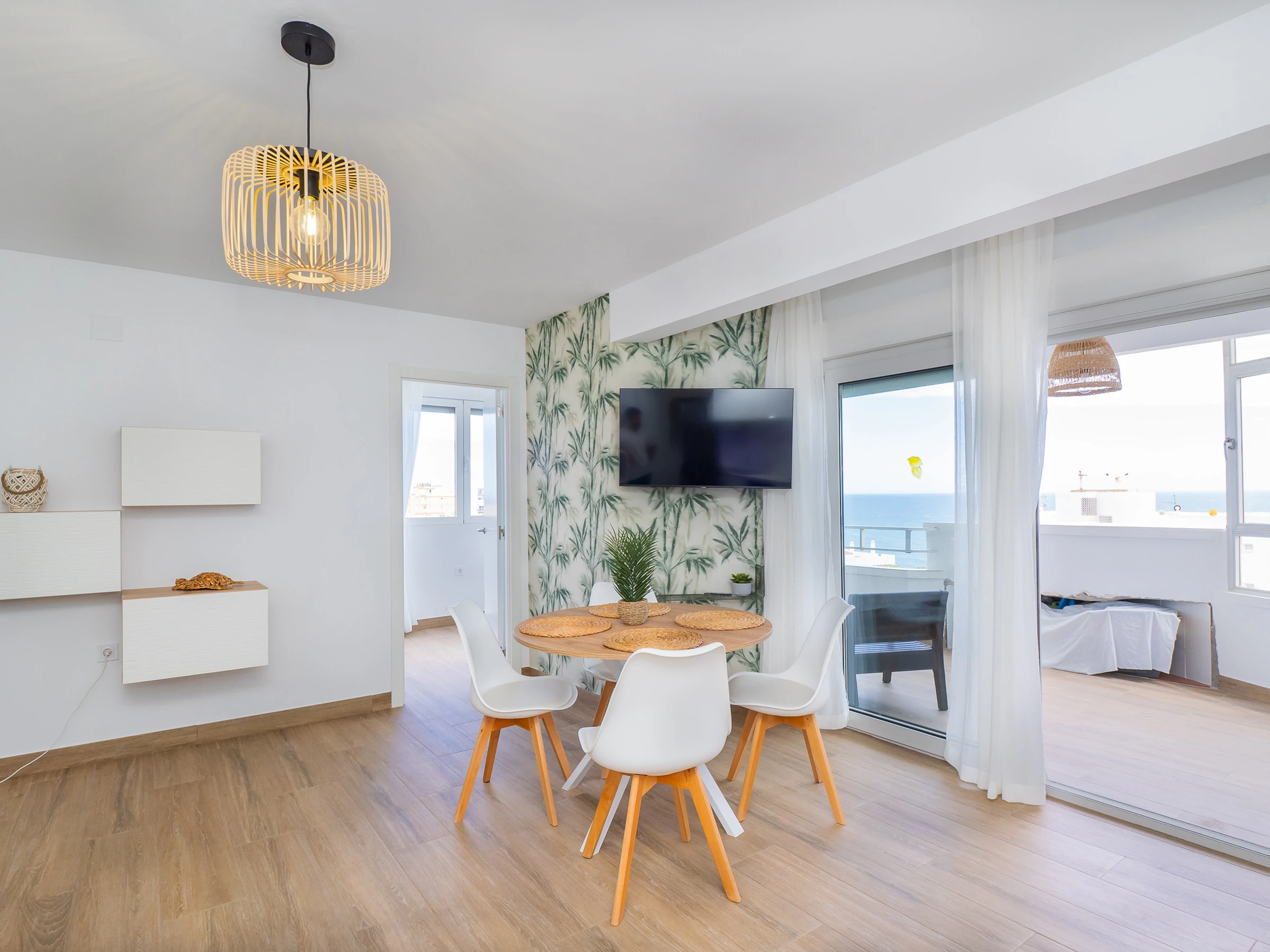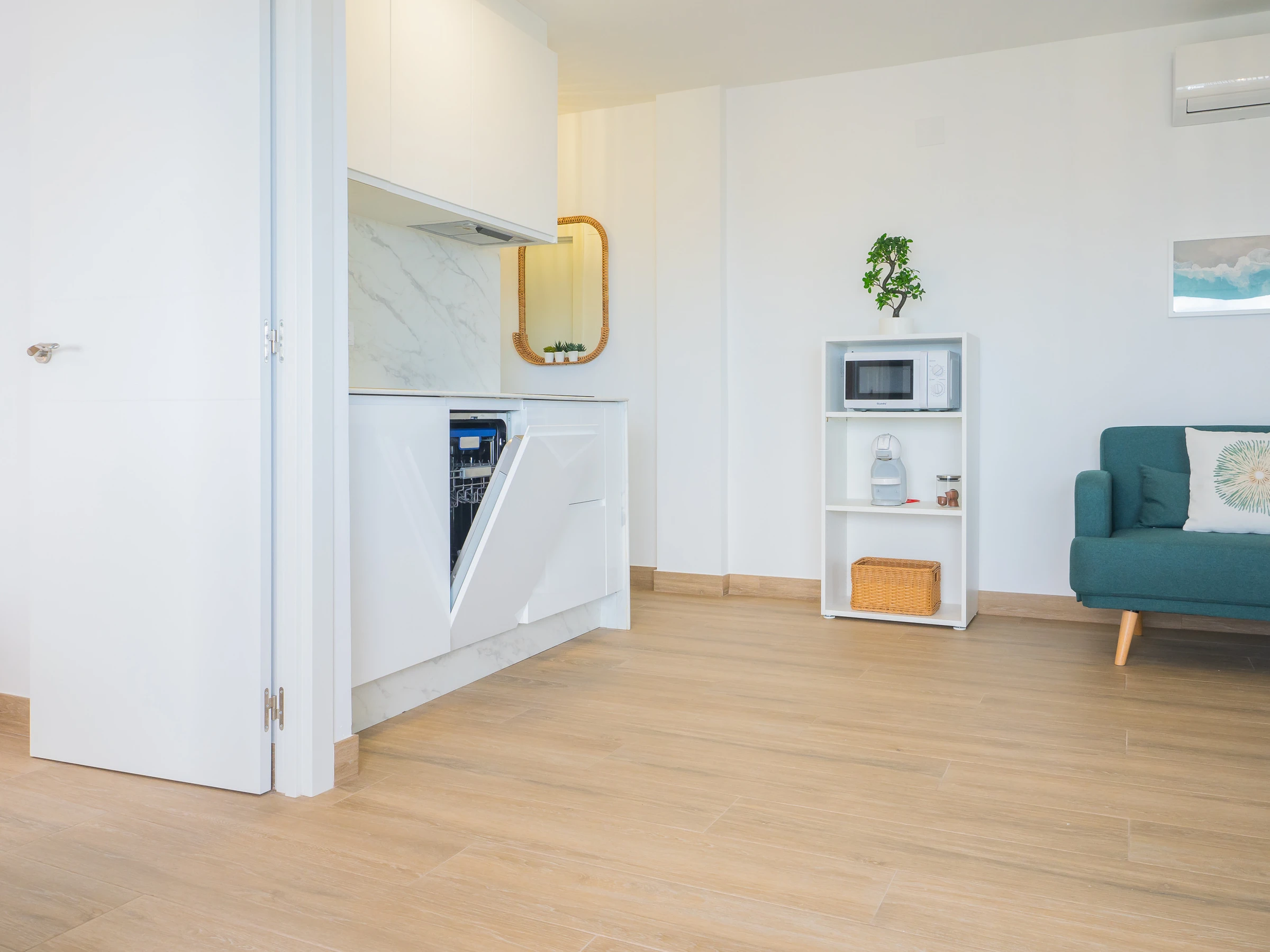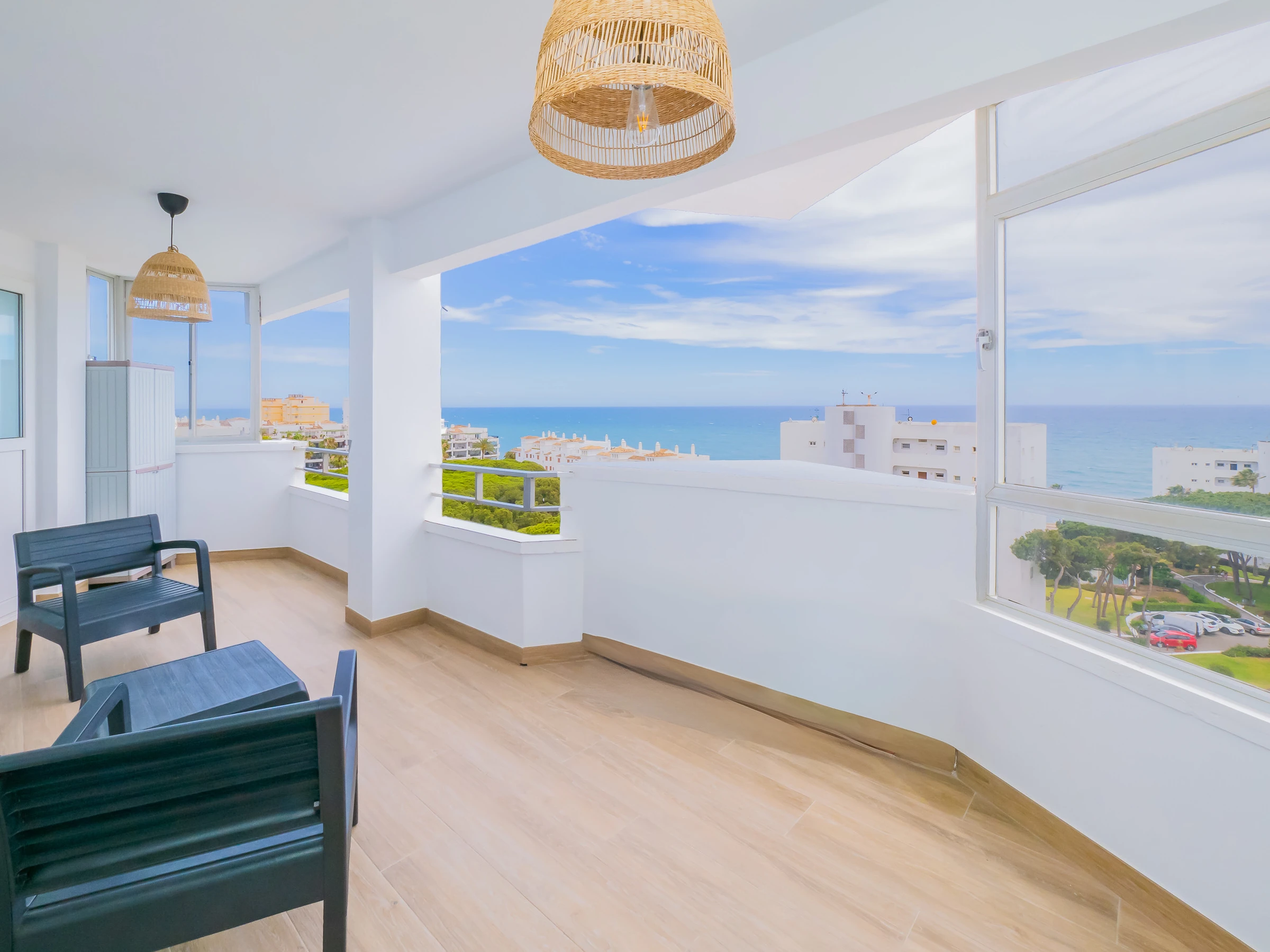 Die Wohnung befindet sich im siebten Stock eines Gebäudes mit Aufzug und verfügt über eine Terrasse von 25 m² mit Blick auf den Garten und das Meer, perfekt zum Frühstücken oder Mittagessen, während man die Landschaft genießt. Die Einrichtung ist modern und funktional, mit einem integrierten Raum, der Wohnzimmer, offene Küche und zwei lichtdurchflutete Schlafzimmer mit Doppelbetten kombiniert. Sie verfügt über Klimaanlage im Wohnzimmer, Heizung mit Wärmepumpe, zwei Smart-TVs und WLAN-Internetverbindung, damit es an nichts mangelt.