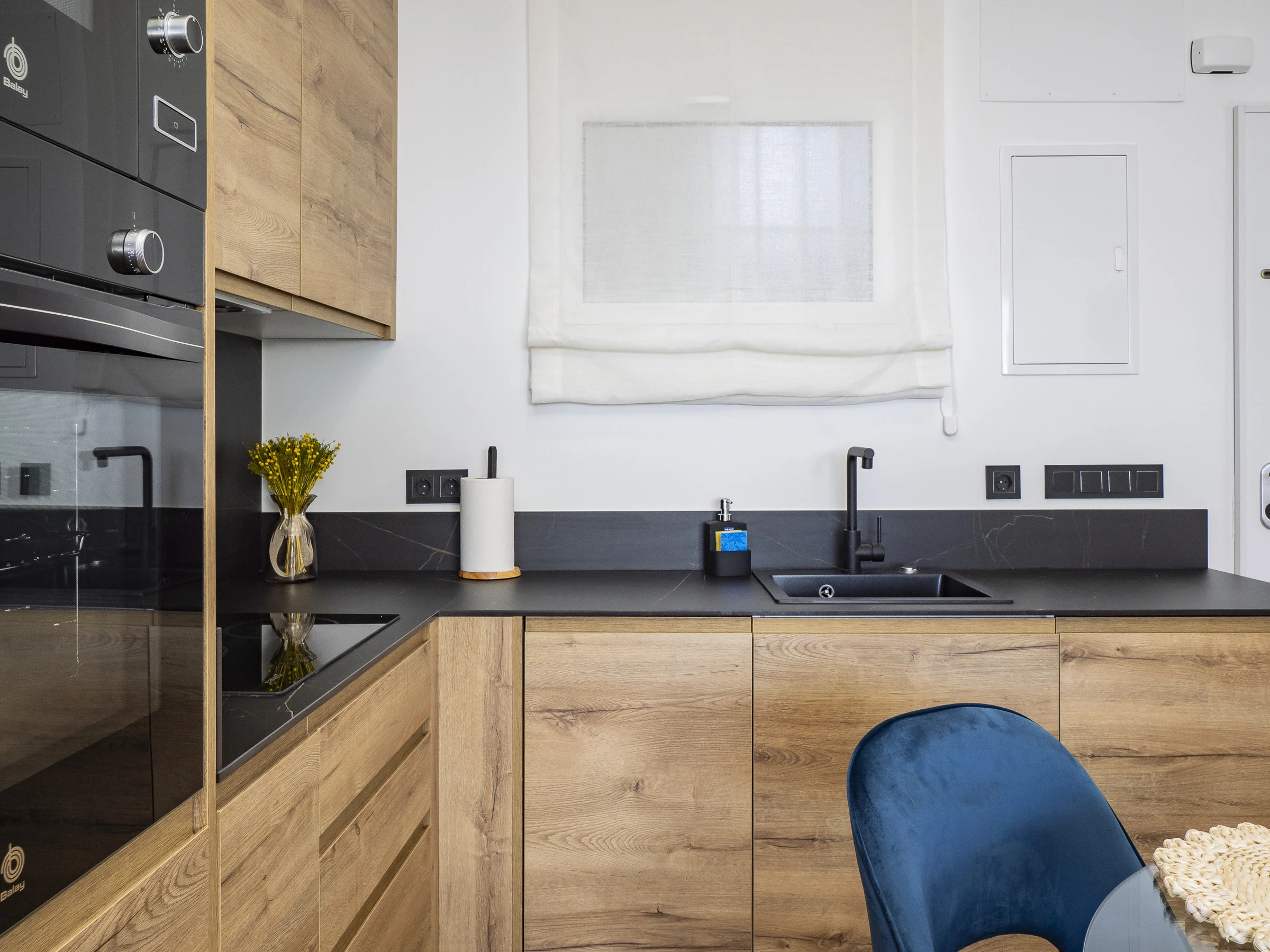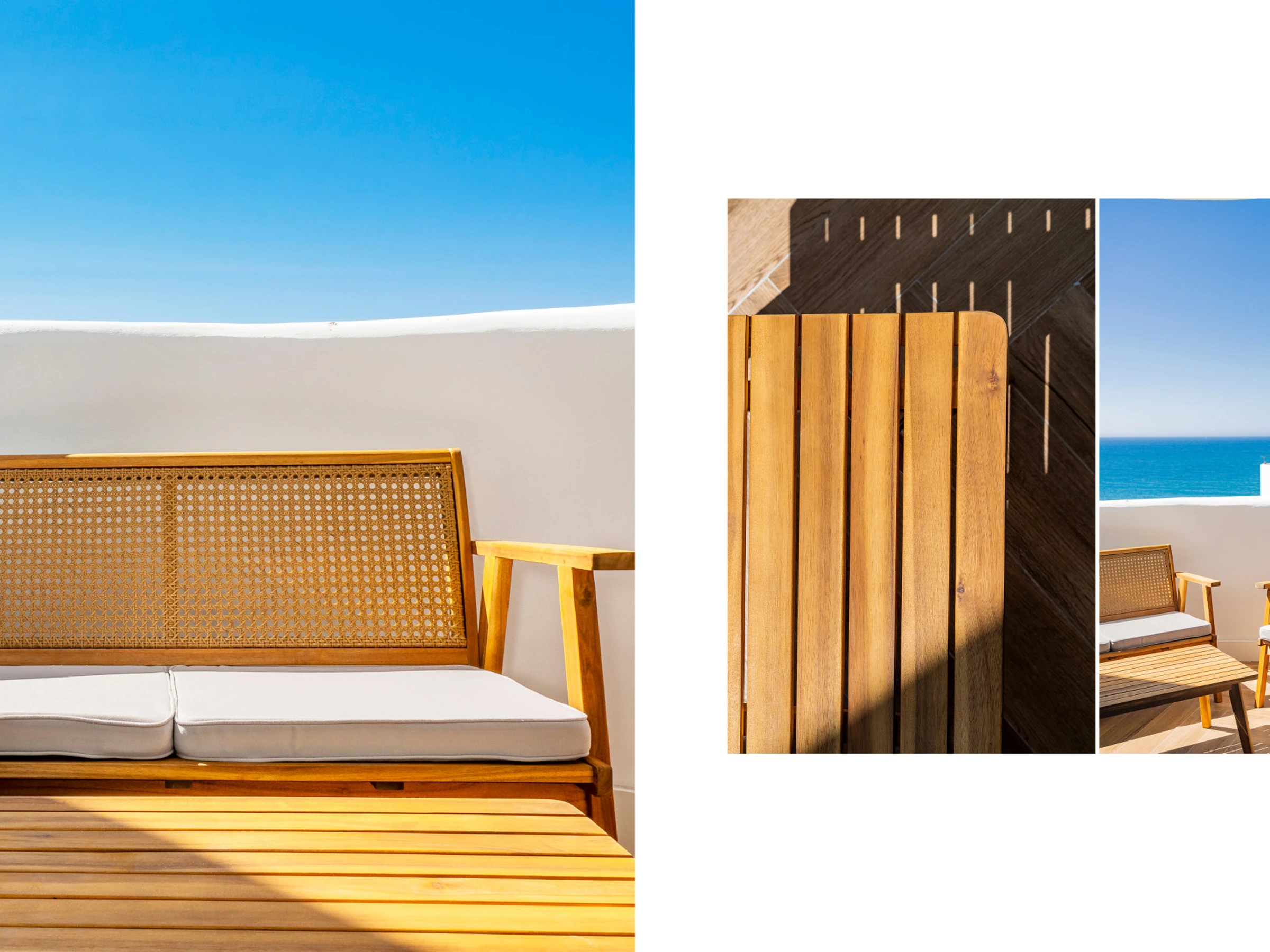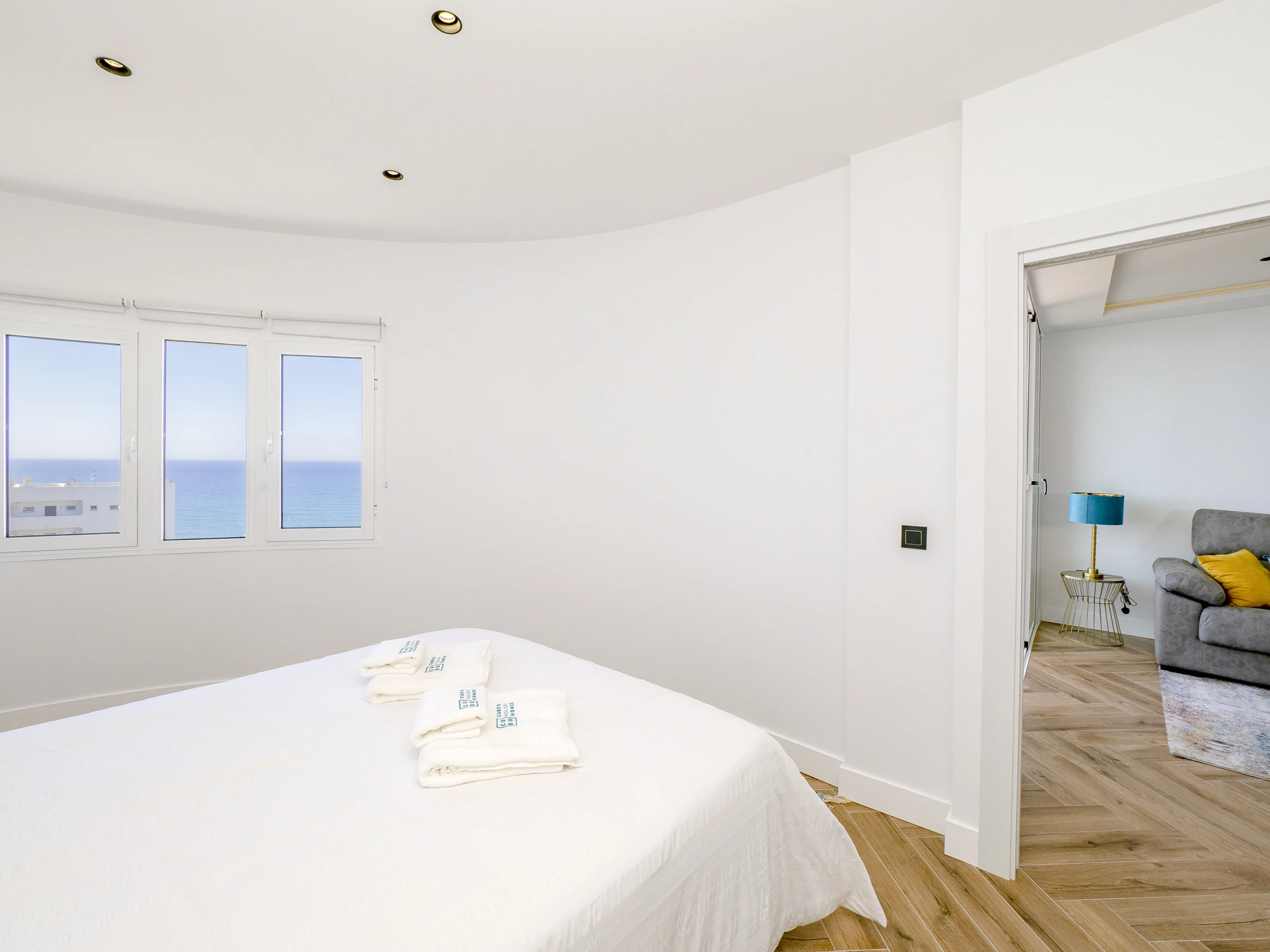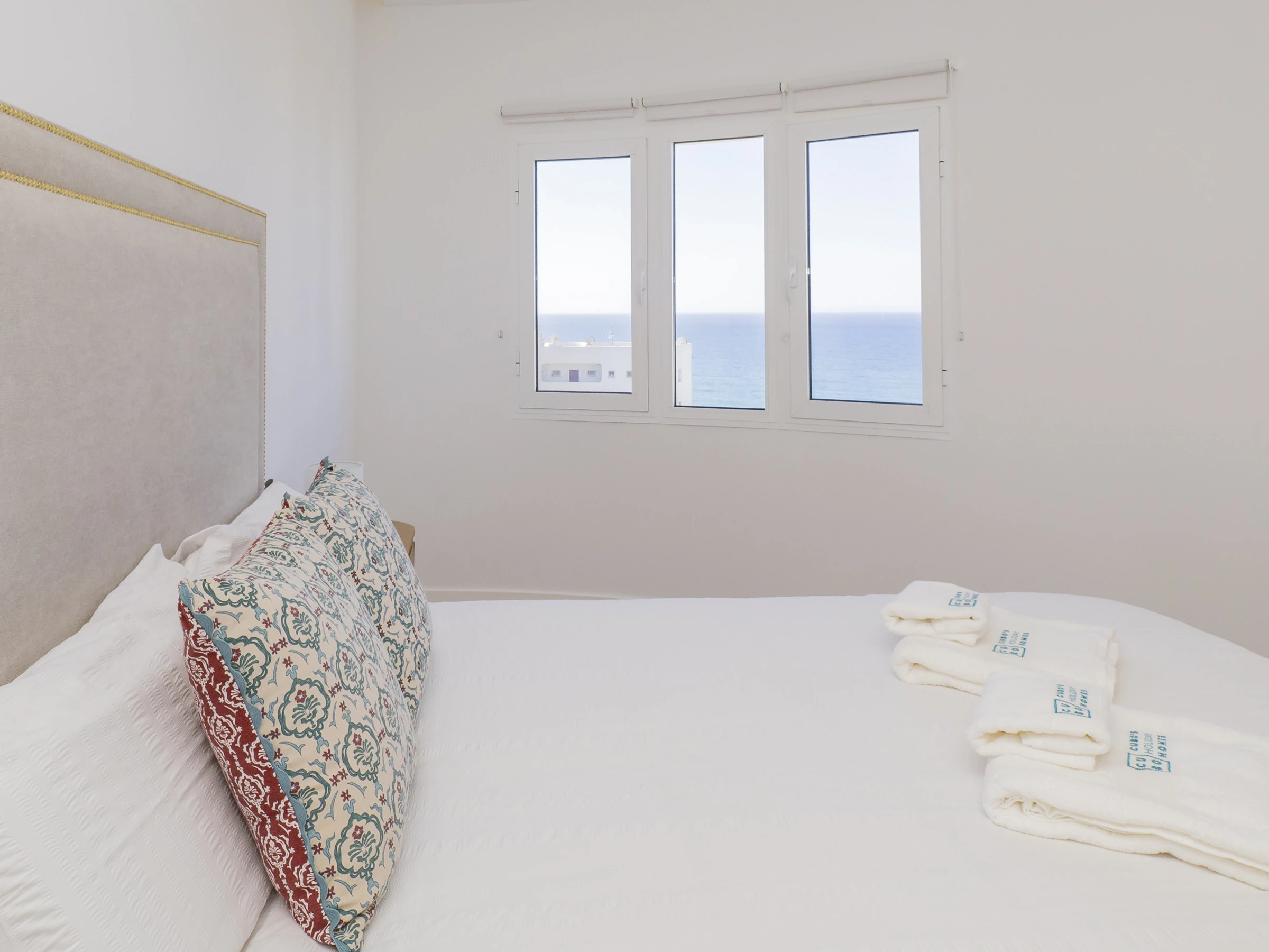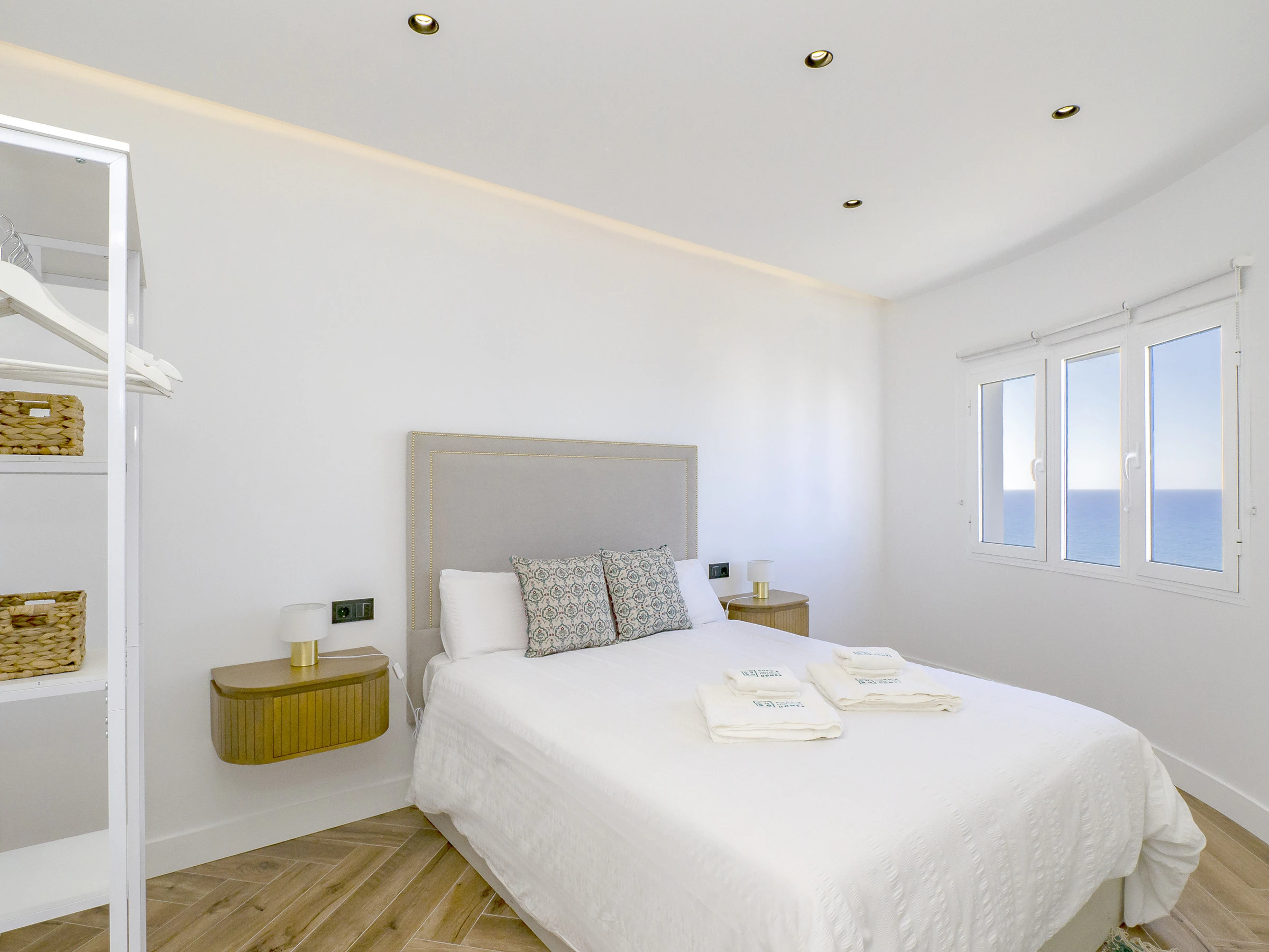 Die Unterkunft verfügt über zwei Schlafzimmer, eines mit Doppelbett und Meerblick und ein anderes ebenfalls mit Doppelbett, beide mit bequemem Stauraum für Gepäck. Der lichte und moderne Wohn-Essbereich verbindet sich mit der Terrasse, sodass Sie frühstücken oder zu Mittag essen und die Landschaft genießen können. Die offene Küche ist mit allem Notwendigen ausgestattet: Glaskeramikkochfeld, Kühlschrank, Mikrowelle, Backofen, Geschirrspüler, Kaffeemaschine, Toaster, Wasserkocher und Entsafter. Das Badezimmer verfügt über eine Duschablage.