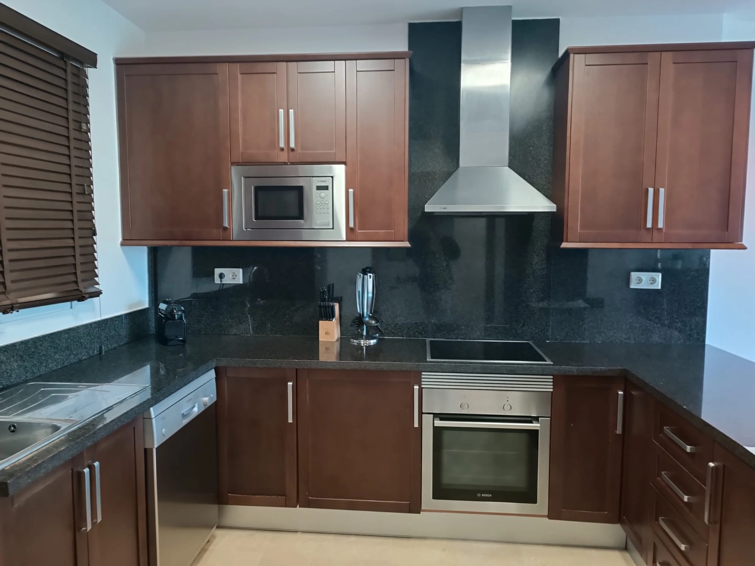 Dieses separate küche, mit ceranfeld, ist ausgestattet in kühlschrank, mikrowelle, backofen, gefrierschrank, spülmaschine, geschirr/besteck, kochutensilien, kaffeemaschine, toaster, wasserkocher und saftpresse.
