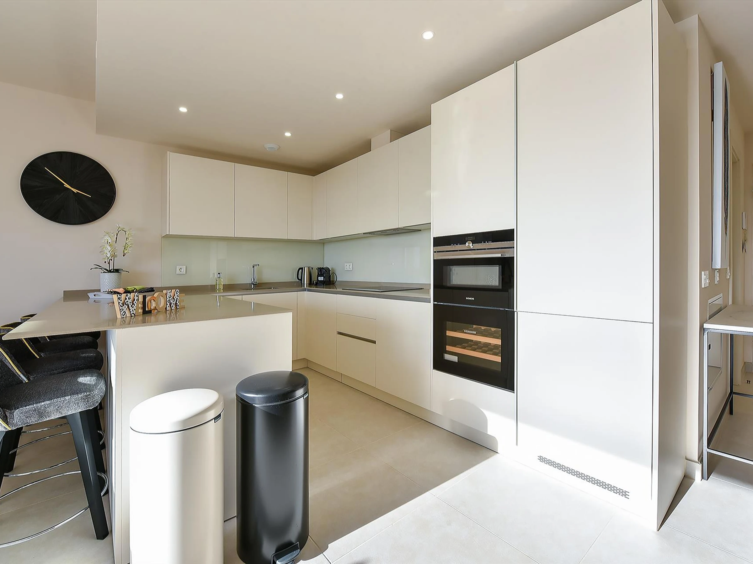* offene Küche mit Induktionskochfeld, Ofen, Geschirrspüler,