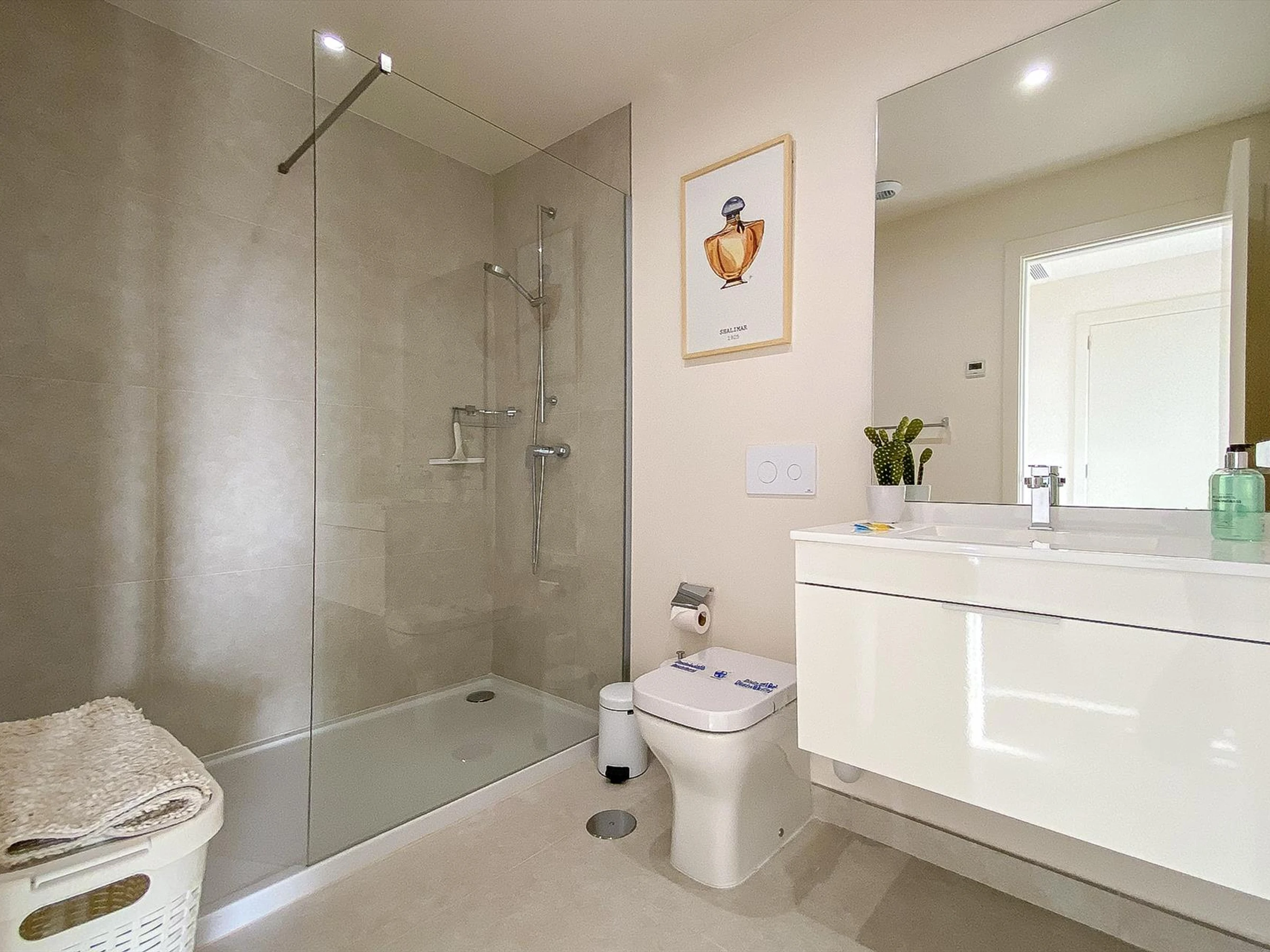* Das zweite Badezimmer hat ein Waschbecken, eine begehbare Dusche und eine
