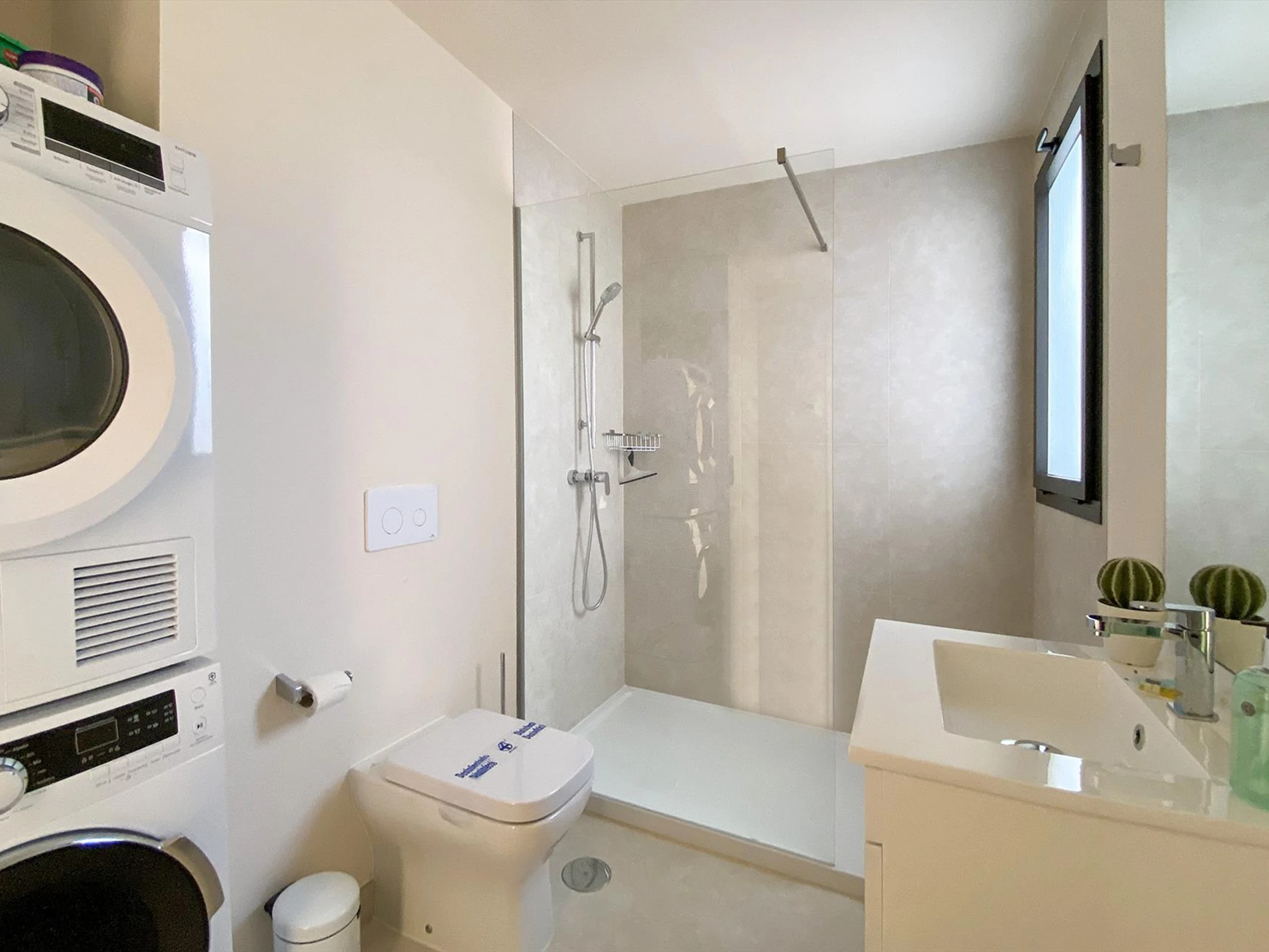 und eine Toilette. Das dritte Badezimmer beherbergt auch die Waschmaschine und