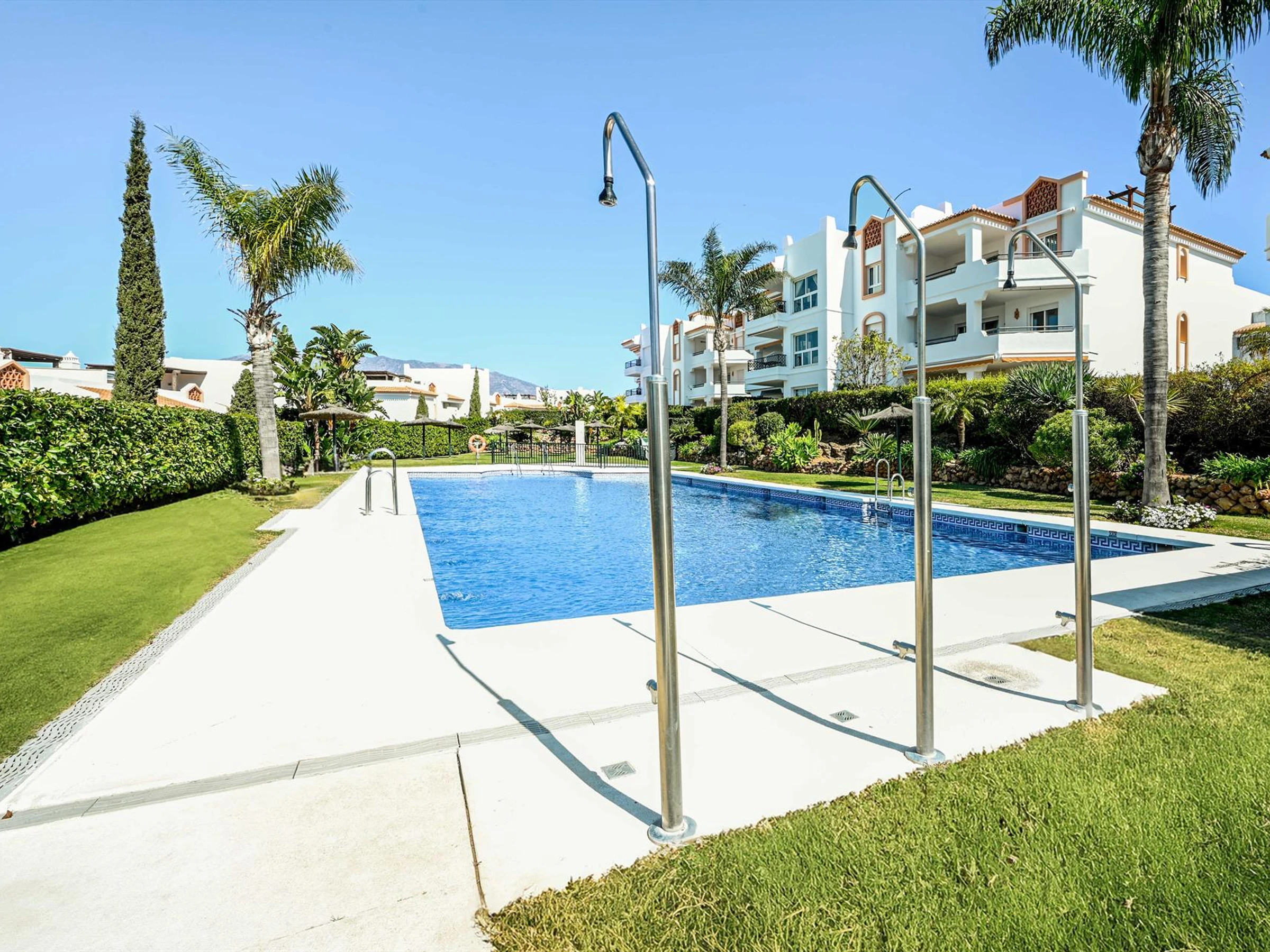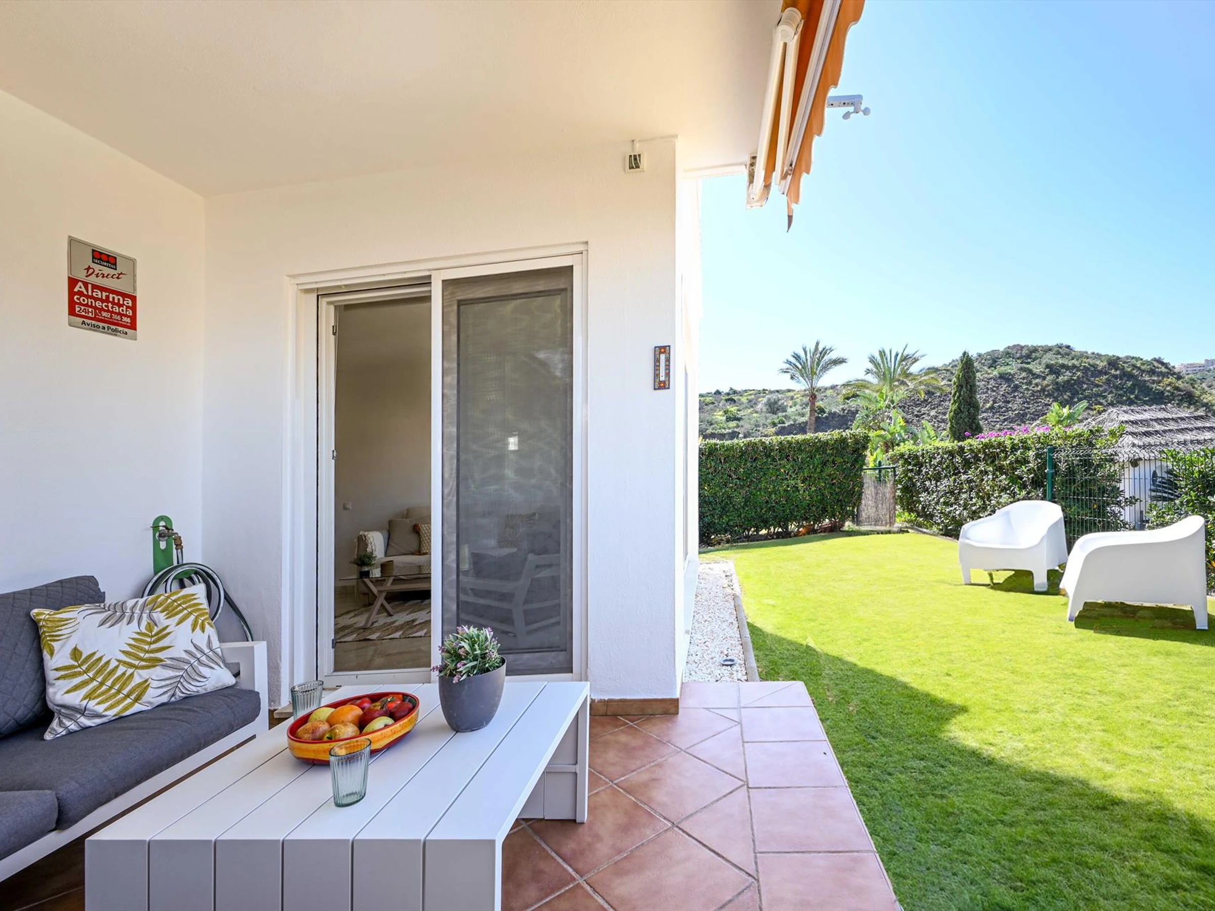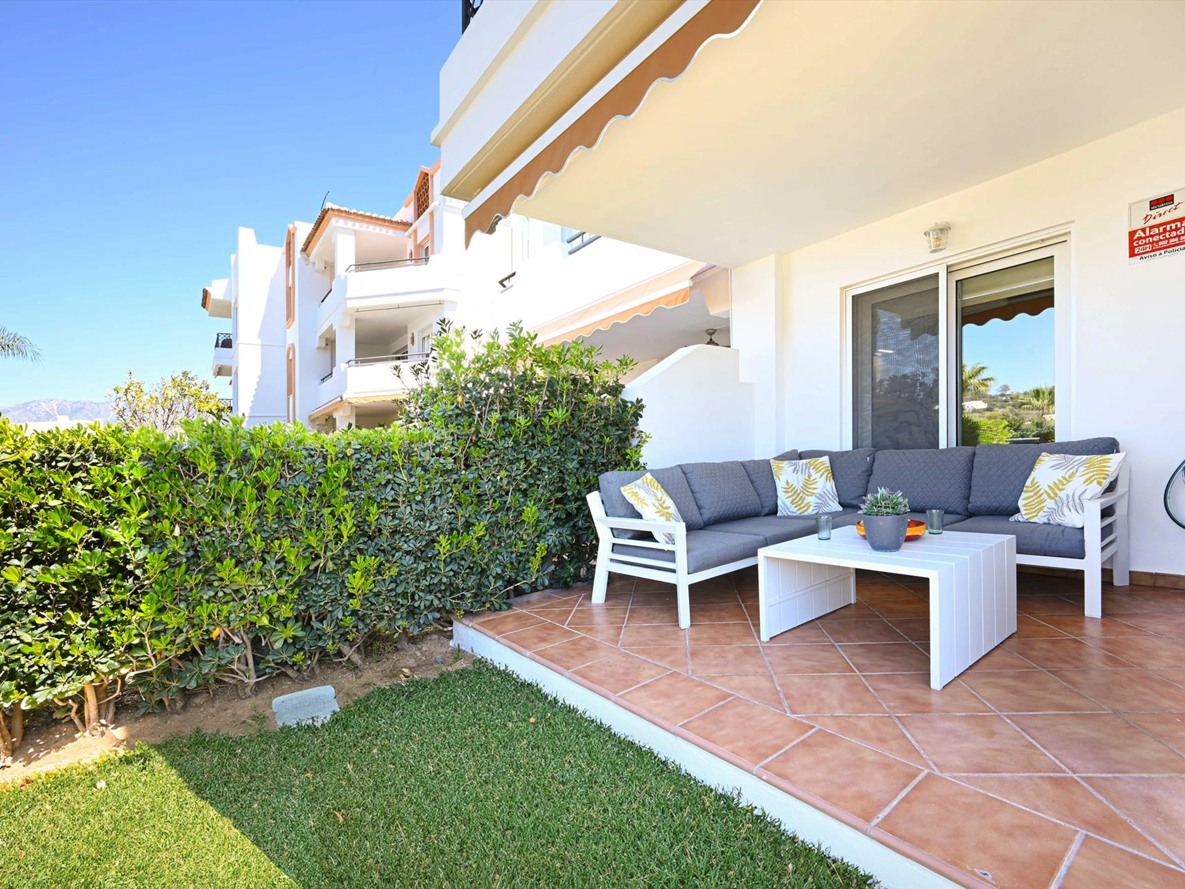Apartment mit Terrasse, Garten und Pool Apartment Los Iris ist ein komfortables Ferienapartment in Mijas Costa, direkt außerhalb von Fuengirola. Sie wohnen hier in einer ruhigen Ferienanlage im Erdgeschoss, mit einem privaten Garten und einer überdachten Terrasse in Südwestlage.