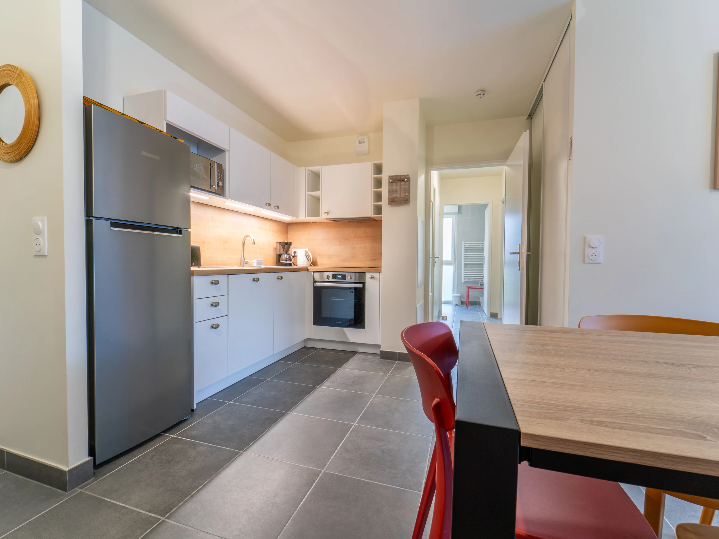 Im Inneren wird Sie das geräumige und helle Wohnzimmer mit seiner warmen Atmosphäre verführen. Sie finden einen Wohnbereich mit Sofa und Flachbildfernseher sowie eine voll ausgestattete Küche, in der Sie Ihre Mahlzeiten unter guten Bedingungen zubereiten können: Kühlschrank, Gefrierschrank, Induktionskochfeld, Backofen, Mikrowelle, Geschirrspüler, Filterkaffeemaschine und Kapseln, Wasserkocher, Toaster usw.