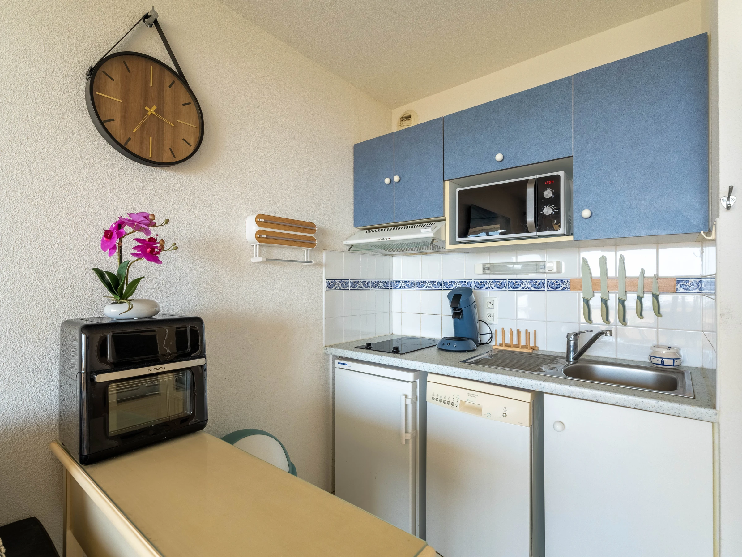 Dieses geräumige und helle Apartment bietet Platz für bis zu 6 Personen. Das lichtdurchflutete Wohnzimmer verfügt über ein Schlafsofa mit 2 zusätzlichen Schlafplätzen, einen Flachbildfernseher und einen komplett ausgestatteten Küchenbereich mit Elektroherd, Tischkühlschrank, Mini-Backofen, Mikrowelle, Geschirrspüler, Senseo-Kaffeemaschine, Wasserkocher und Toaster.