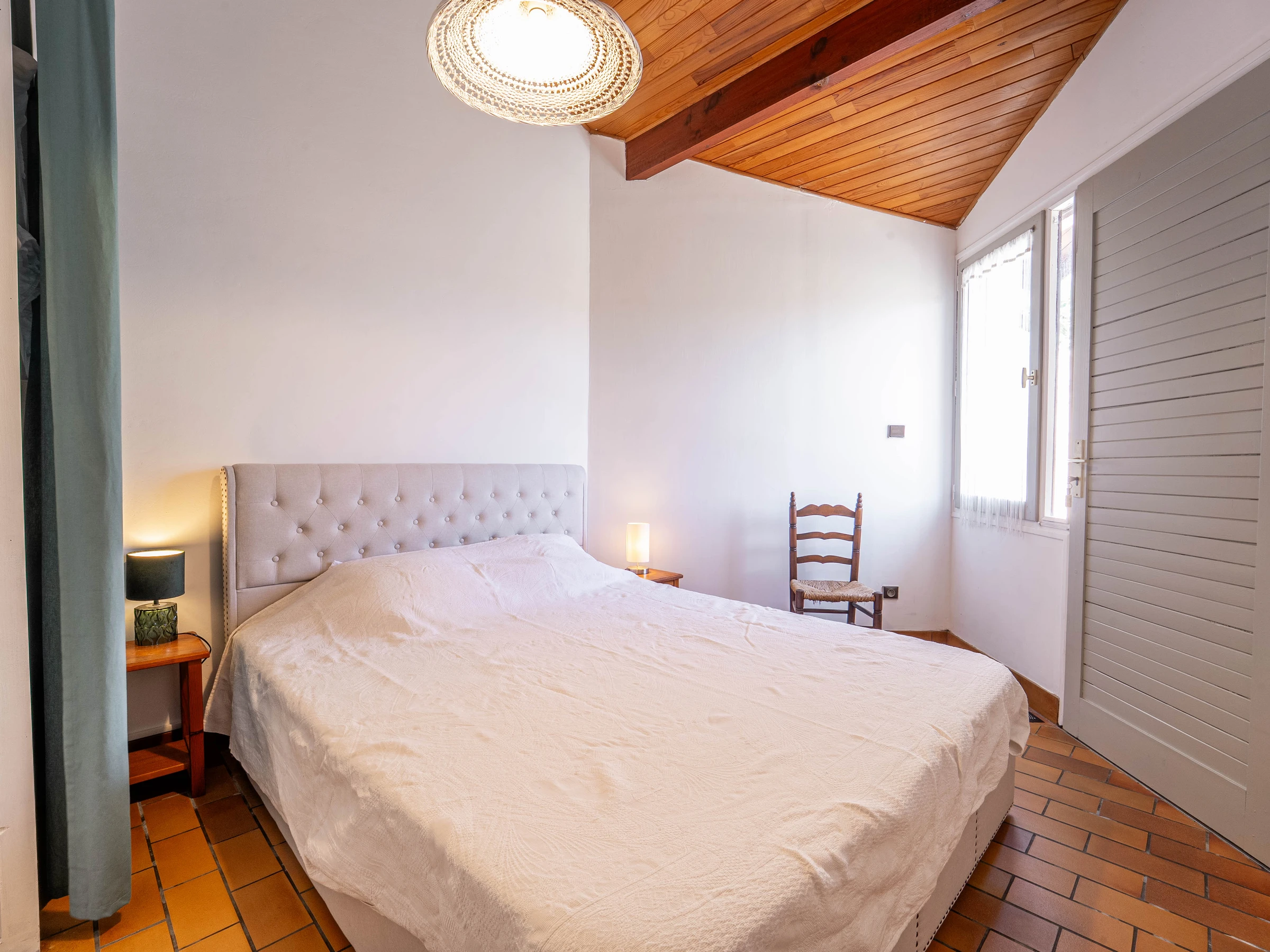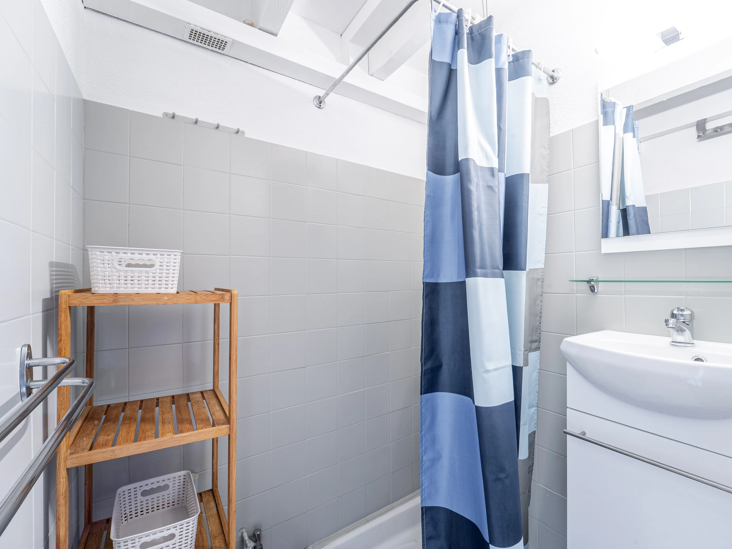 Im Erdgeschoss finden Sie außerdem ein Badezimmer mit Haartrockner, ein separates WC und ein Schlafzimmer mit einem 160 cm breiten Doppelbett und Zugang zu einer kleinen Terrasse im hinteren Teil des Apartments.