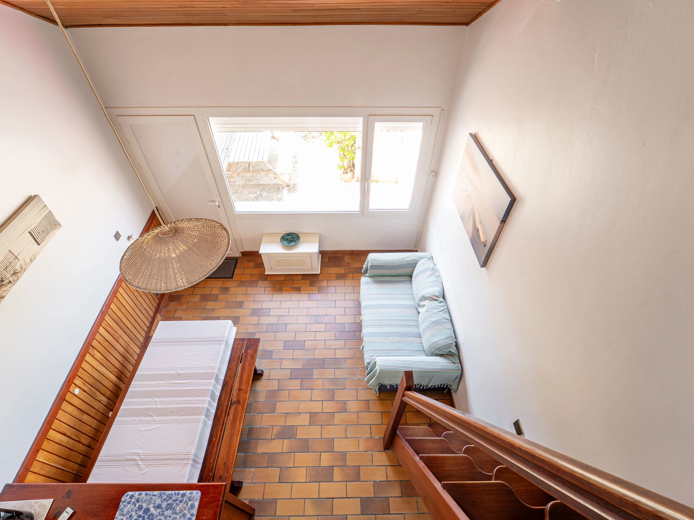 Im Obergeschoss befindet sich ein Zwischengeschoss mit einem 140 cm breiten Doppelbett.