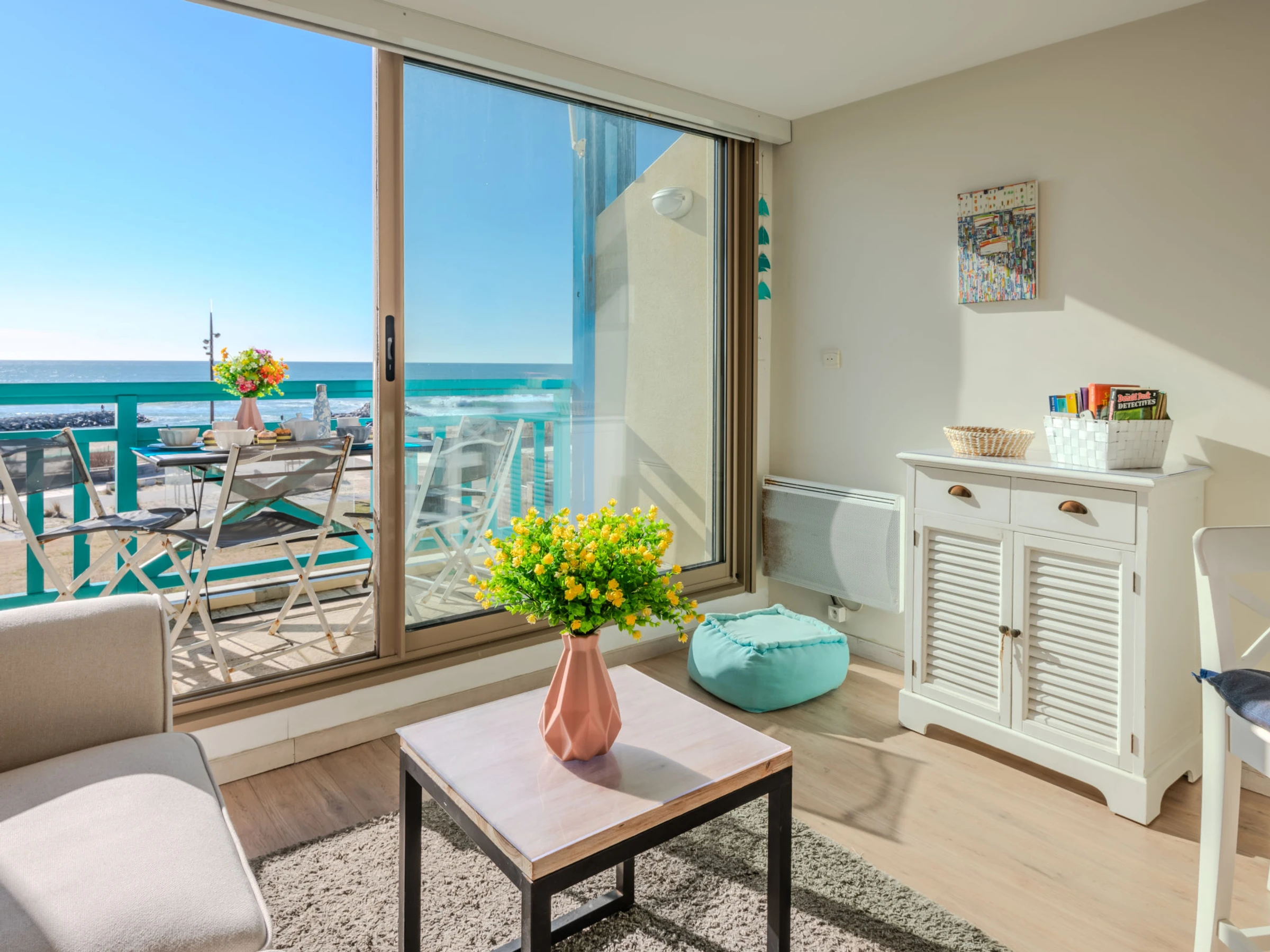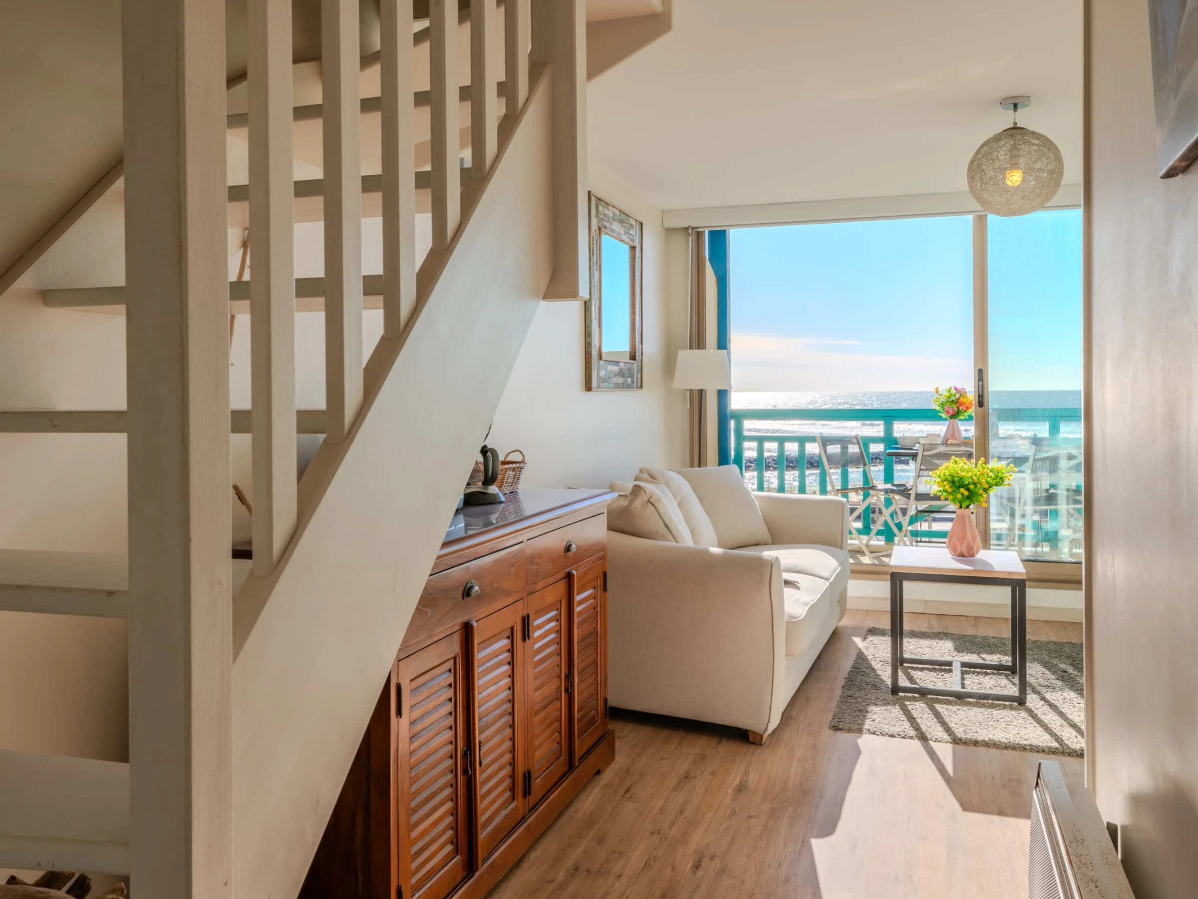 4-Zimmer-Wohnung 60 m2 auf 2 Stockwerken im 3. Stock. Schön und modern eingerichtet: Wohn-/Esszimmer. Ausgang zum Balkon. Salon mit TV und Internationale TV-Sender (Flachbildschirm). Offene Küche (Geschirrspüler, 3 Glaskeramikplatten, elektrische Kaffeemaschine, Kombinationsmikrowelle). Dusche/WC. Obergeschoss: 1 Zimmer mit 1 franz. Bett (1 x 160 cm, Länge 200 cm). 1 Zimmer mit 2 Betten (90 cm). Bad, sep. WC. E-Heizung. Balkon, Südwestlage. Balkonmöbel. Sehr schöne Sicht auf das Meer. Zur Verfügung: Waschmaschine, Wäschetrockner, Bügeleisen. Internet (WLAN, gratis). Parkplatz Nr. 1 (überdacht). Bitte beachten: Nichtraucher-Unterkunft. Maximal 1 kleines Haustier/Hund erlaubt. Rauchmelder.