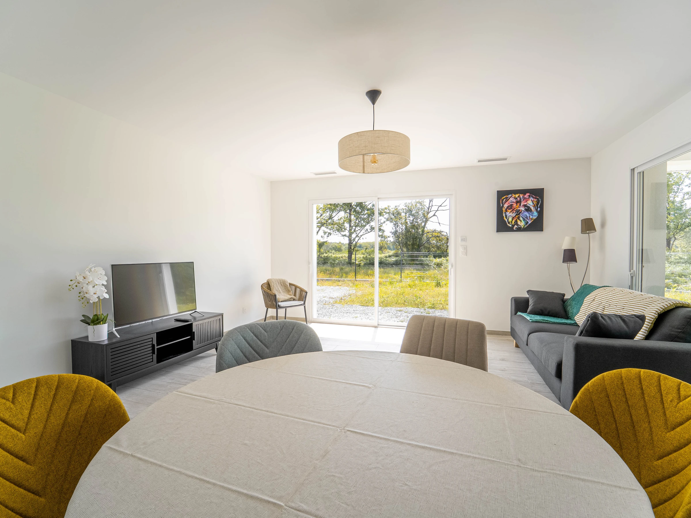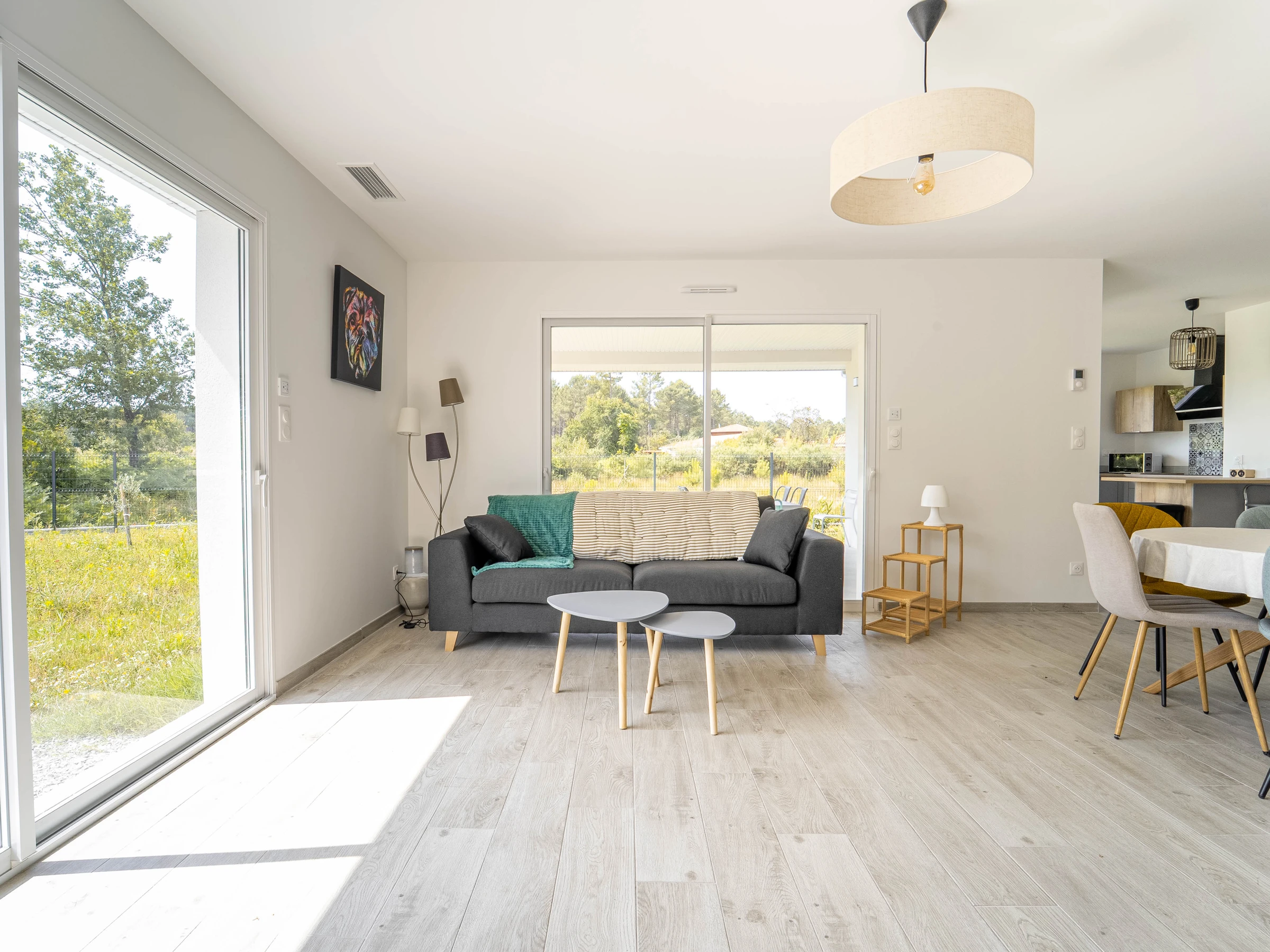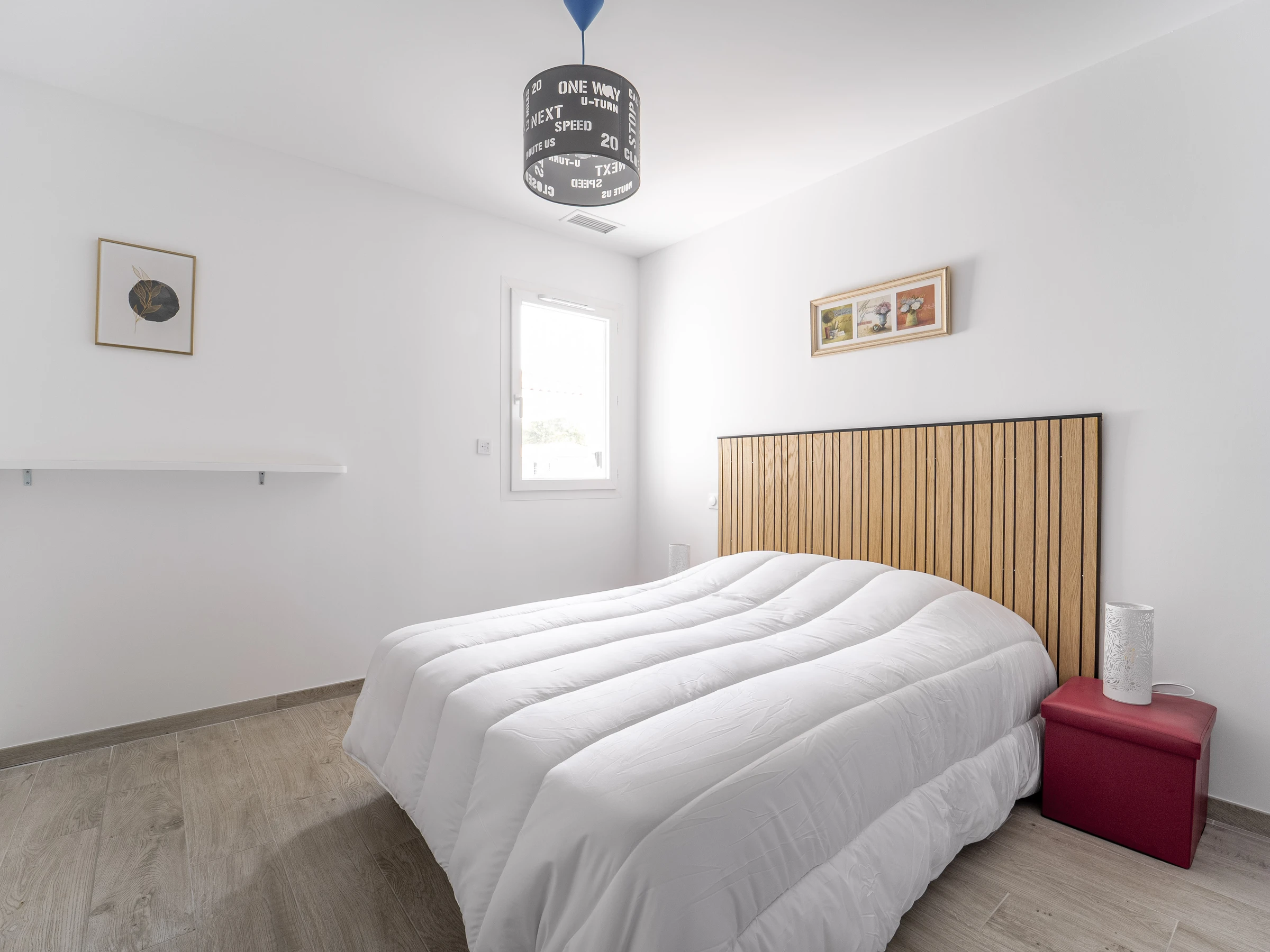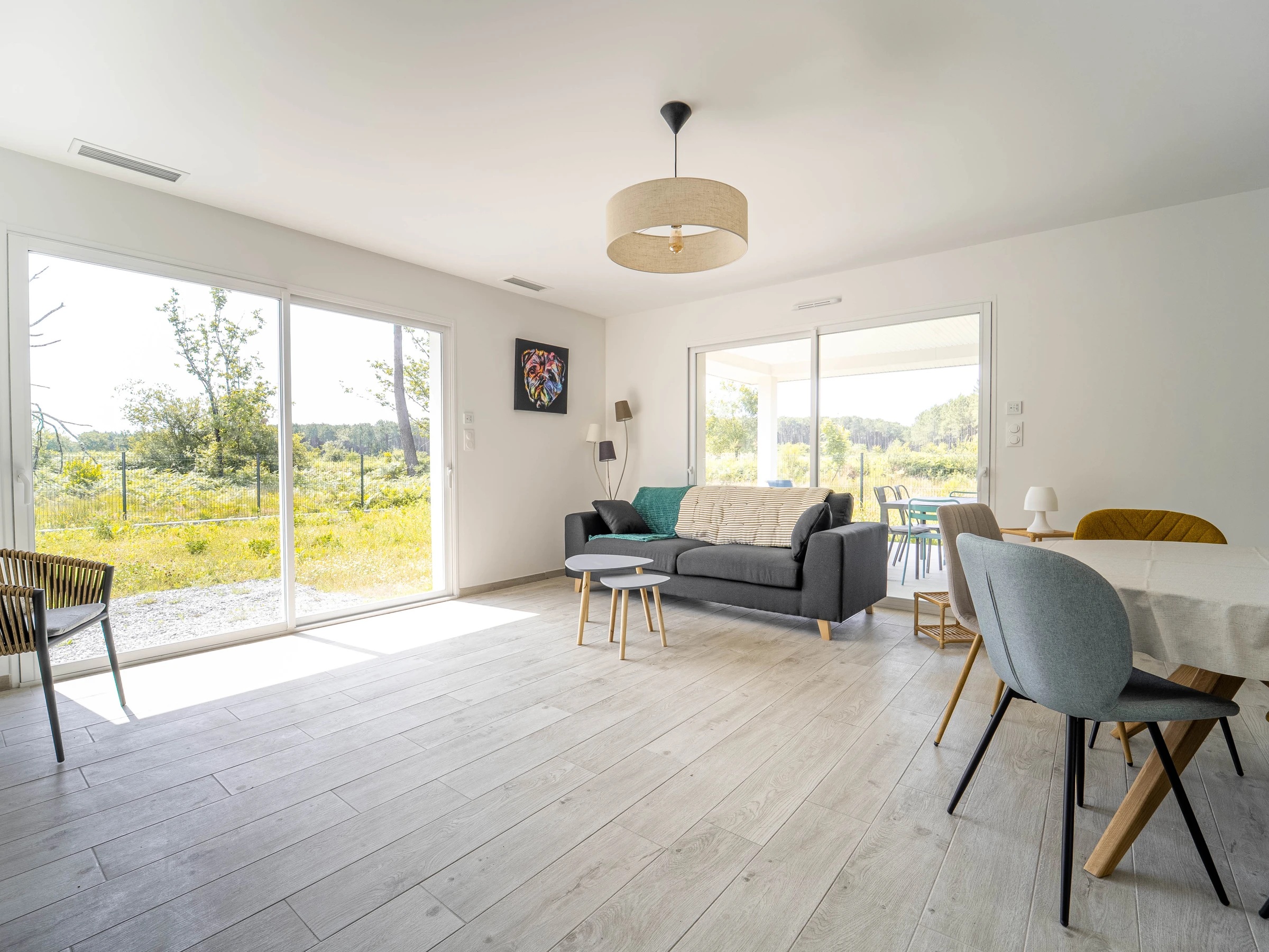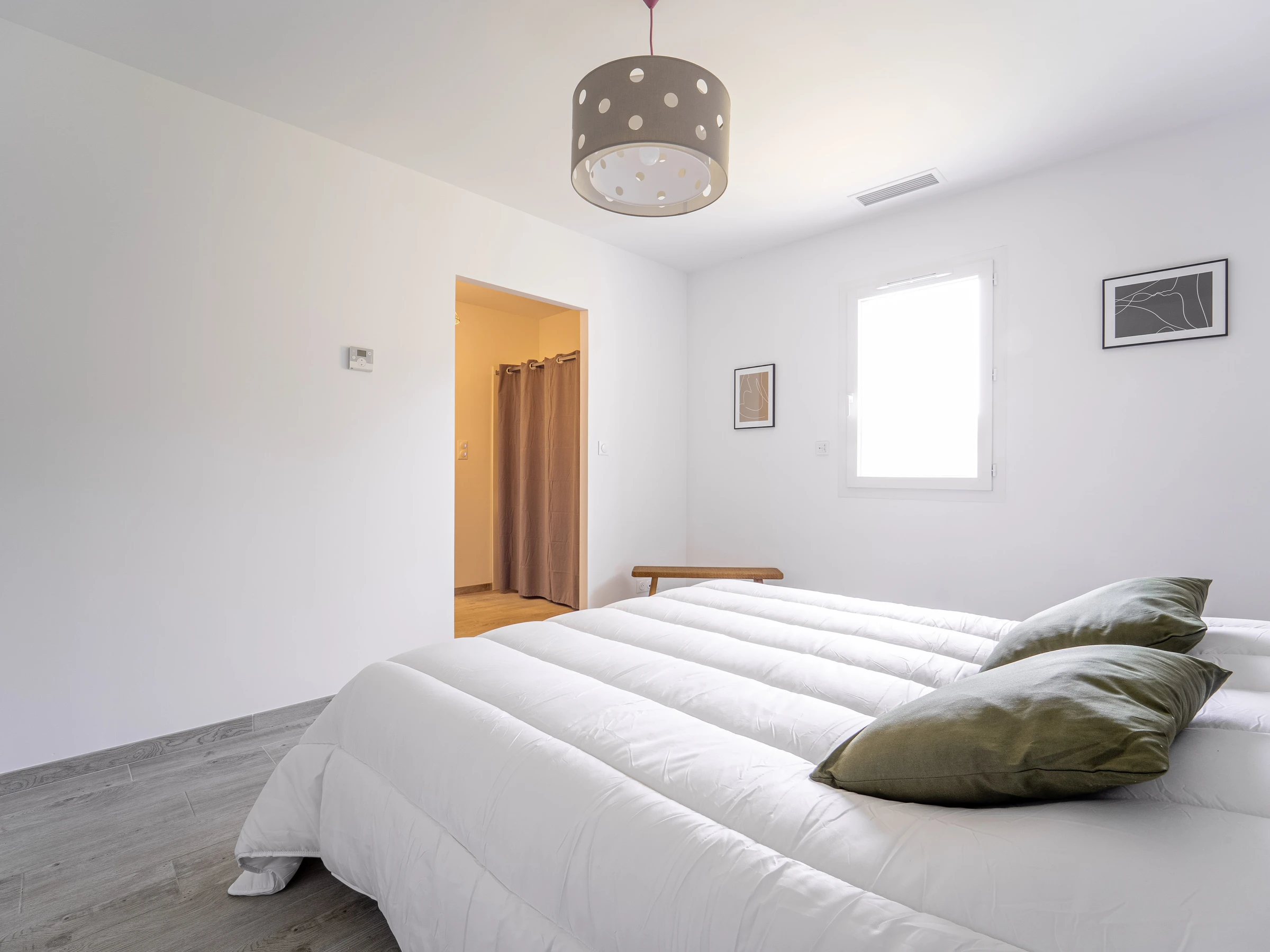 Dieses moderne, einstöckige Haus liegt in einem neuen und ruhigen Wohngebiet von Mimizan und ist ideal für einen erholsamen Urlaub mit Familie oder Freunden. Es verfügt über drei komfortable Schlafzimmer: zwei davon sind mit 140 cm breiten Betten ausgestattet, während das Hauptschlafzimmer über ein 160 cm breites Bett, ein Ankleidezimmer und ein eigenes Bad verfügt. Ein weiteres Badezimmer und zwei separate Toiletten vervollständigen den Schlafbereich.