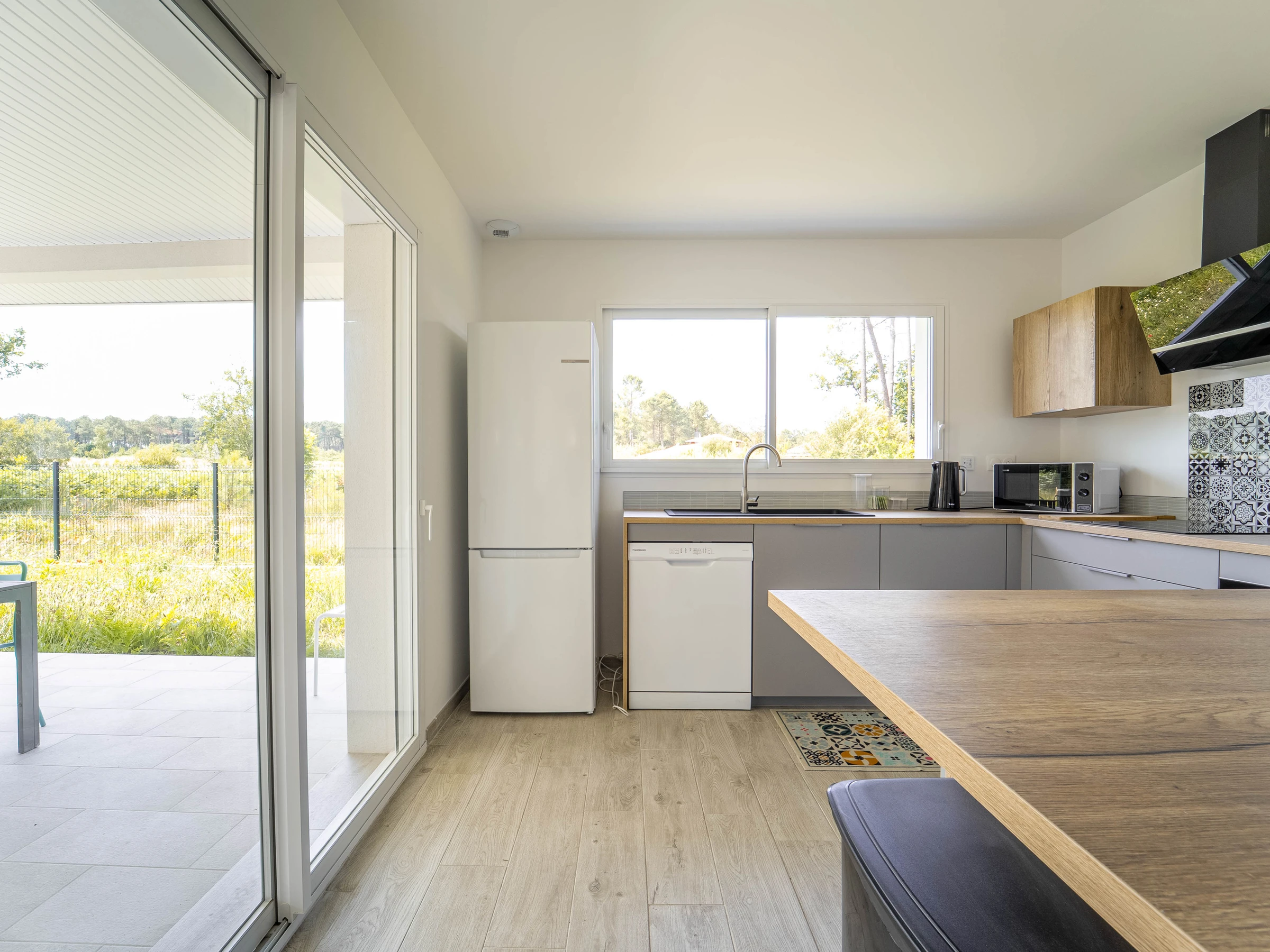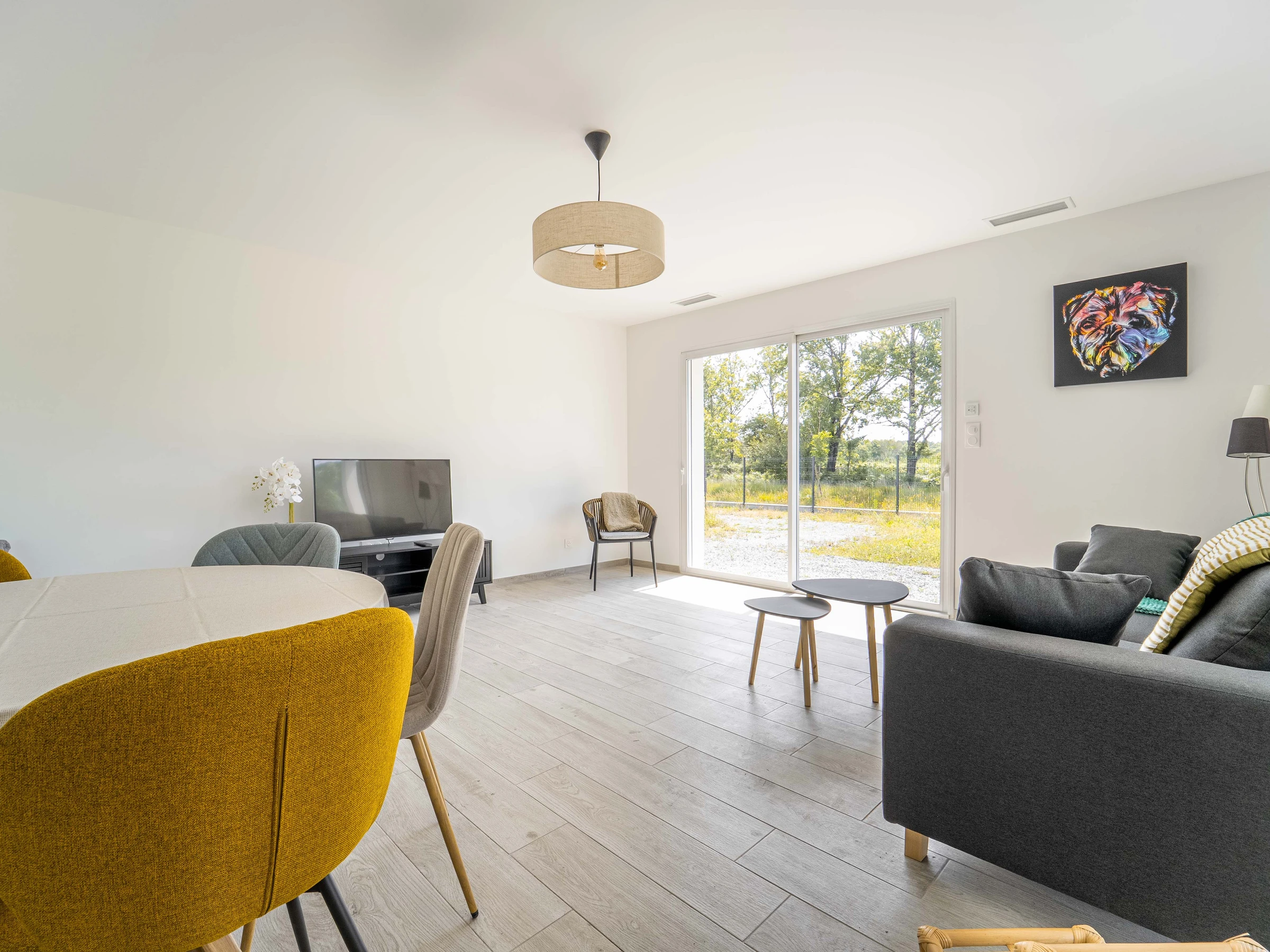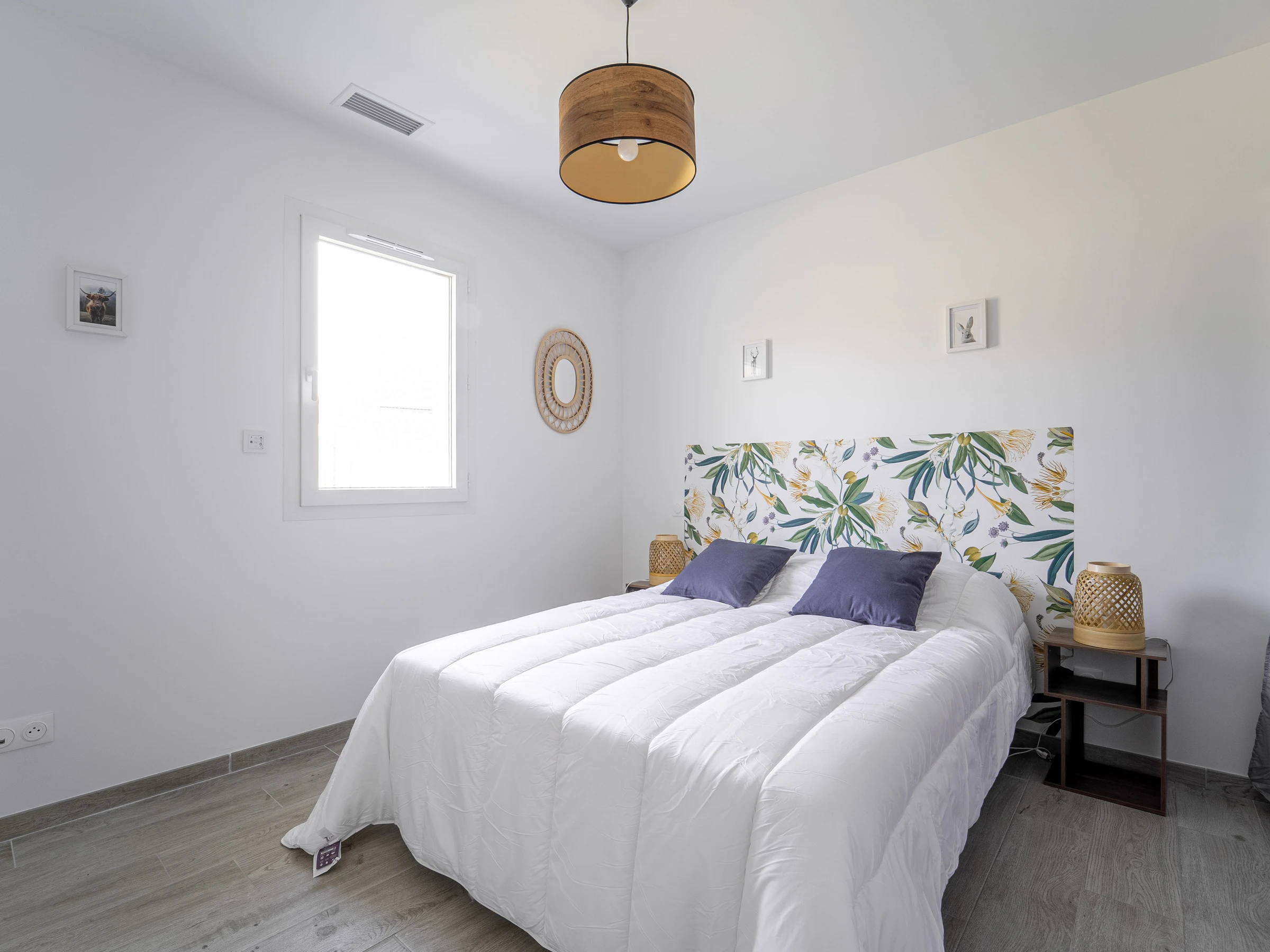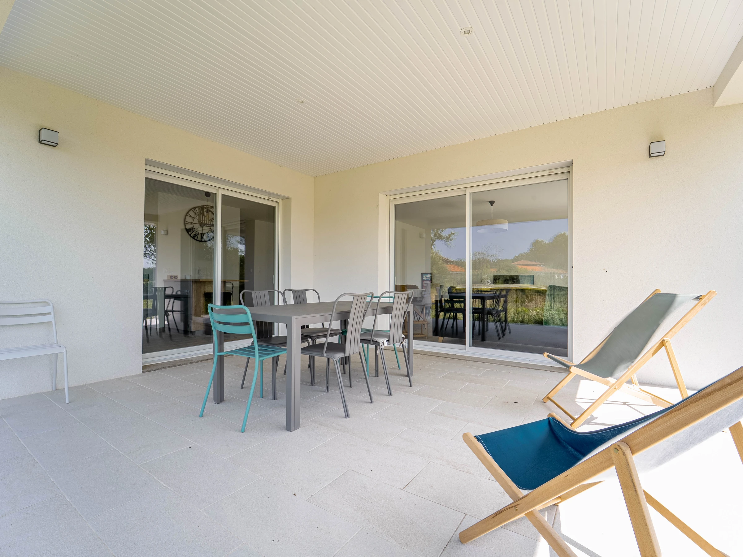 Dieses moderne, einstöckige Haus liegt in einem neuen und ruhigen Wohngebiet von Mimizan und ist ideal für einen erholsamen Urlaub mit Familie oder Freunden. Es verfügt über drei komfortable Schlafzimmer: zwei davon sind mit 140 cm breiten Betten ausgestattet, während das Hauptschlafzimmer über ein 160 cm breites Bett, ein Ankleidezimmer und ein eigenes Bad verfügt. Ein weiteres Badezimmer und zwei separate Toiletten vervollständigen den Schlafbereich.