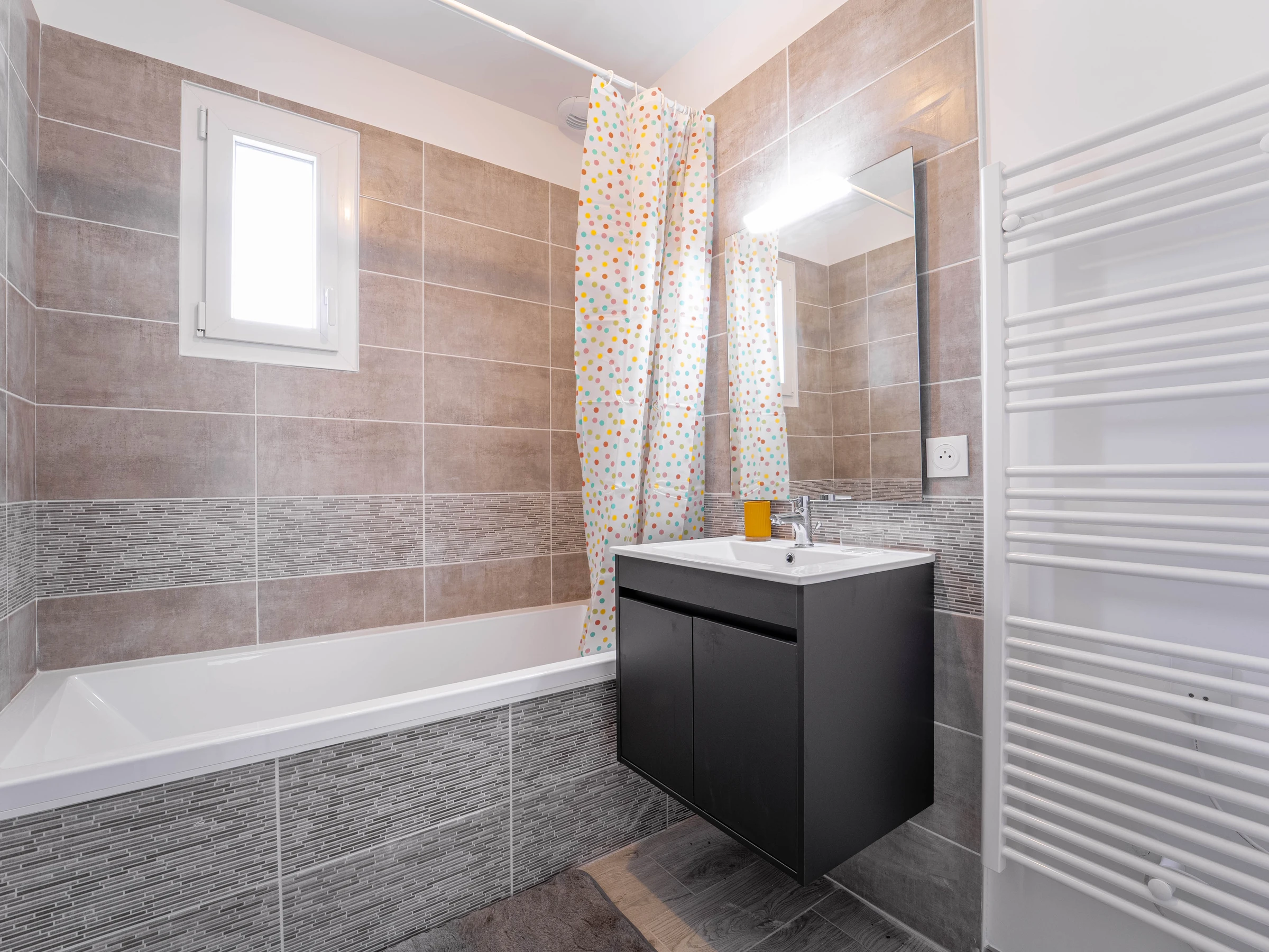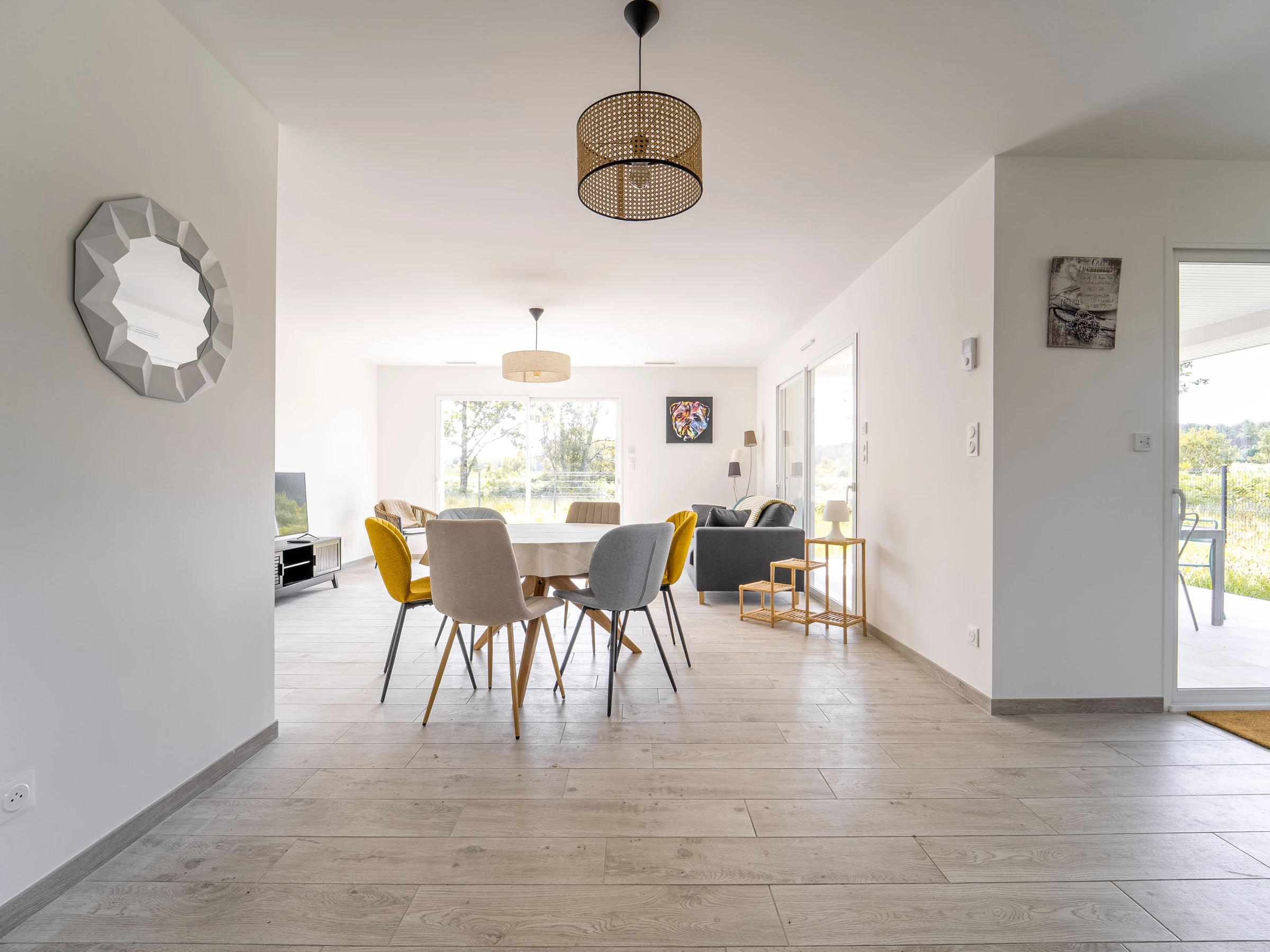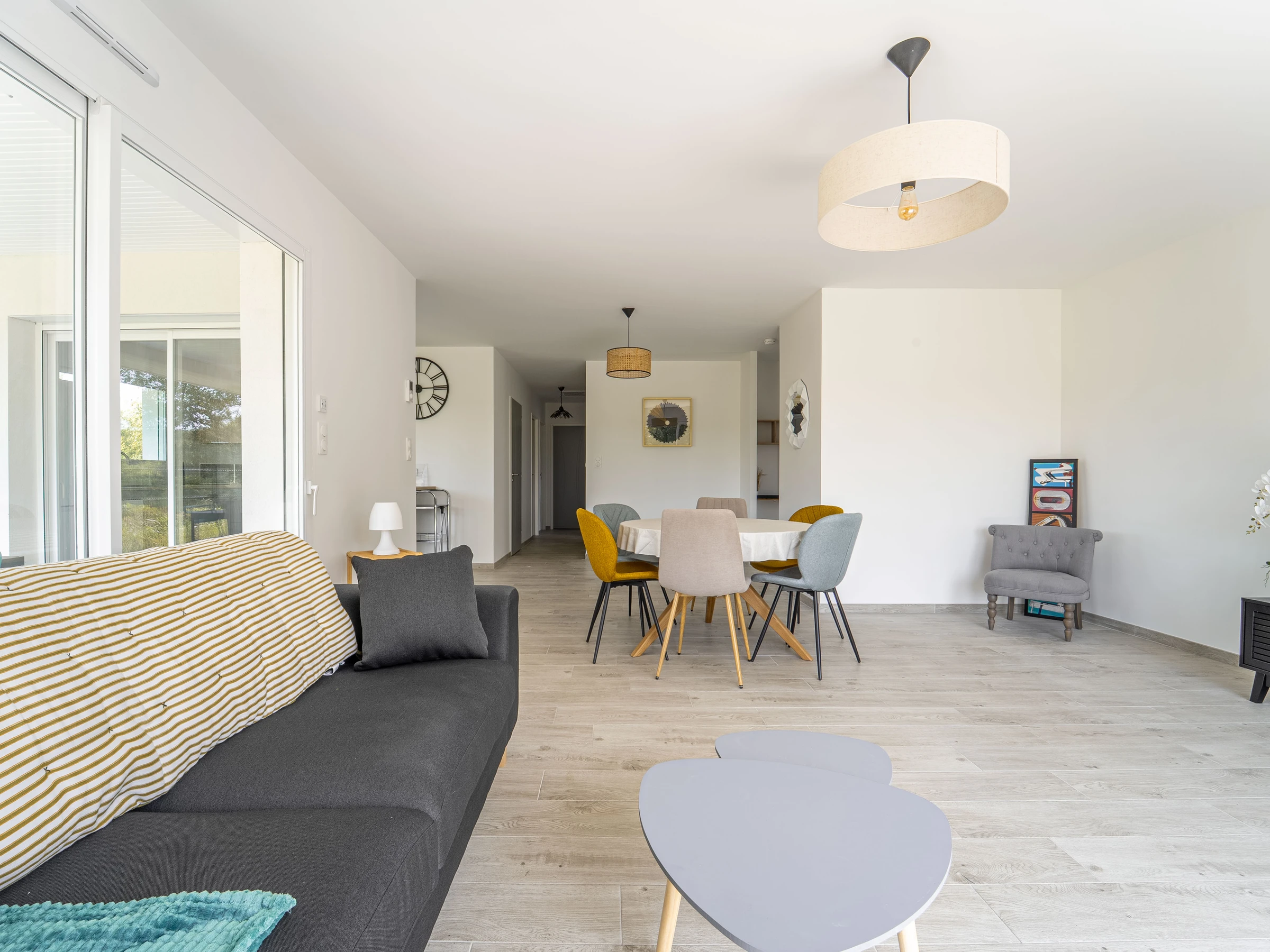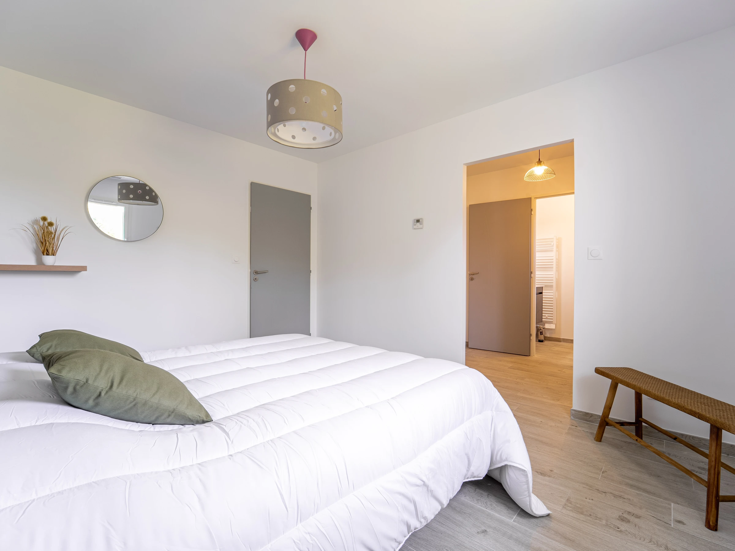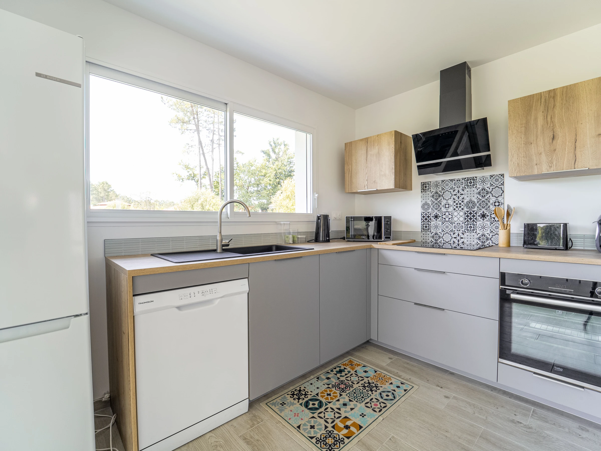 Dieses moderne, einstöckige Haus liegt in einem neuen und ruhigen Wohngebiet von Mimizan und ist ideal für einen erholsamen Urlaub mit Familie oder Freunden. Es verfügt über drei komfortable Schlafzimmer: zwei davon sind mit 140 cm breiten Betten ausgestattet, während das Hauptschlafzimmer über ein 160 cm breites Bett, ein Ankleidezimmer und ein eigenes Bad verfügt. Ein weiteres Badezimmer und zwei separate Toiletten vervollständigen den Schlafbereich.