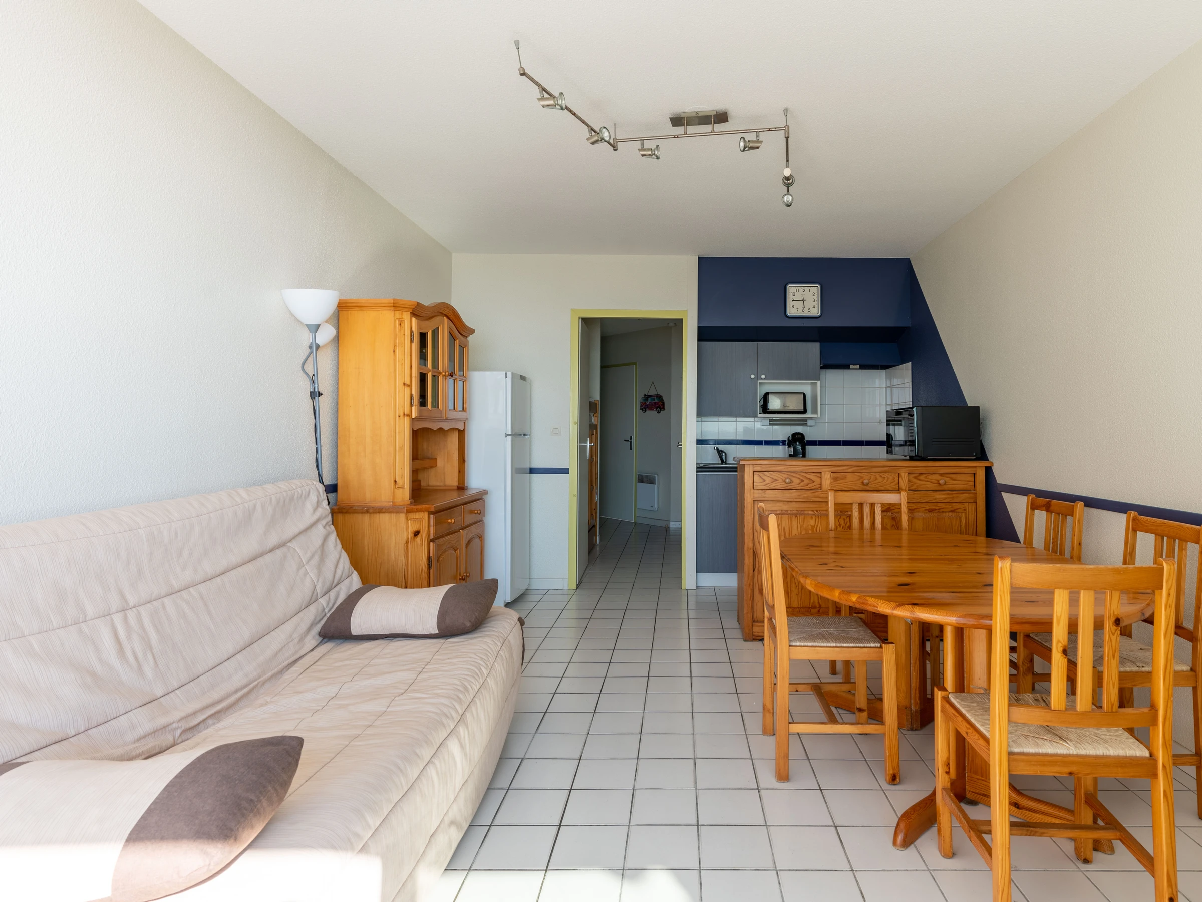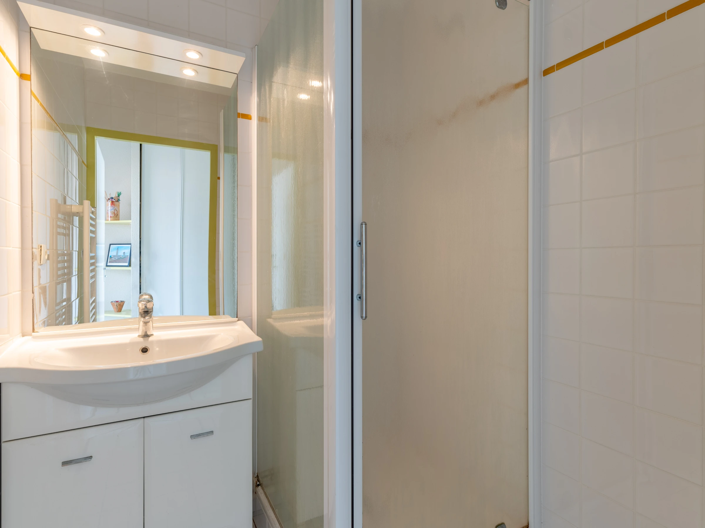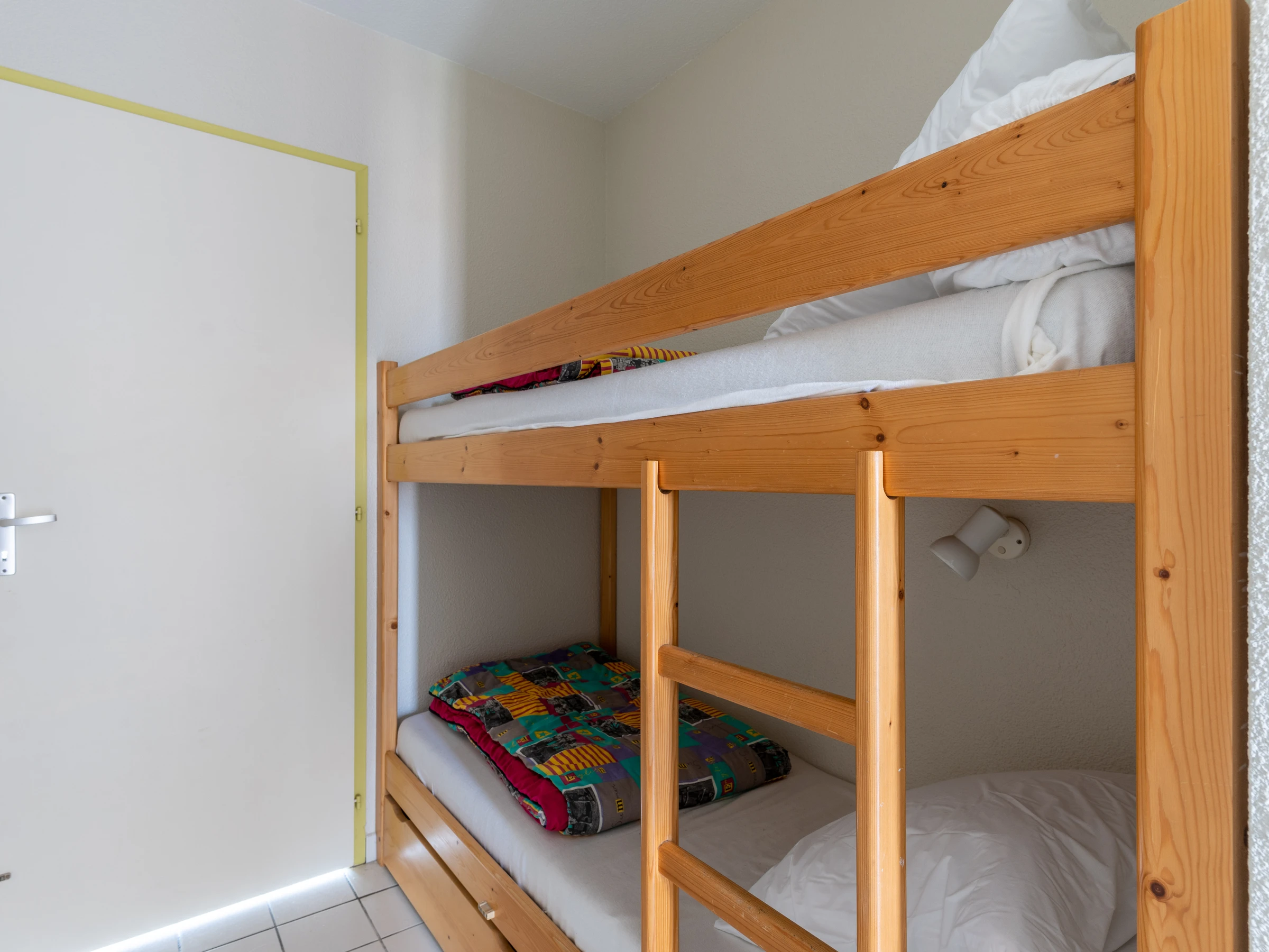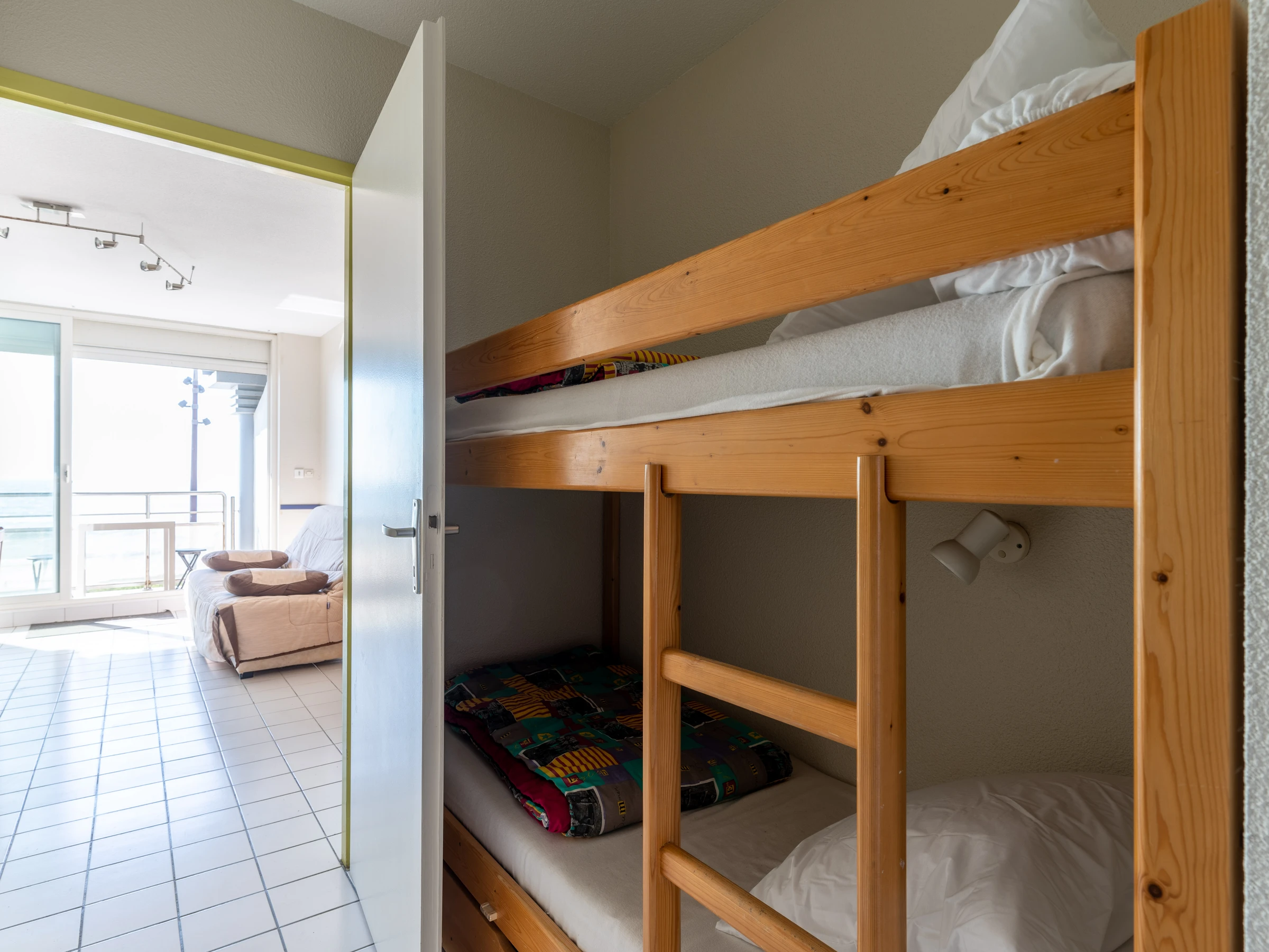 Das 40 m² große Apartment im dritten Stock bietet Platz für bis zu 6 Personen und ist perfekt für einen Urlaub mit Familie oder Freunden. Es verfügt über einen Eingangsbereich mit einem Etagenbett (90 cm), ein separates Schlafzimmer mit einem Doppelbett (140 cm), ein Duschbad und ein separates WC.