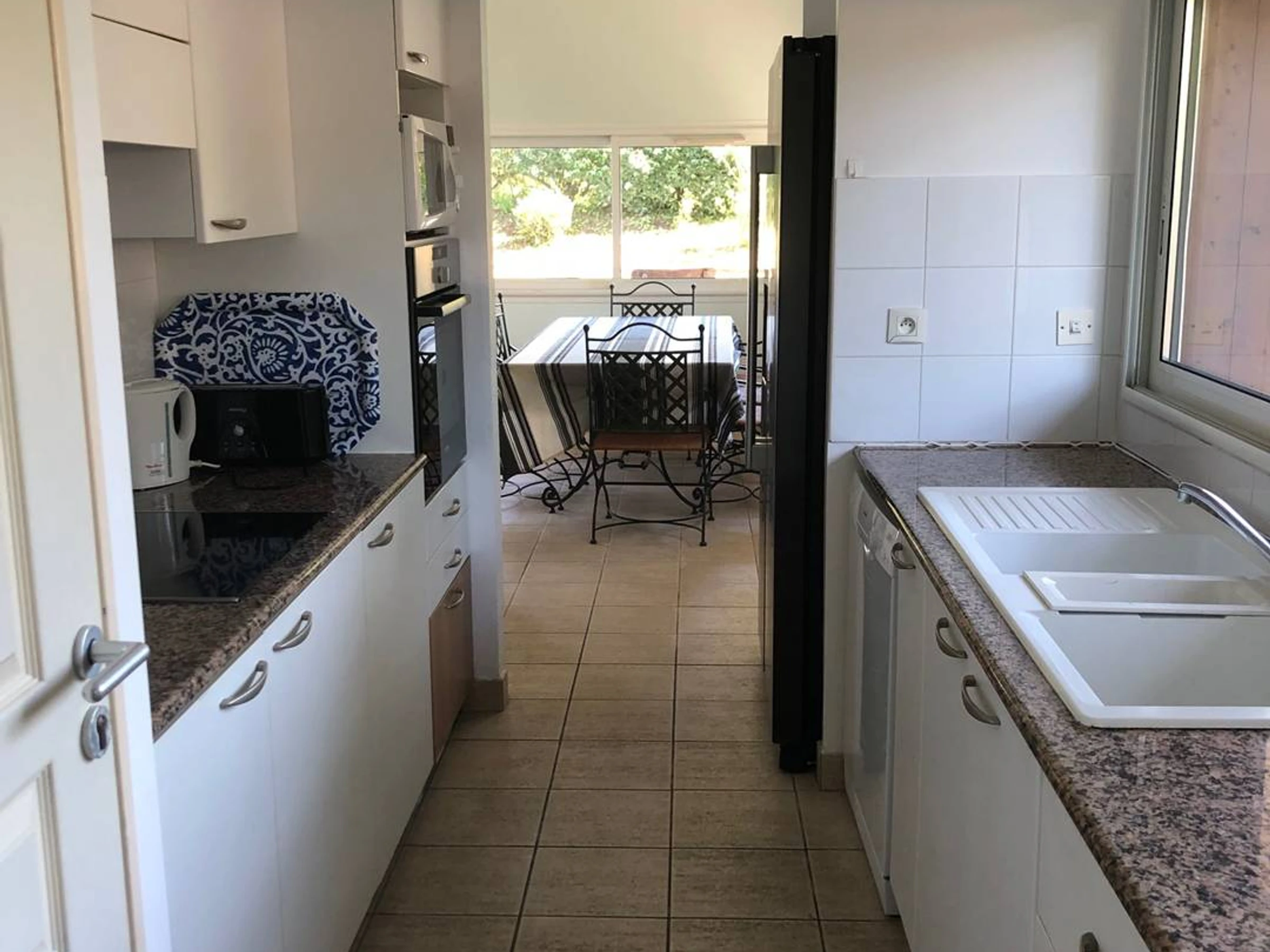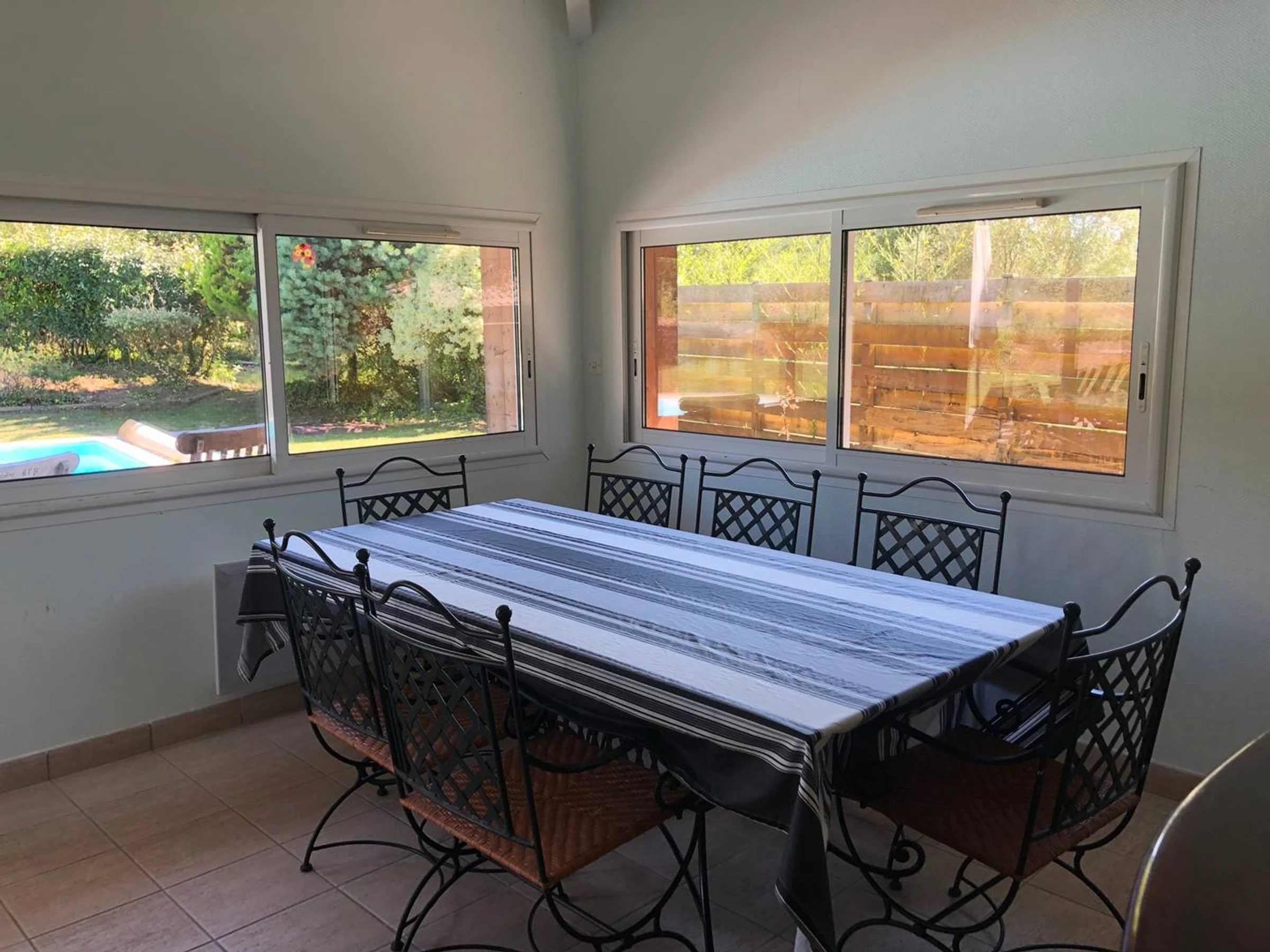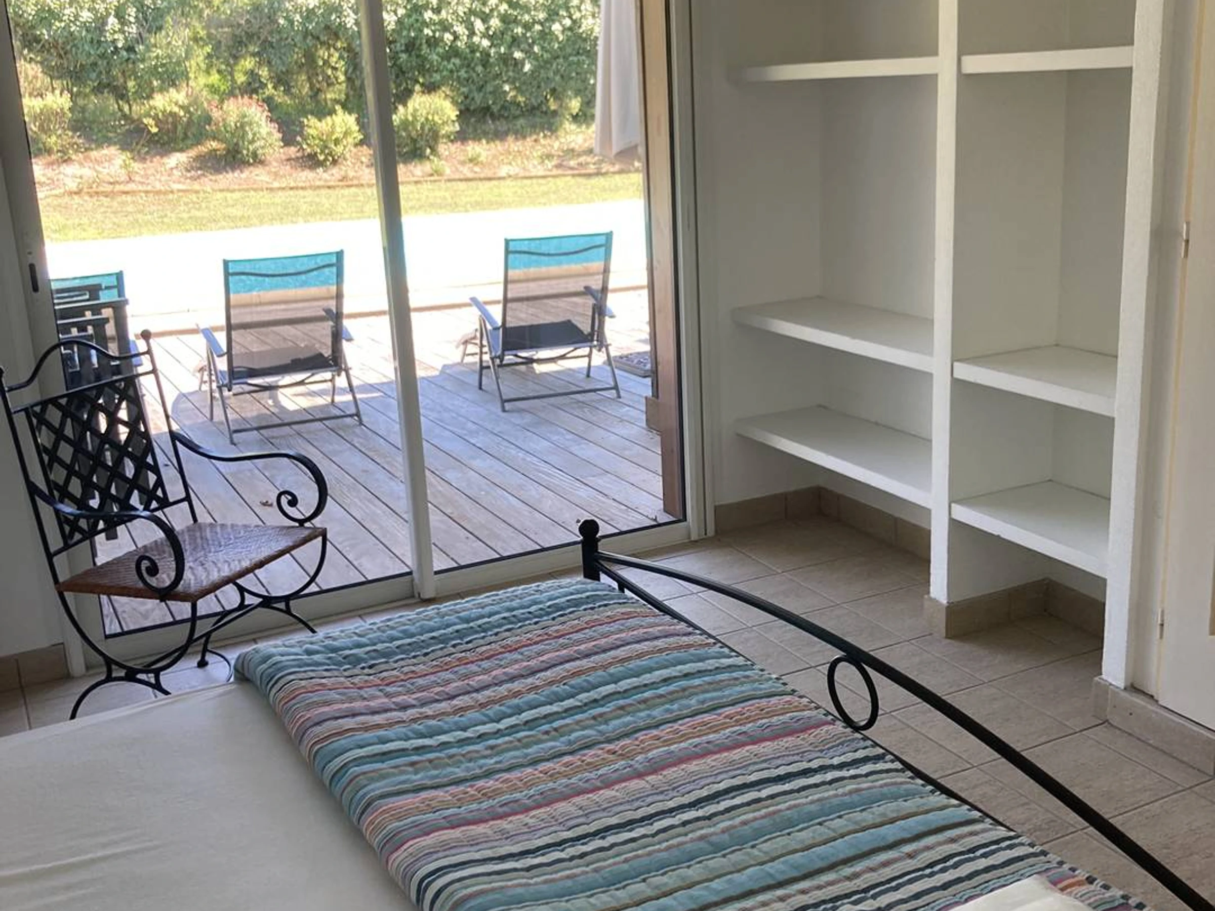 - Schlafzimmer 1: 1 Queensize-Bett (160 cm), Kleiderschränke, Badezimmer, Flügeltüren zum Pool