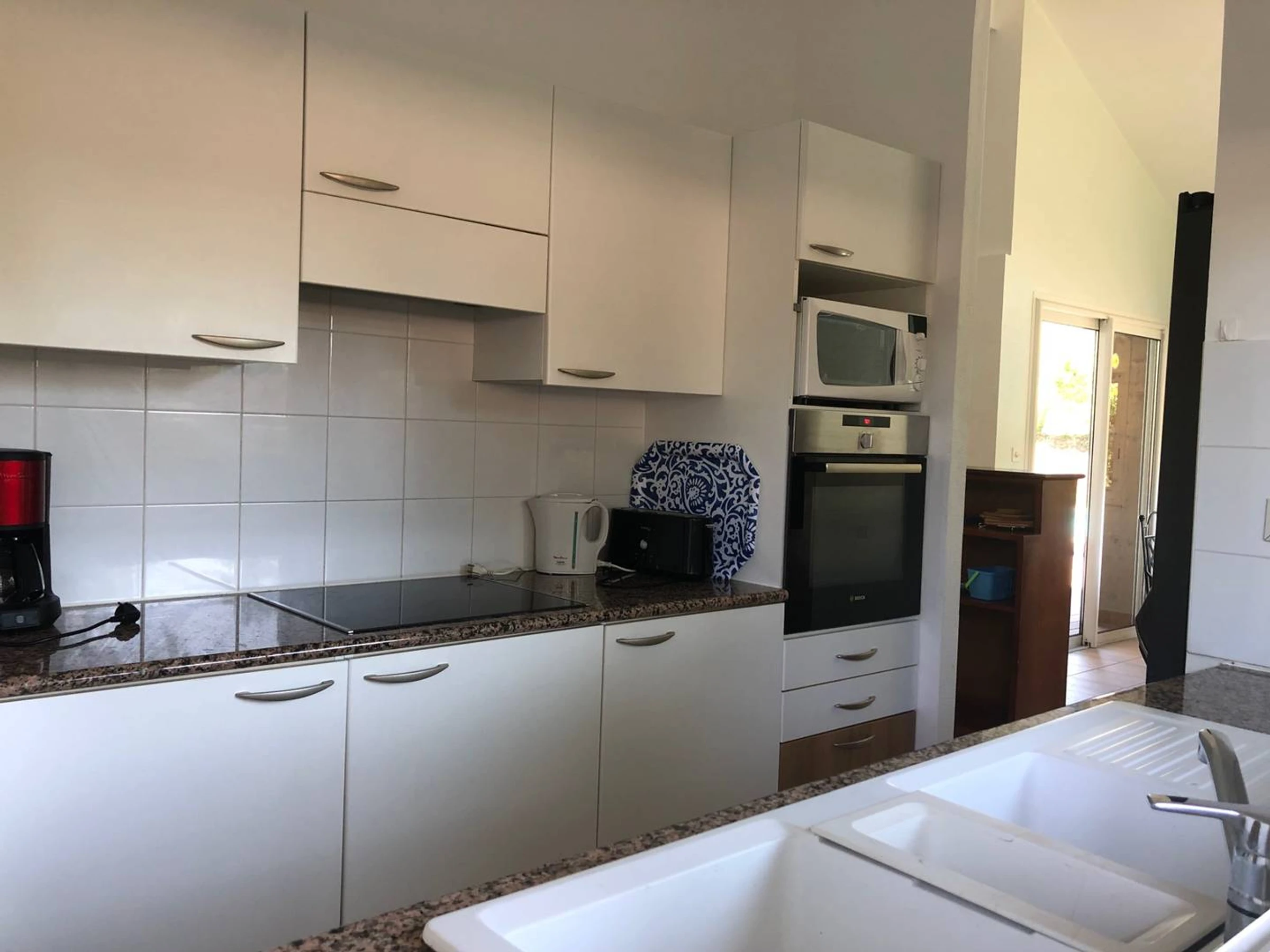 - Wohnzimmer: Flügeltüren zur Poolterrasse, voll ausgestattete Küche